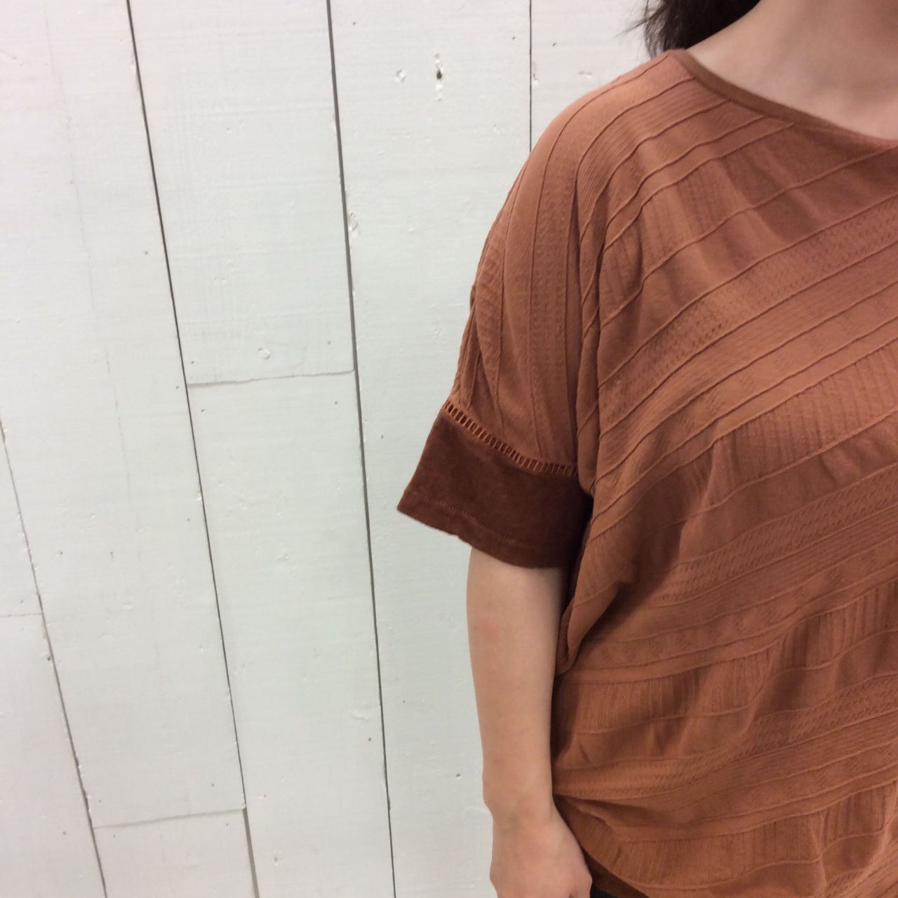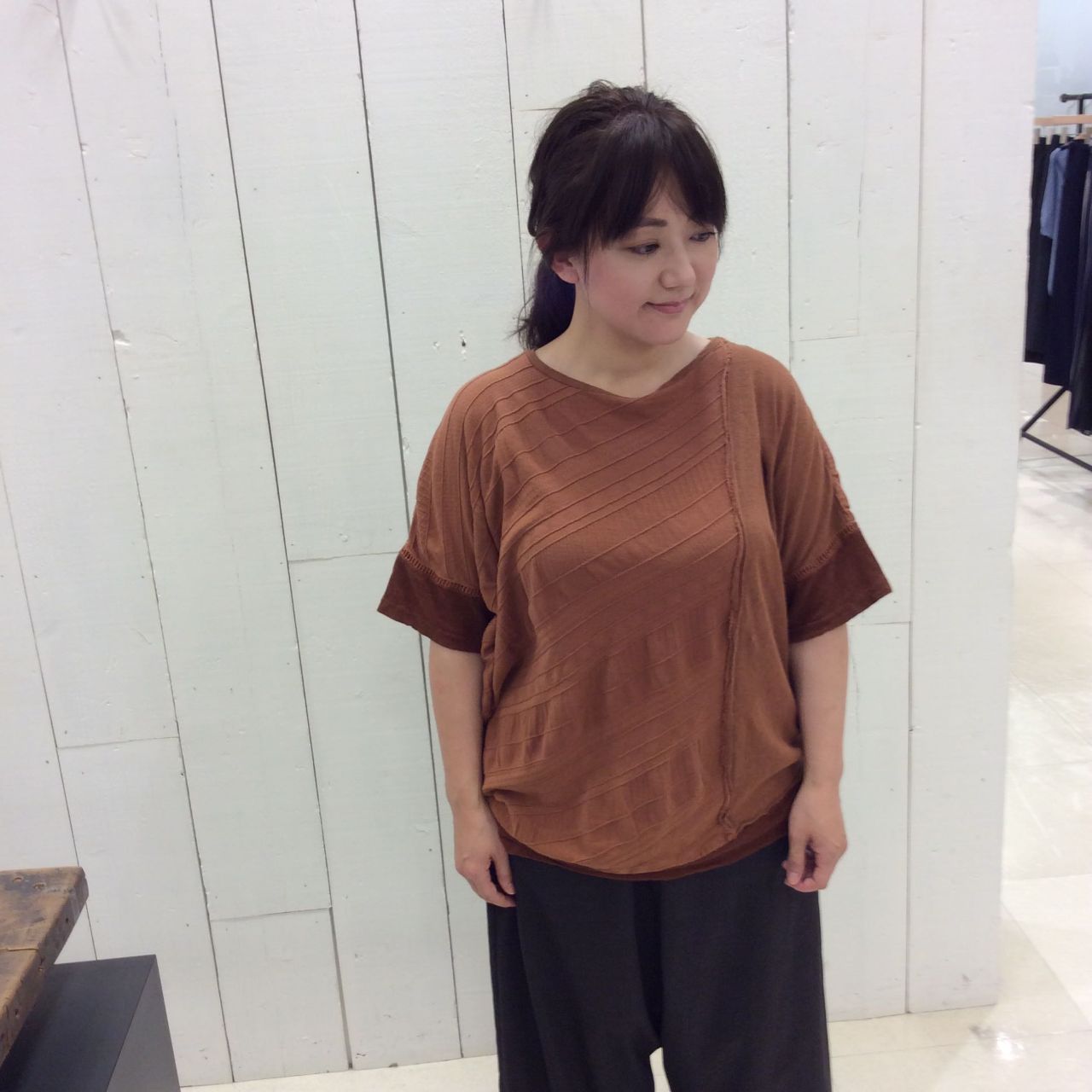 袖も使いやすい長さなので、カーディガンなど羽織っても、一枚着としても着回しがききます。