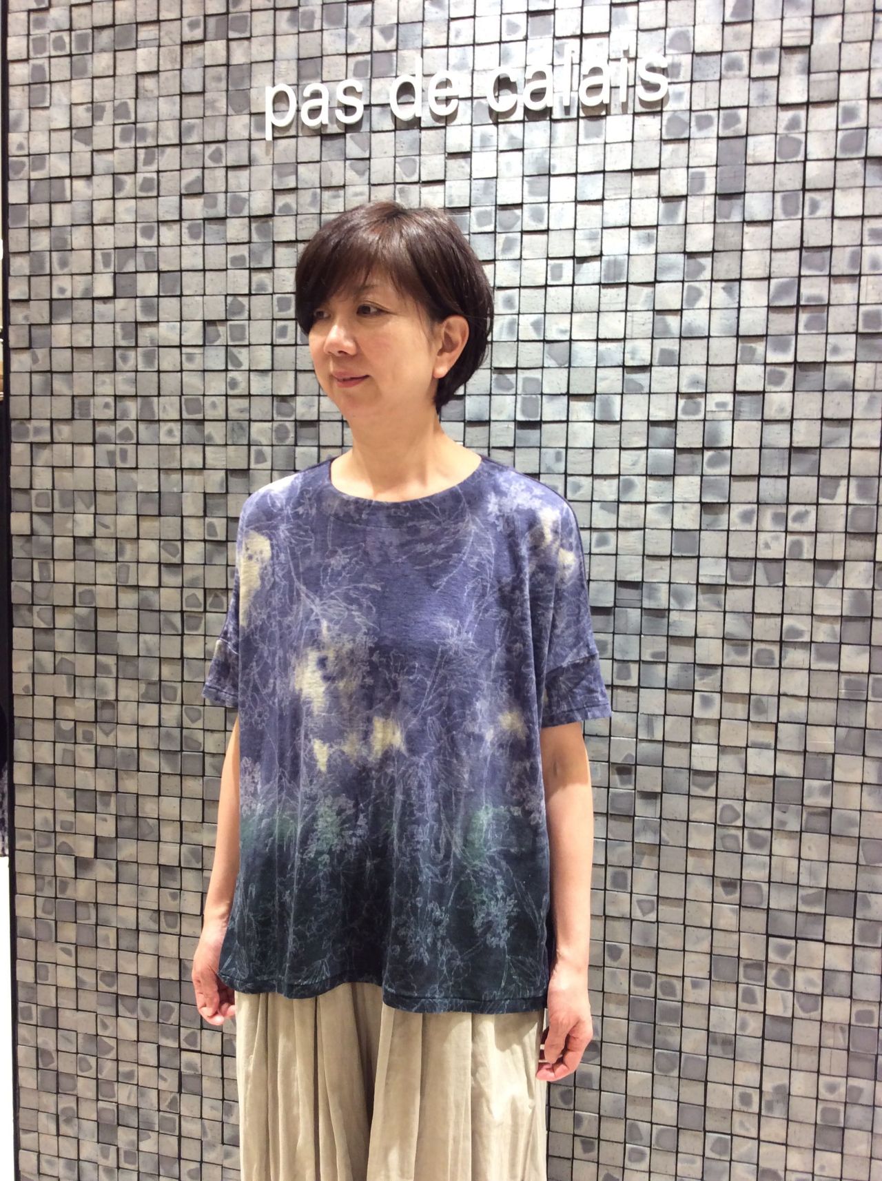 裾の濃い部分は、職人による手捺染プリントでグラデーションにしています。