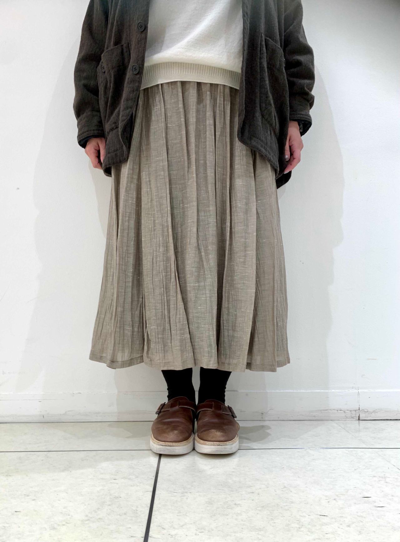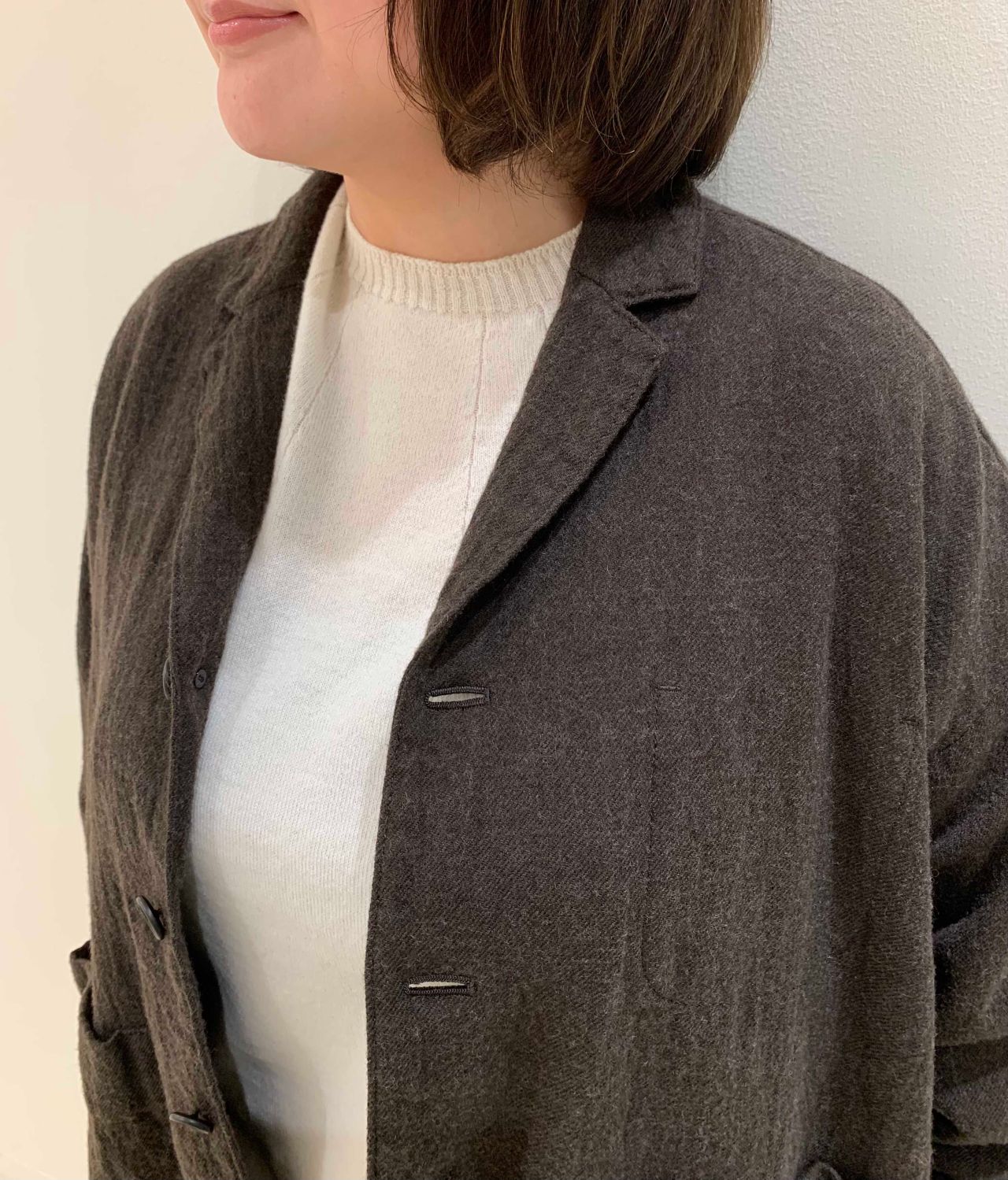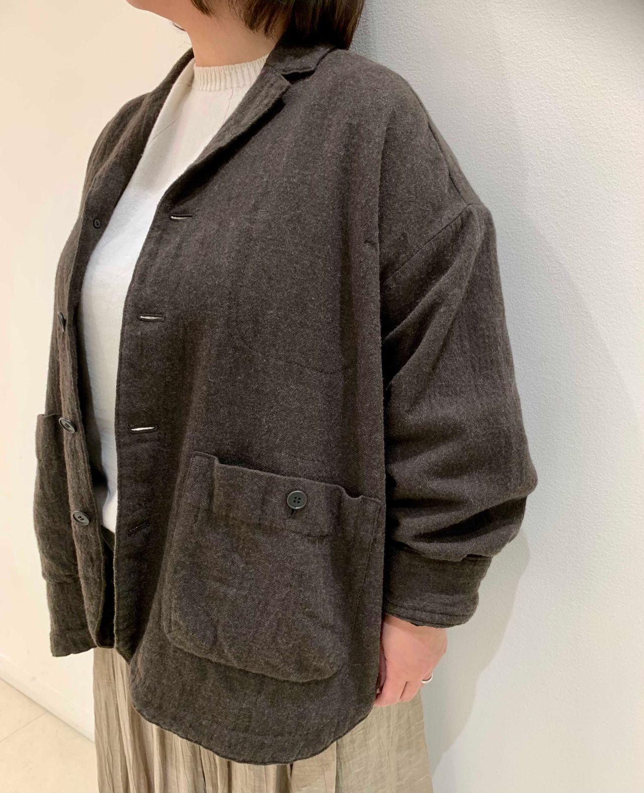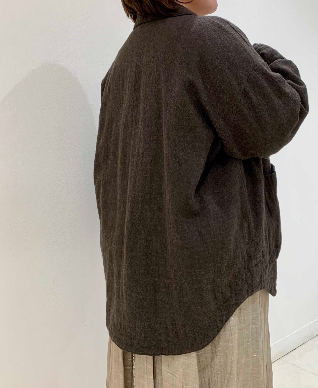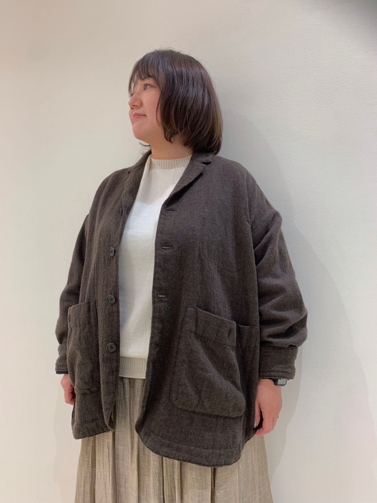 たっぷりとした身幅なので、中にニットなどを着込んでいただけます。
