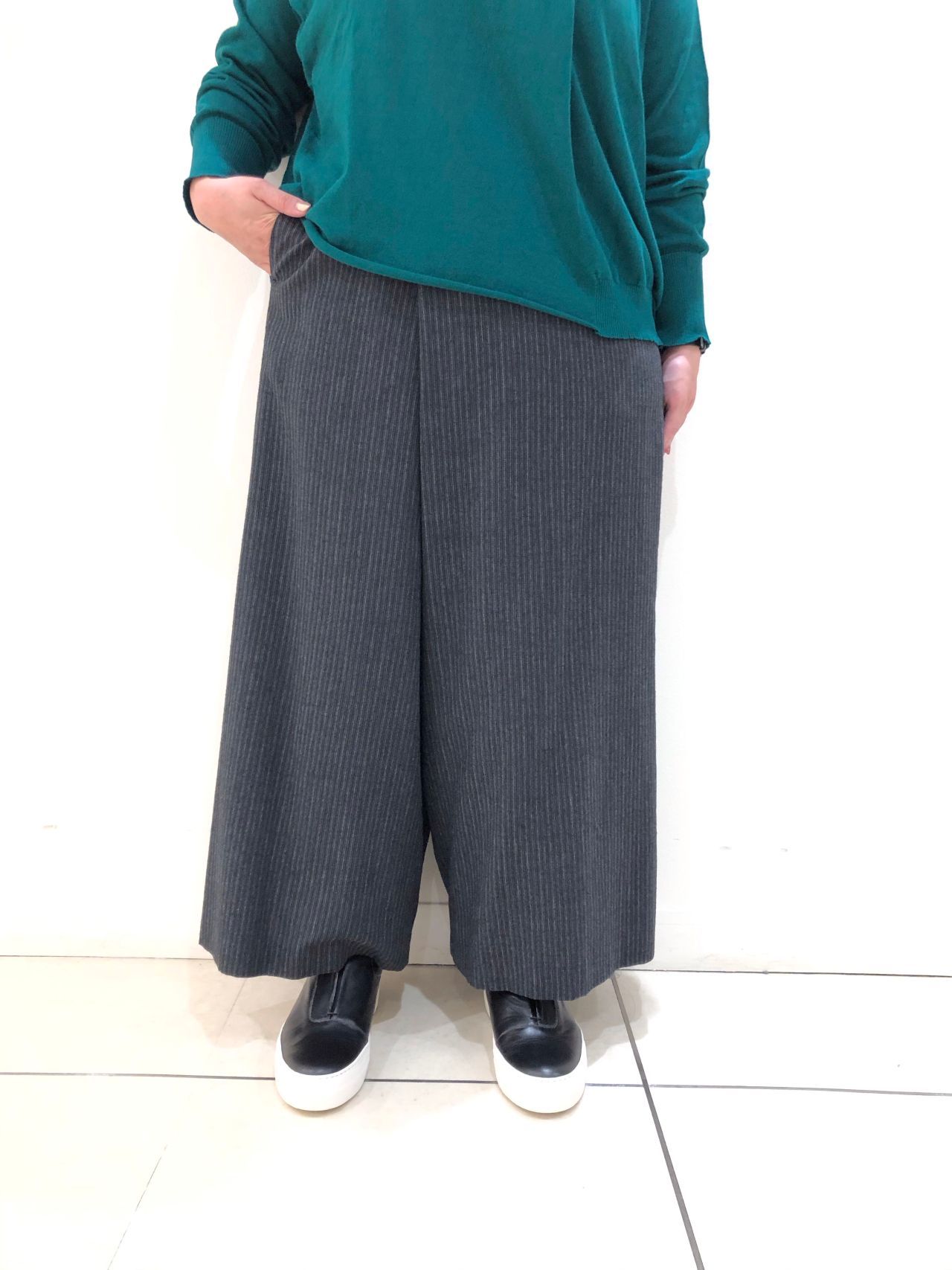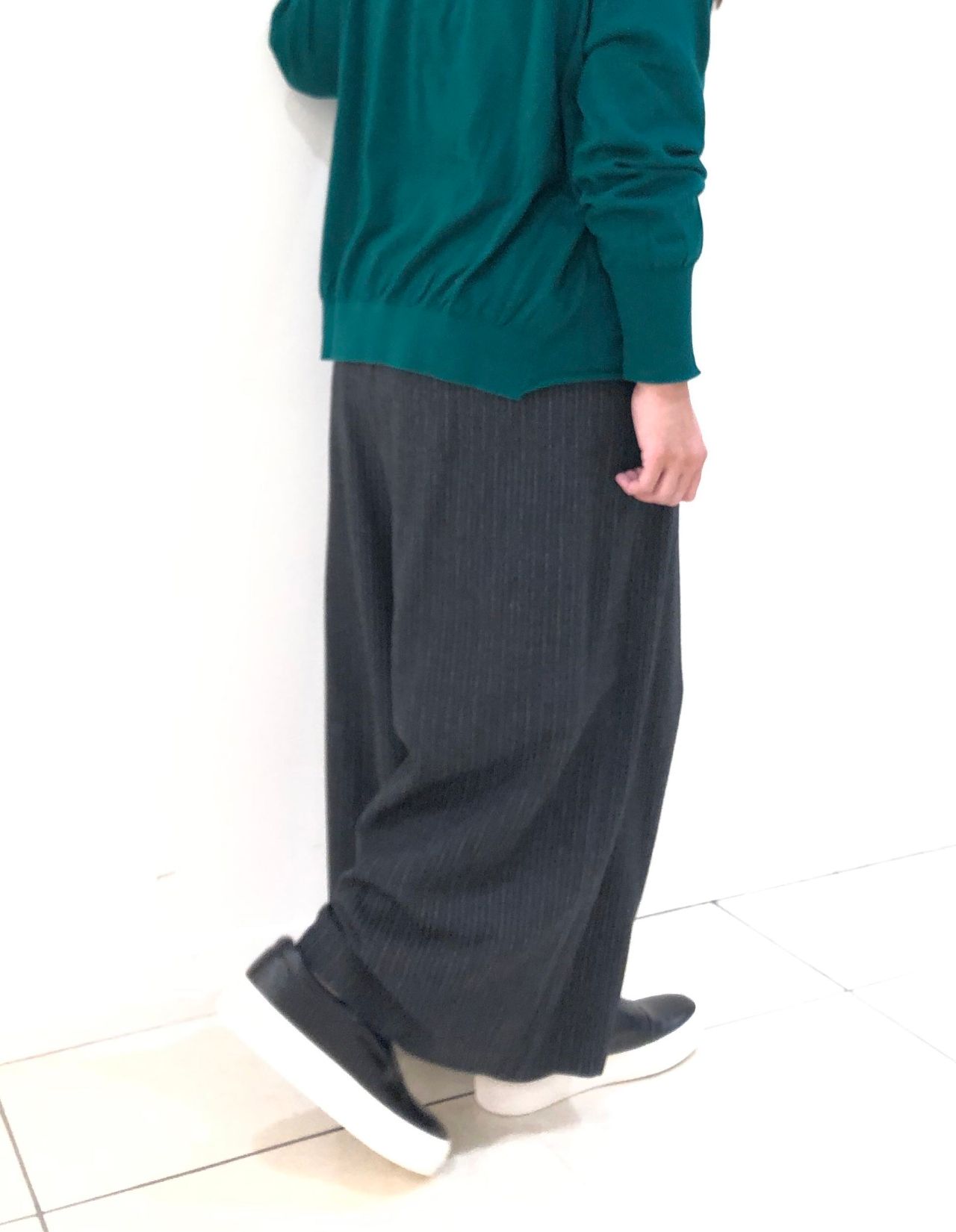 薄手なので、落ち感がありすっきりとしたシルエットで履いて頂けます。
