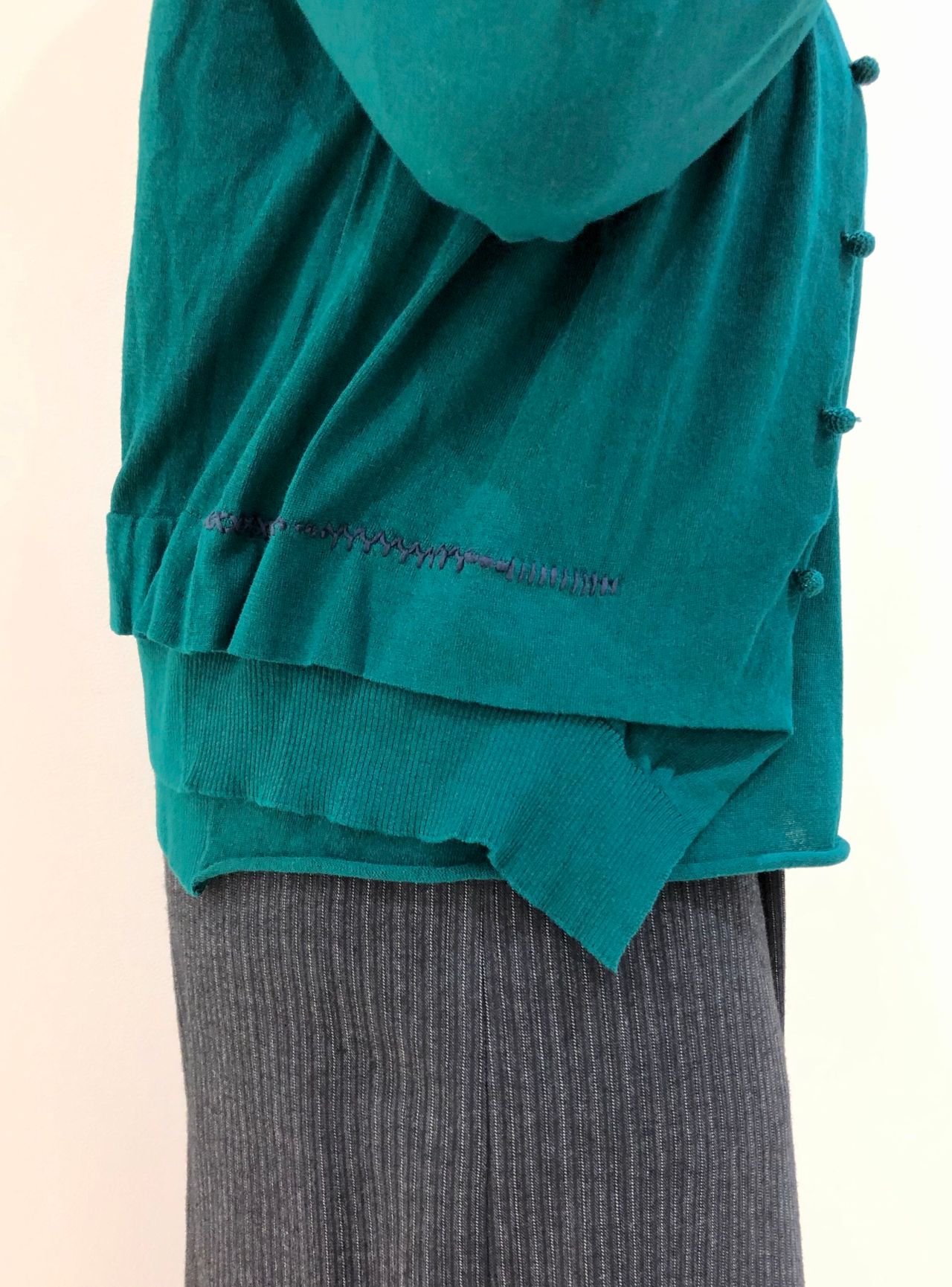 中に着てる同じ素材のプルオーバーは首元のステッチがポイント。