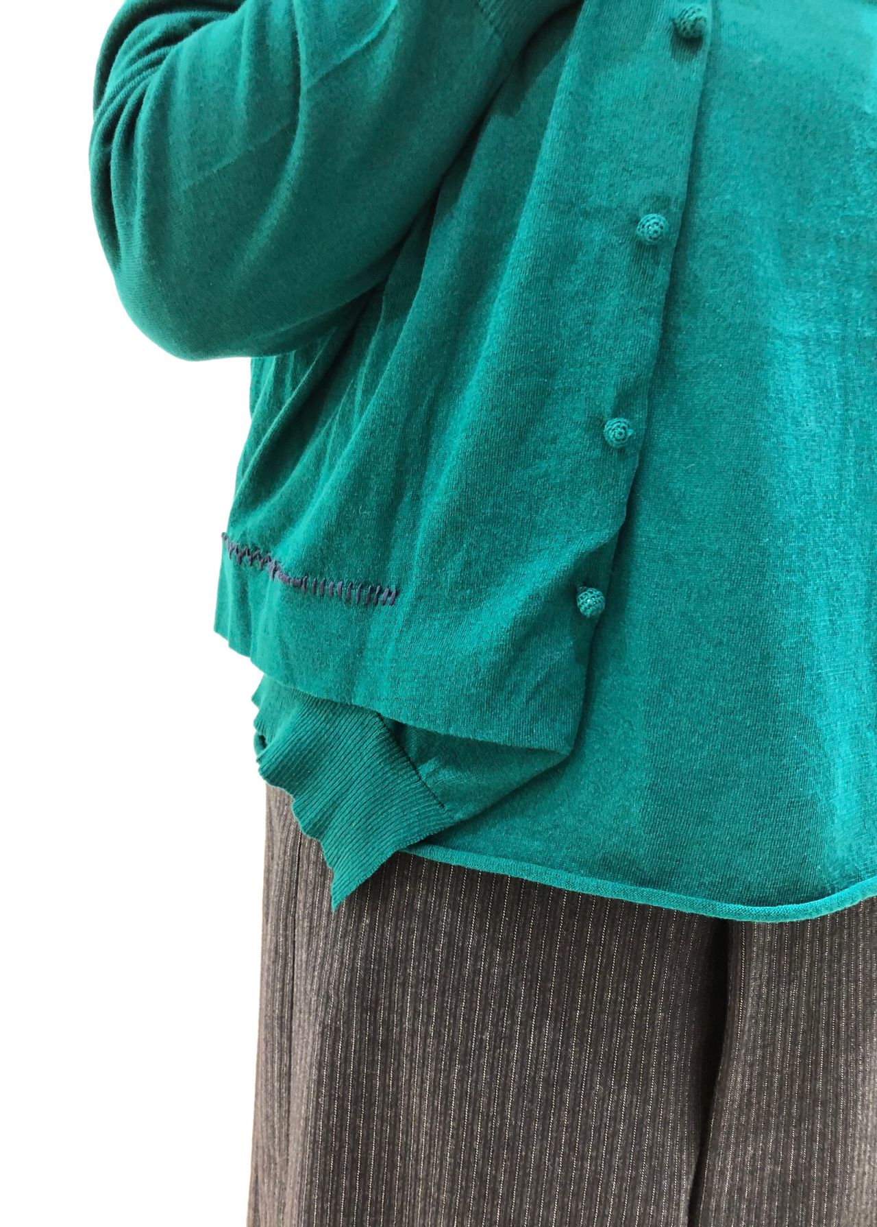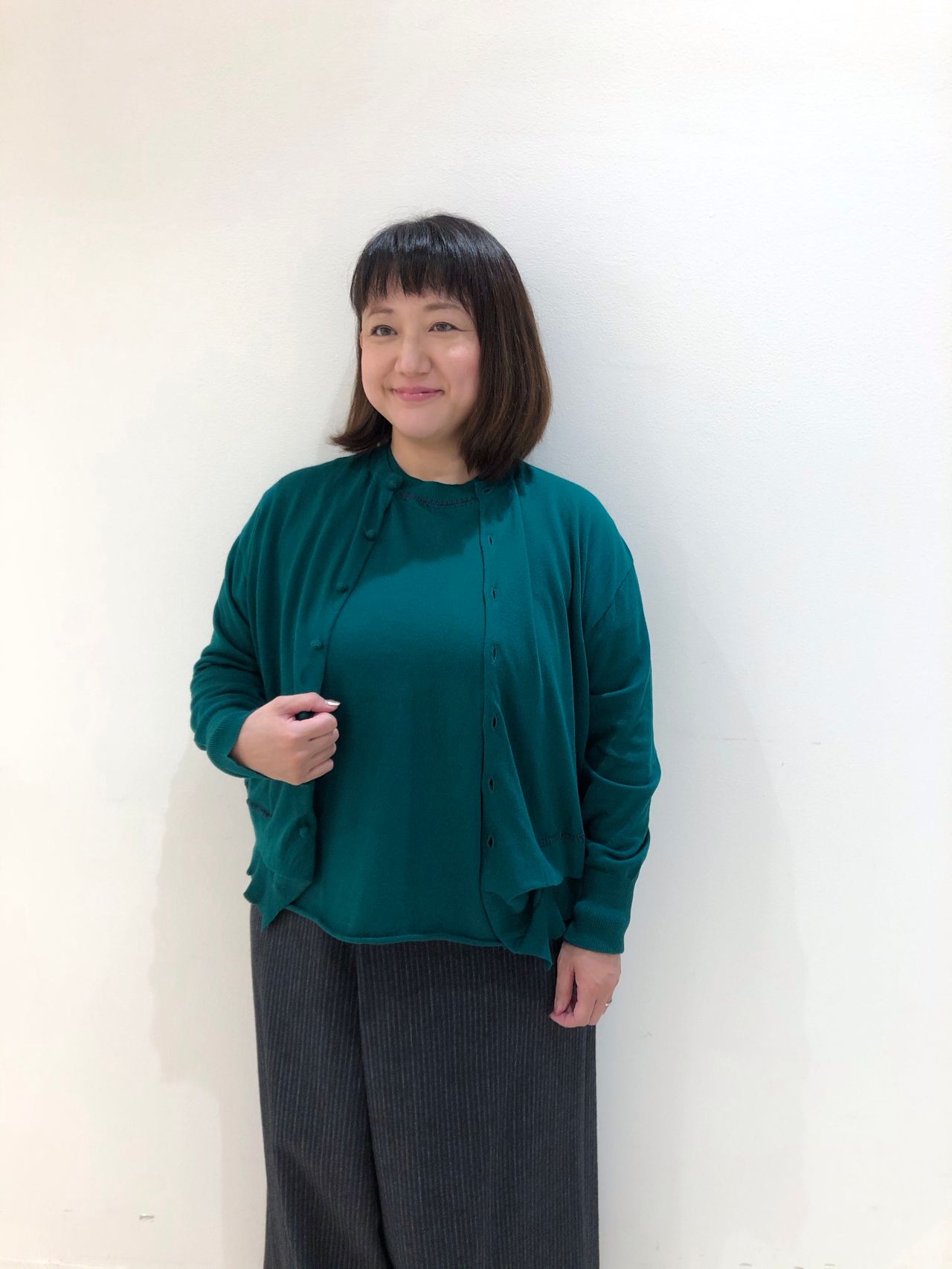 綿100%の薄手のニットなので季節的に長く気軽に着て頂けますし、ボタンを閉めて1枚着としても使える万能なカーディガンです。