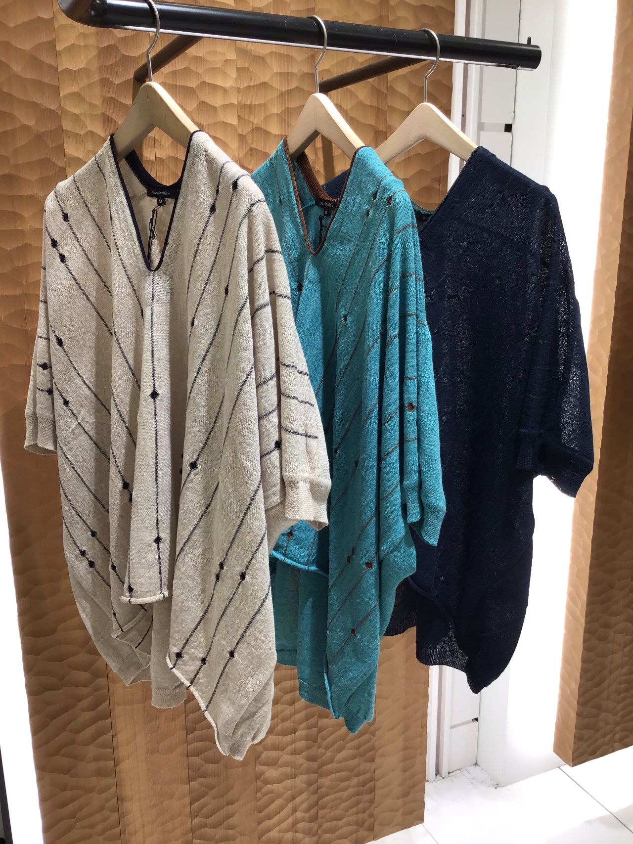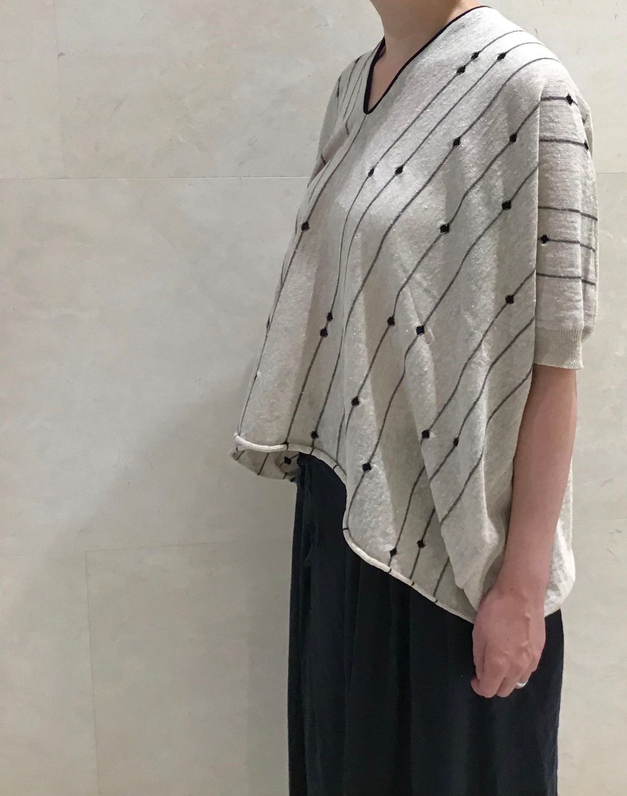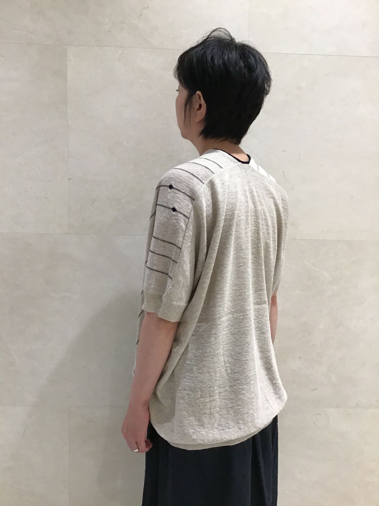 確かに、暑い汗ばむ時は肌にベタッとした感じが嫌で、夏はカットソーを選びがちですが、このニットは程よいハリがあるため肌に触れる分量が少なく、リネンの見た目の涼しさで爽快感があります。