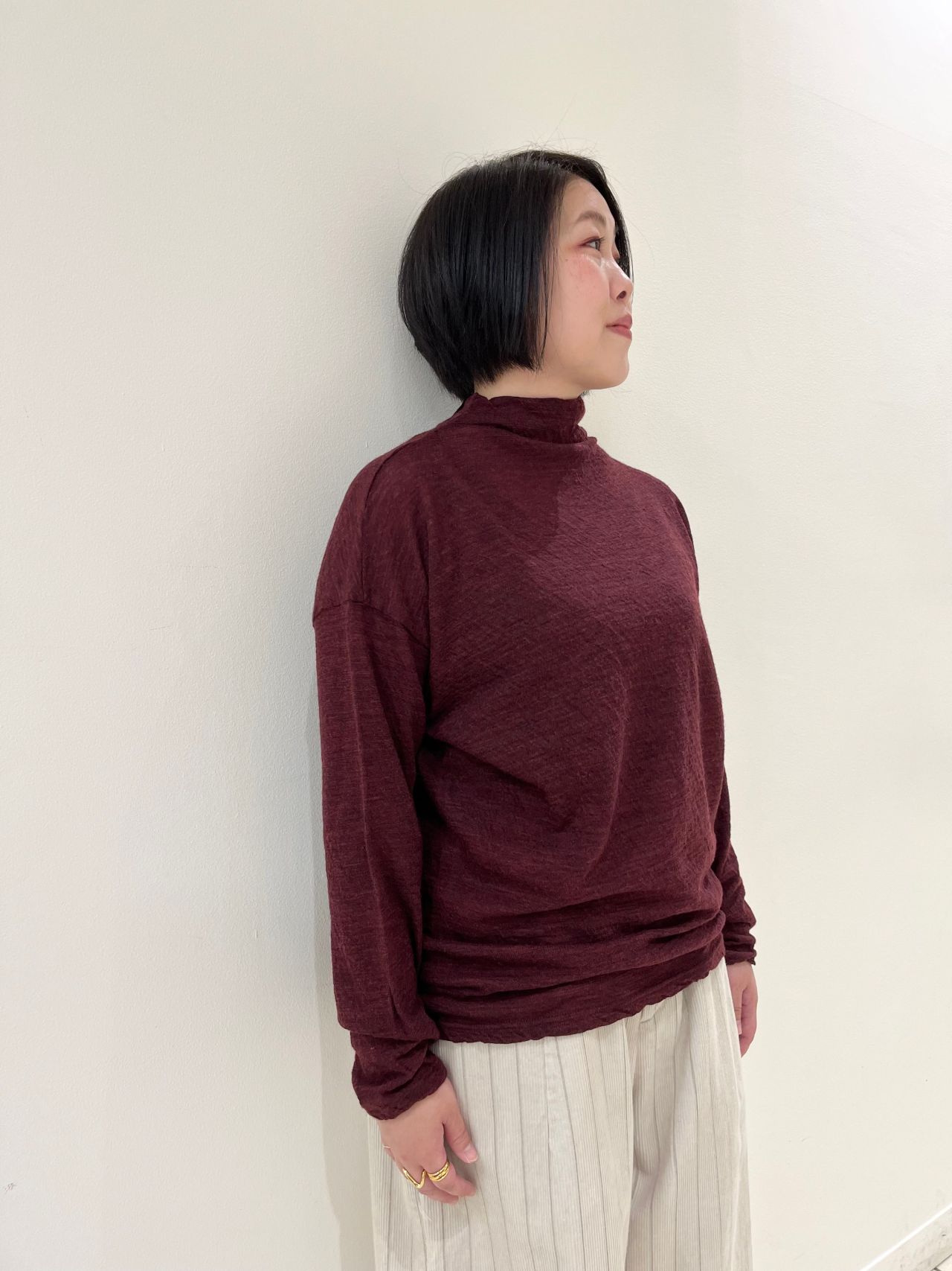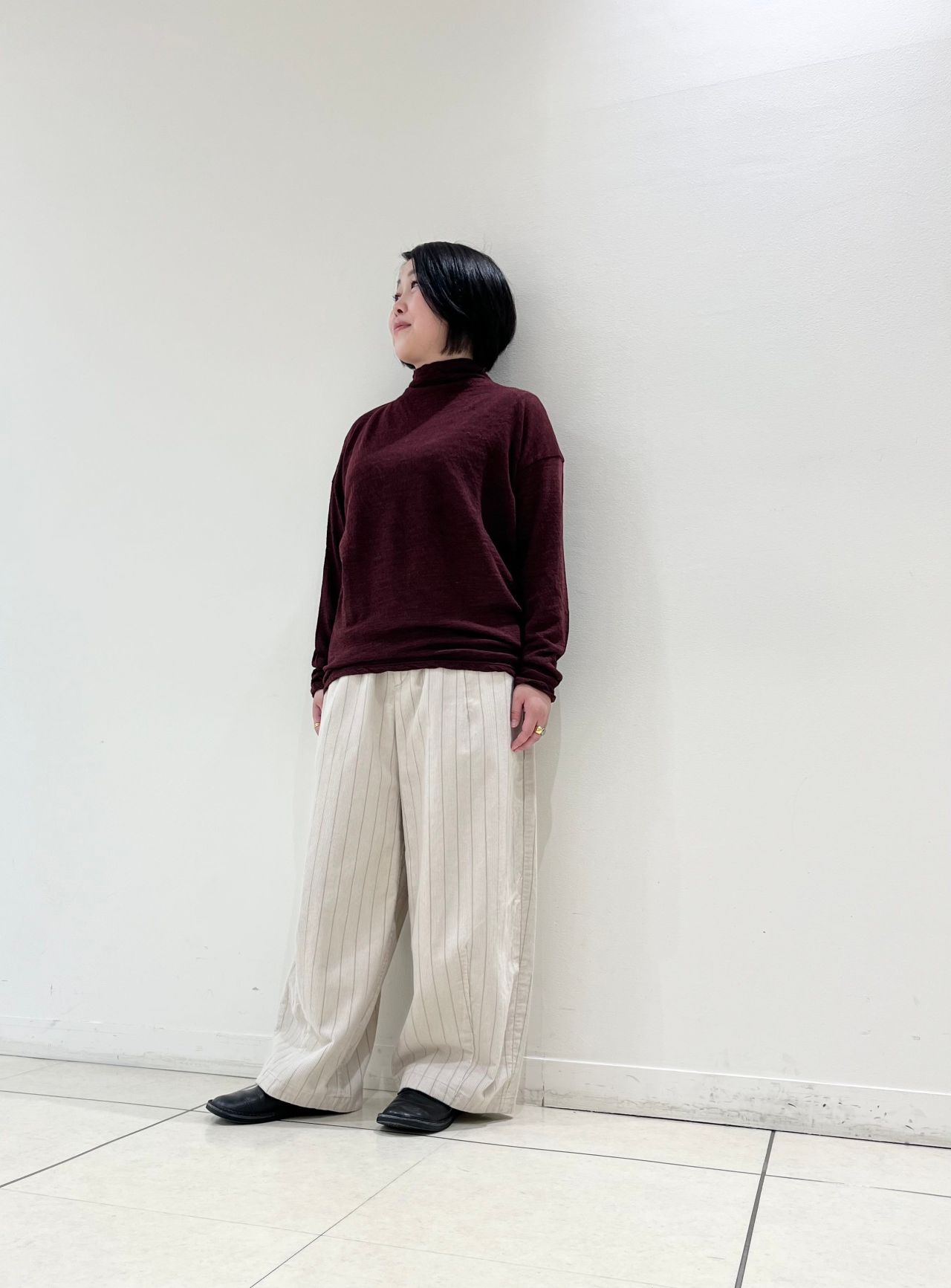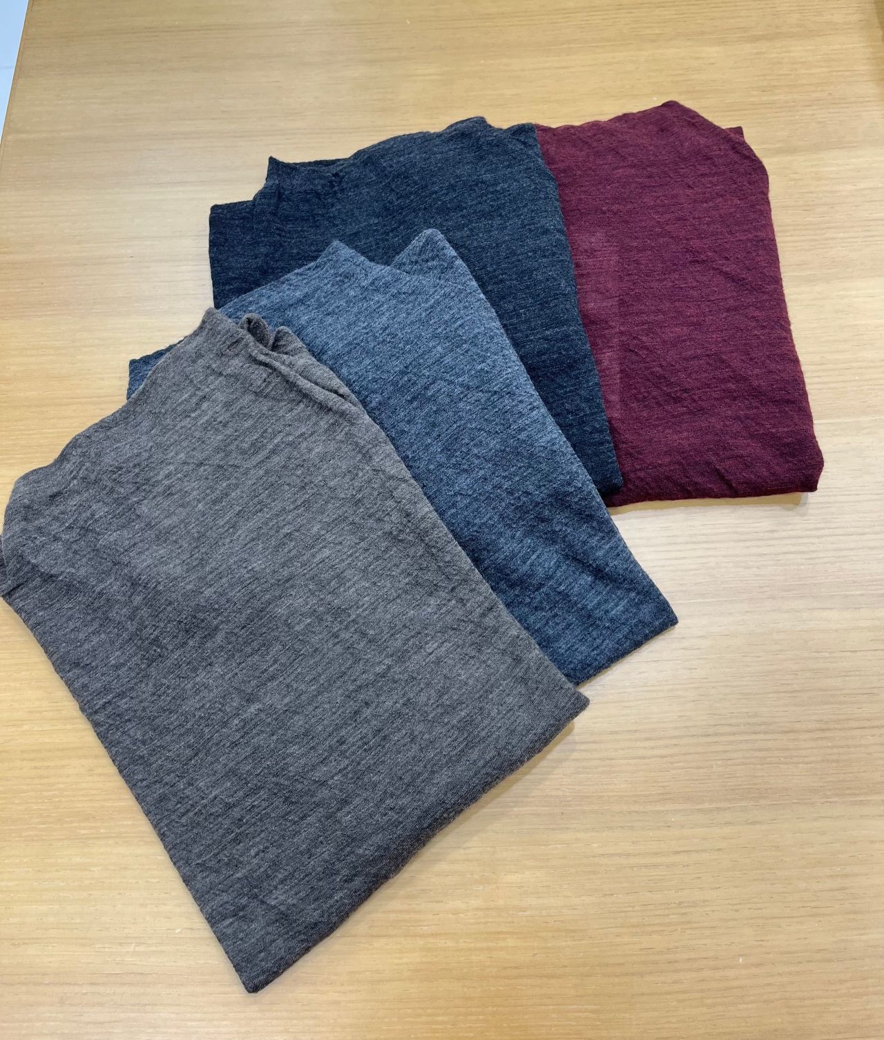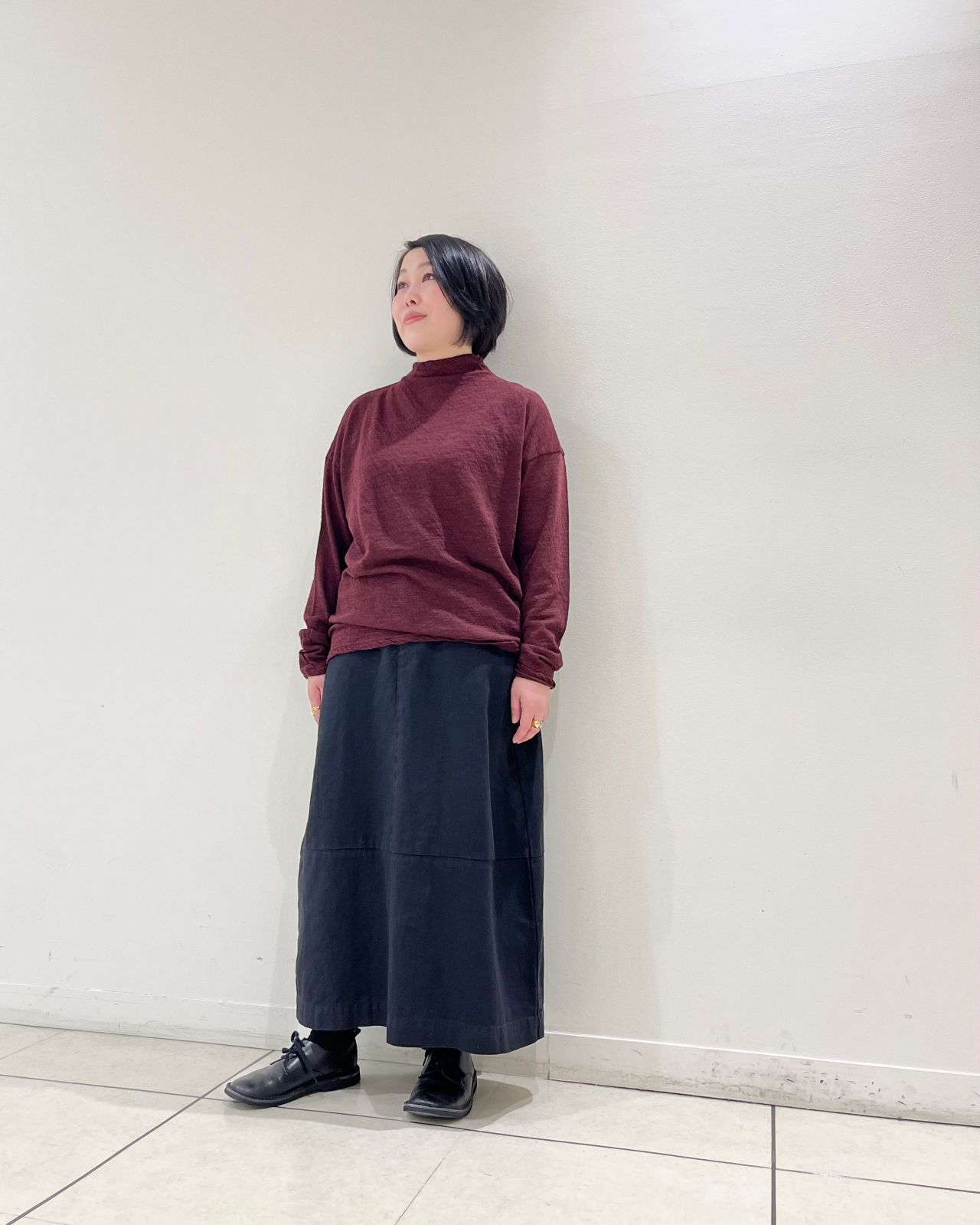 重ね着しやすいように裾巾は広がりすぎないように設定して、カーディガンやジャケットなどのインにもおすすめです。