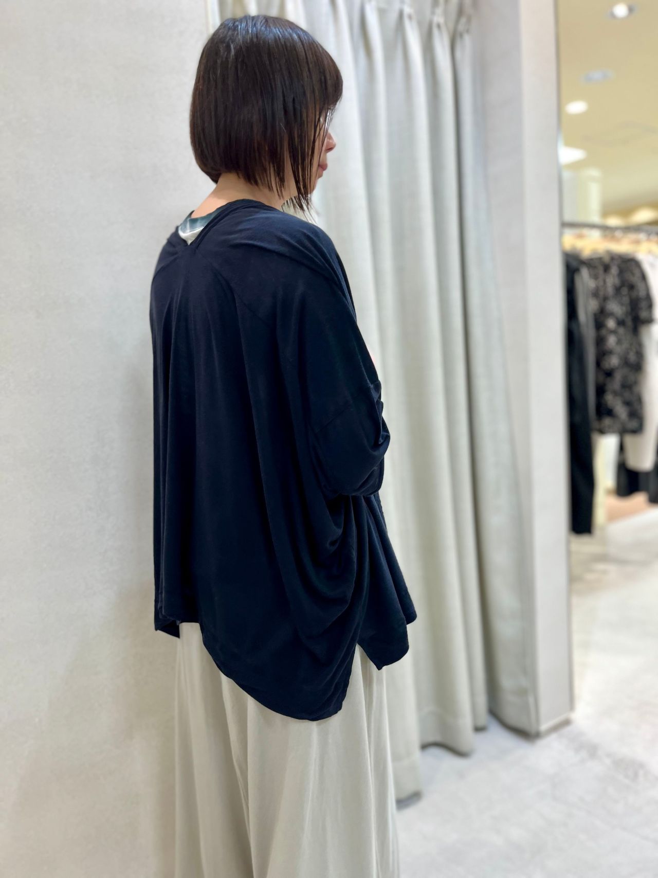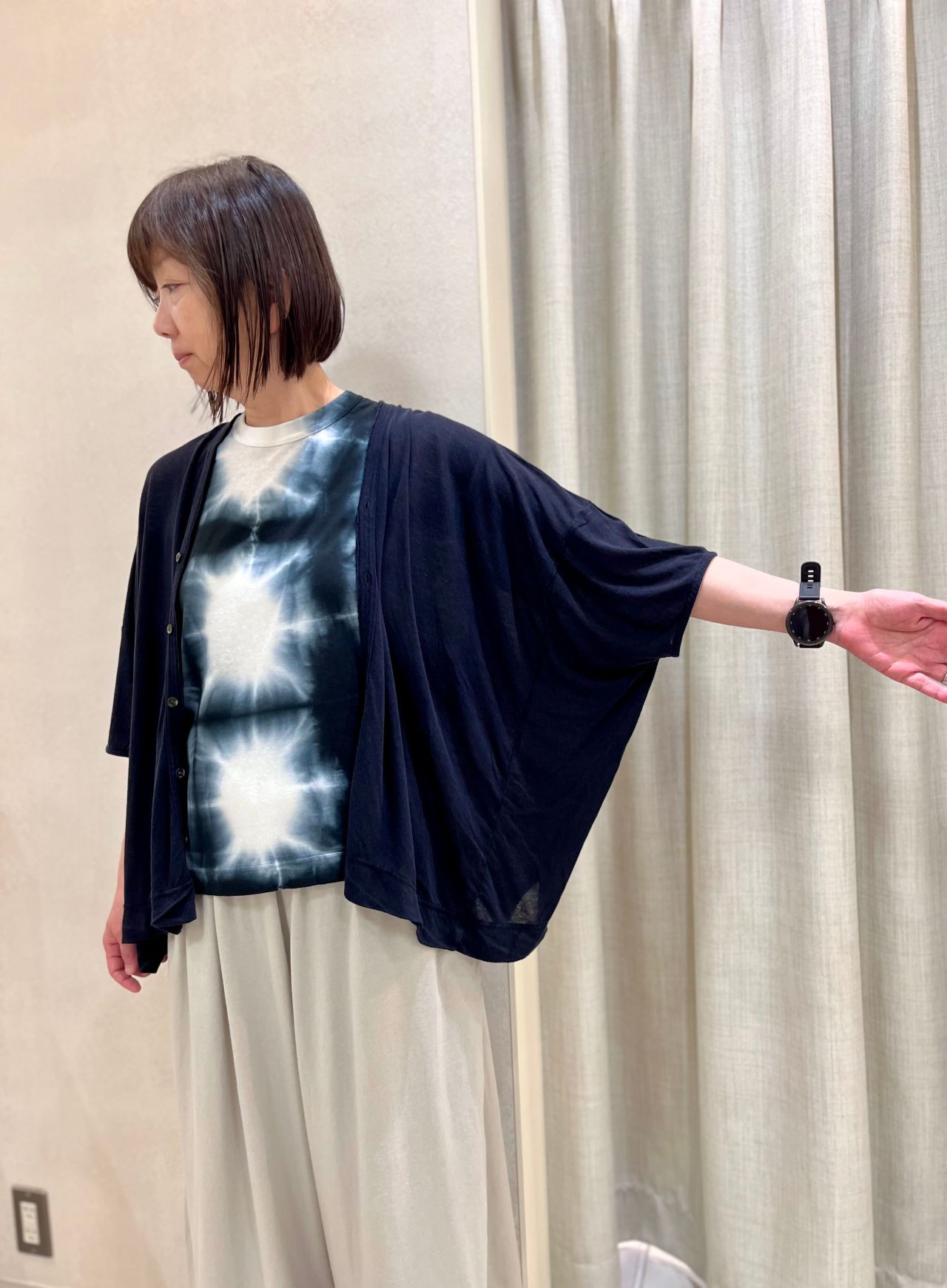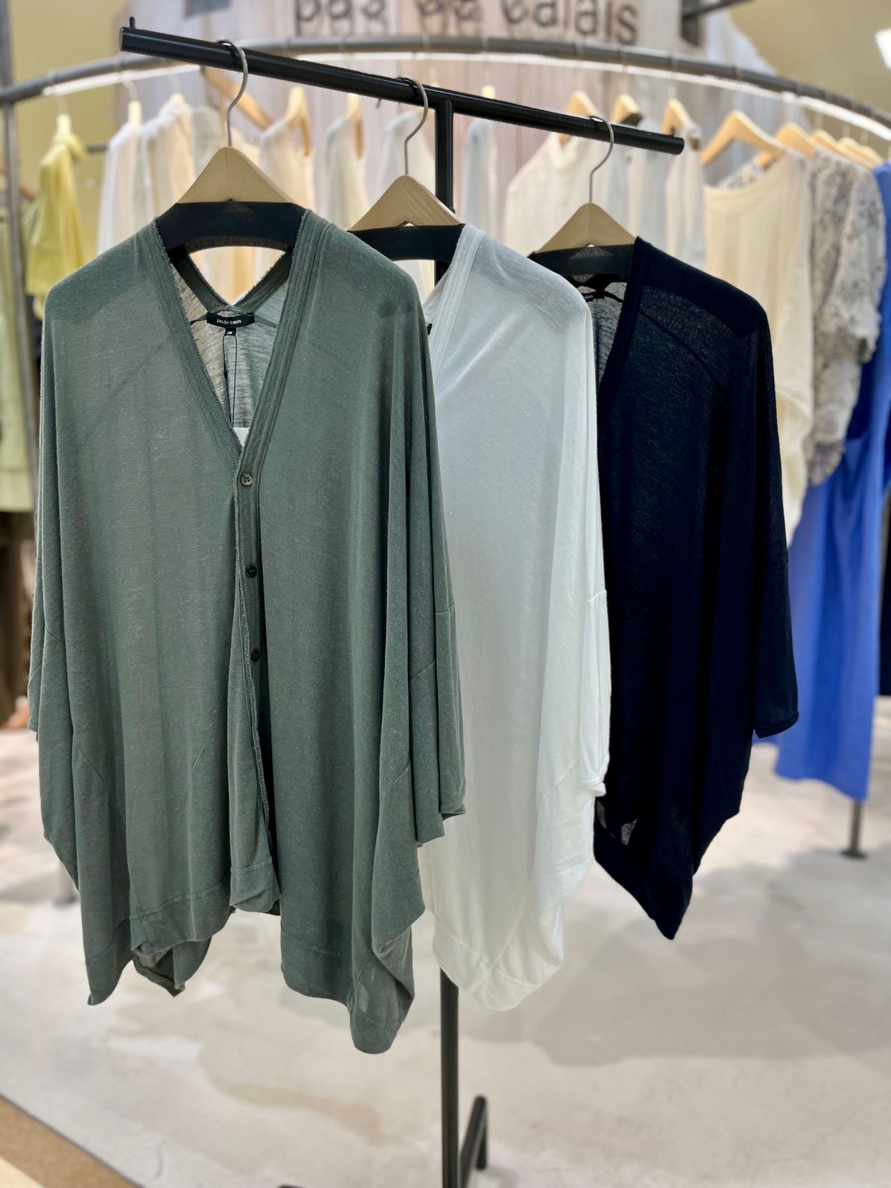 ポンチョのようにゆったりシルエットのカーディガンで、ドルマンスリーブやドロップショルダーのインナーでも、もたつかずサラッと羽織れます。