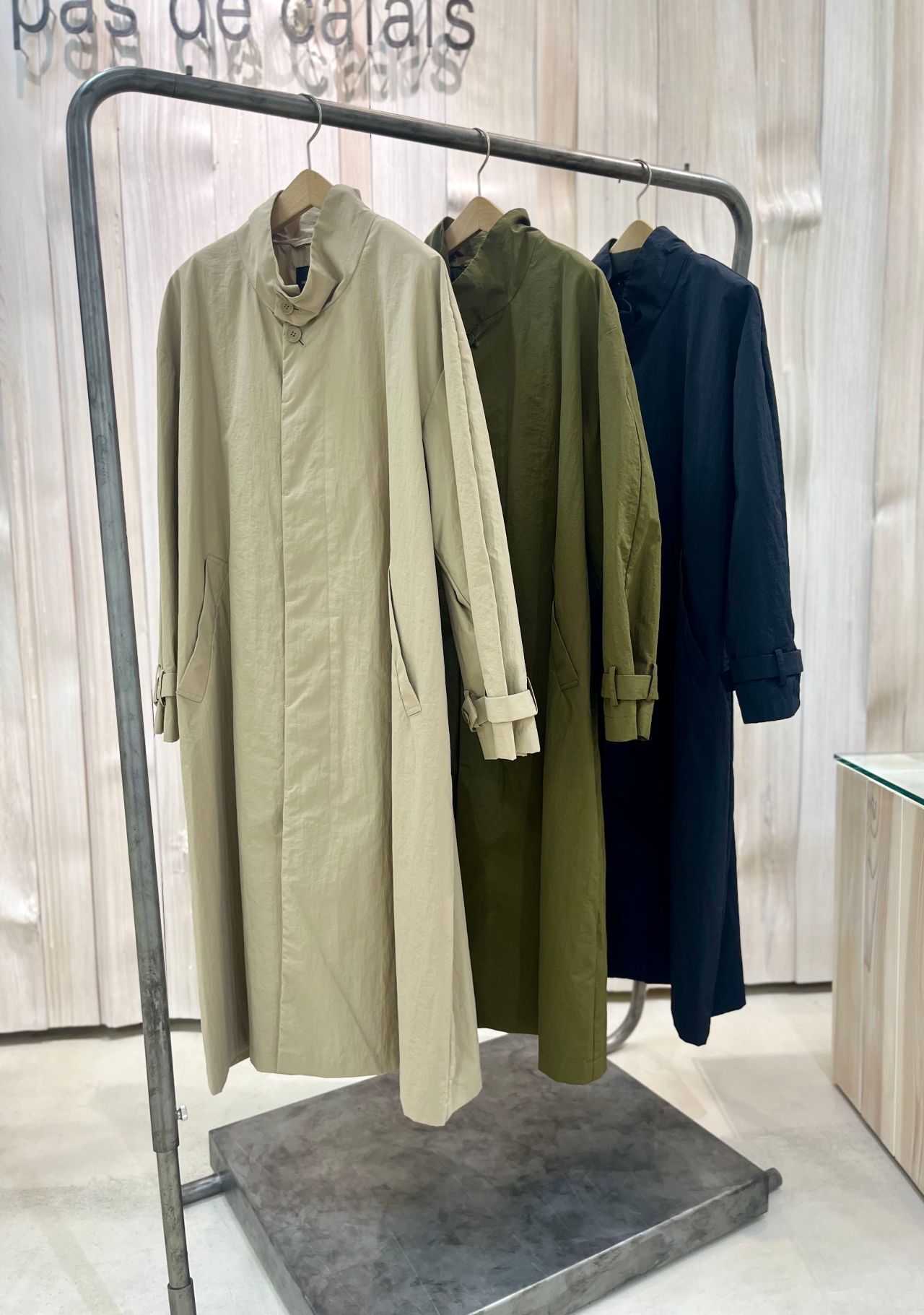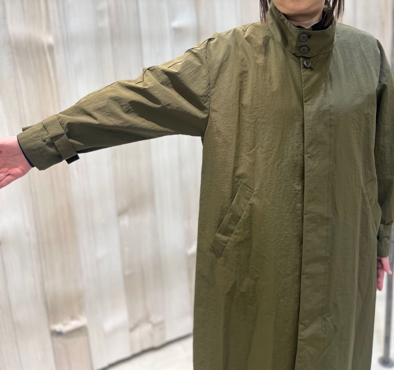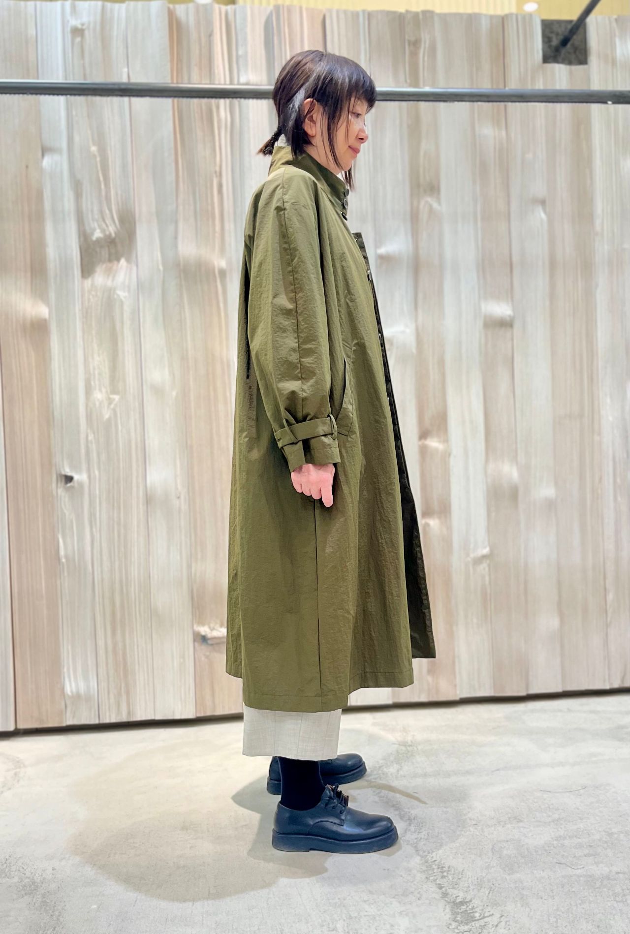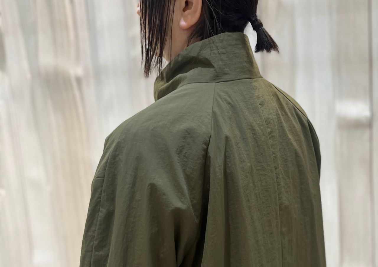 ナチュラルな素材と素朴な色合いとメンズライクなスタンドカラーが特徴です。