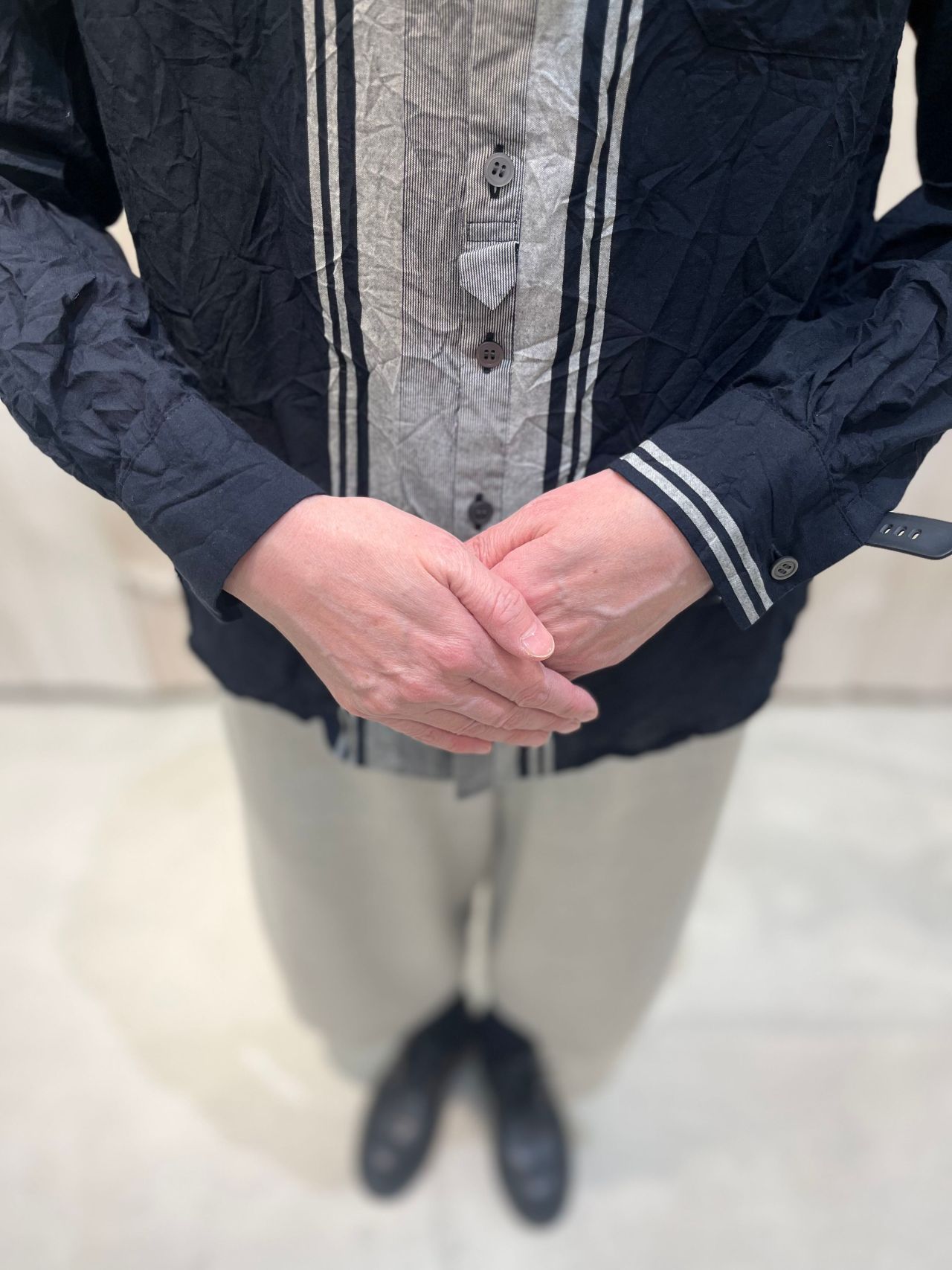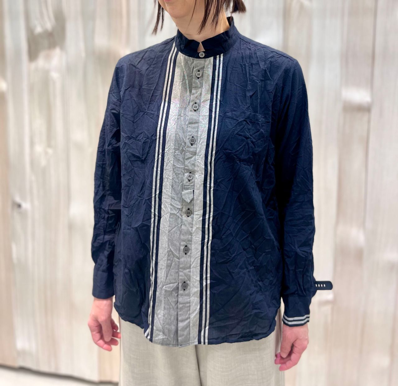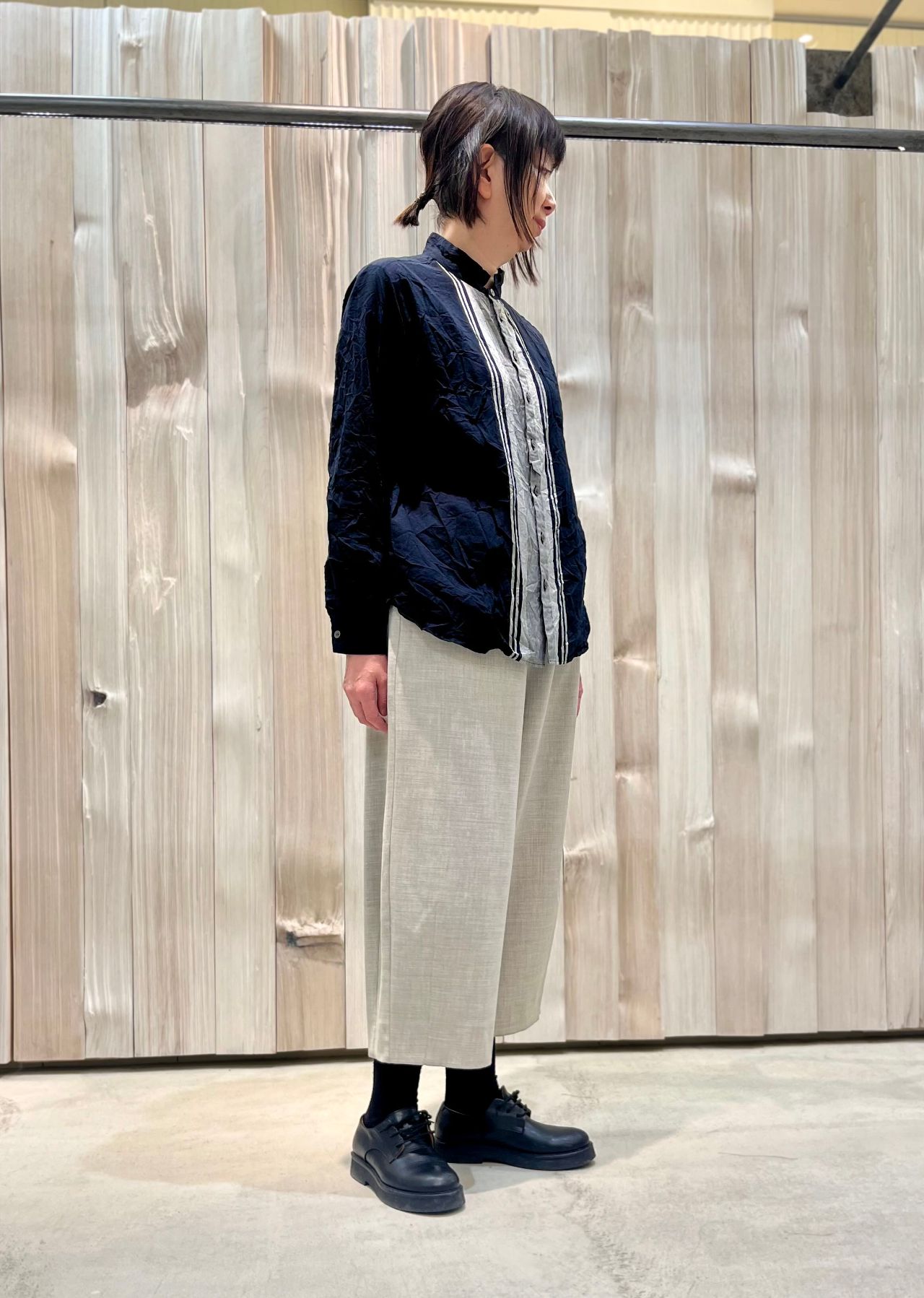 ナチュラルな素材と素朴な色合いとメンズライクなスタンドカラーが特徴です。