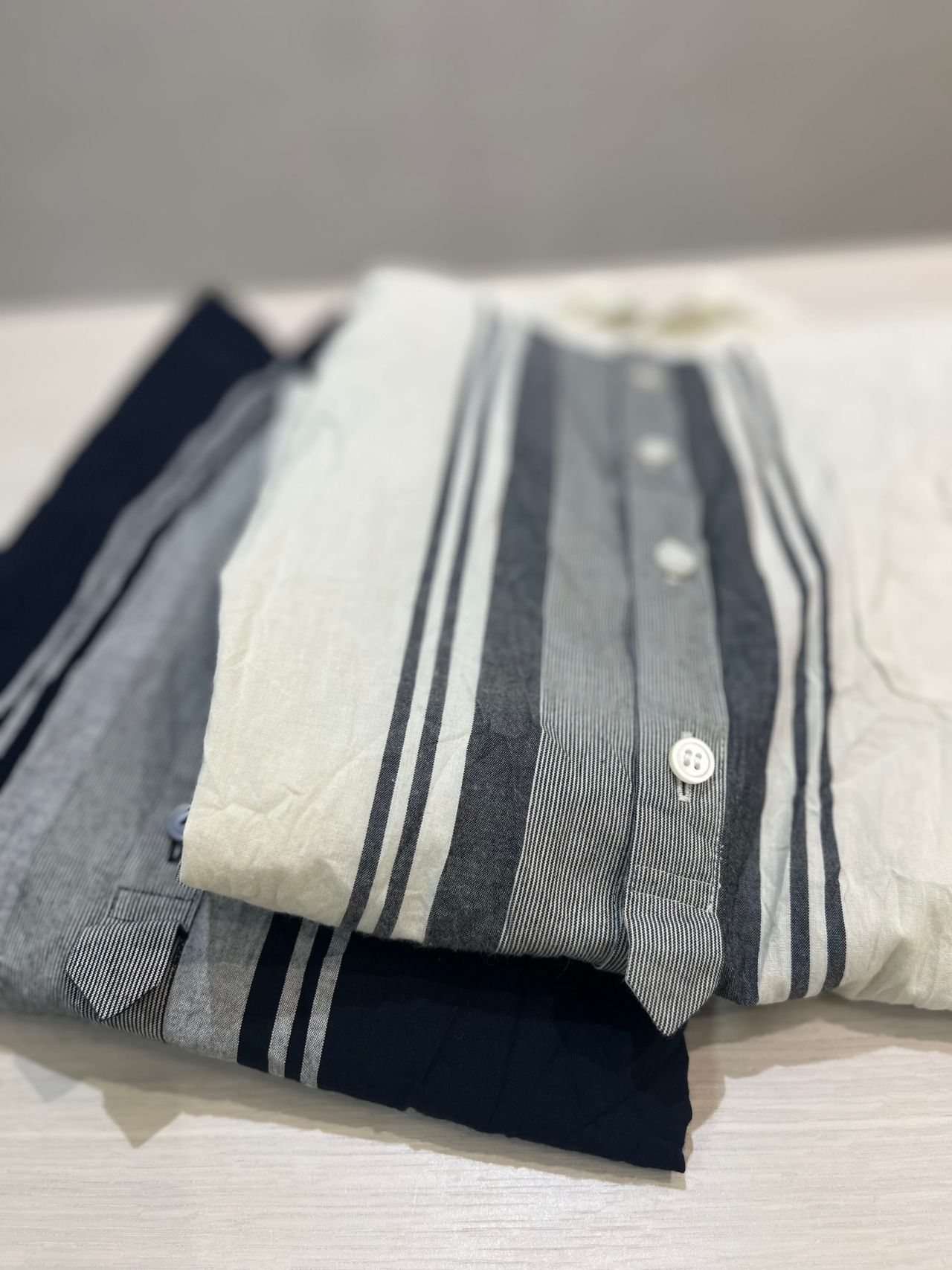 先染めの耳縁ストライプ柄を部分的に使用しています。
