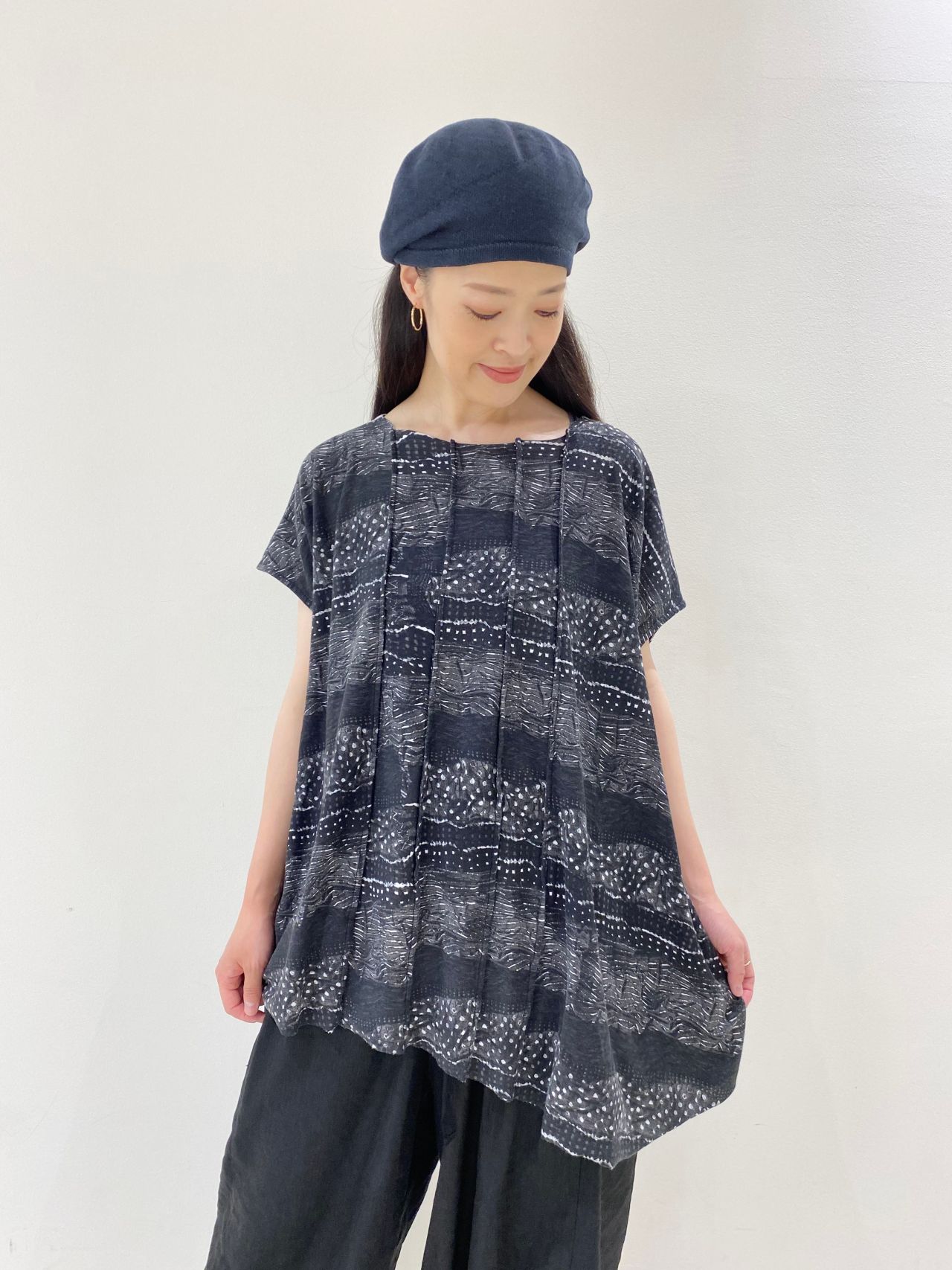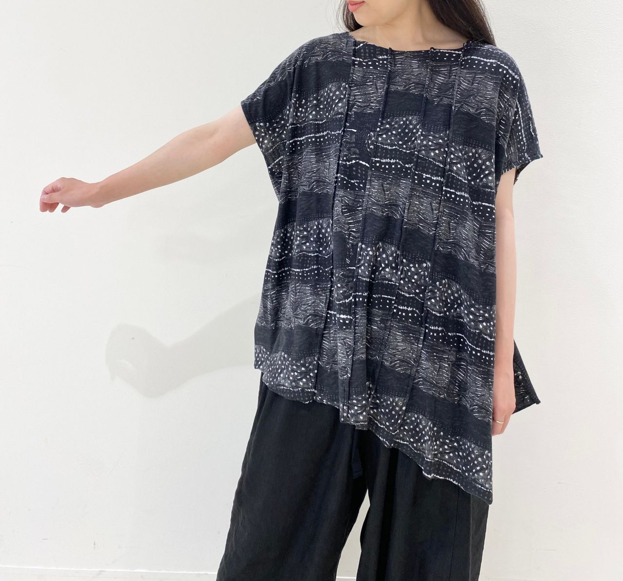 大きすぎずに程良いバストに、少し長めにした後ろ着丈ですっきりとさせた、スタイリングしやすいトップスになります。