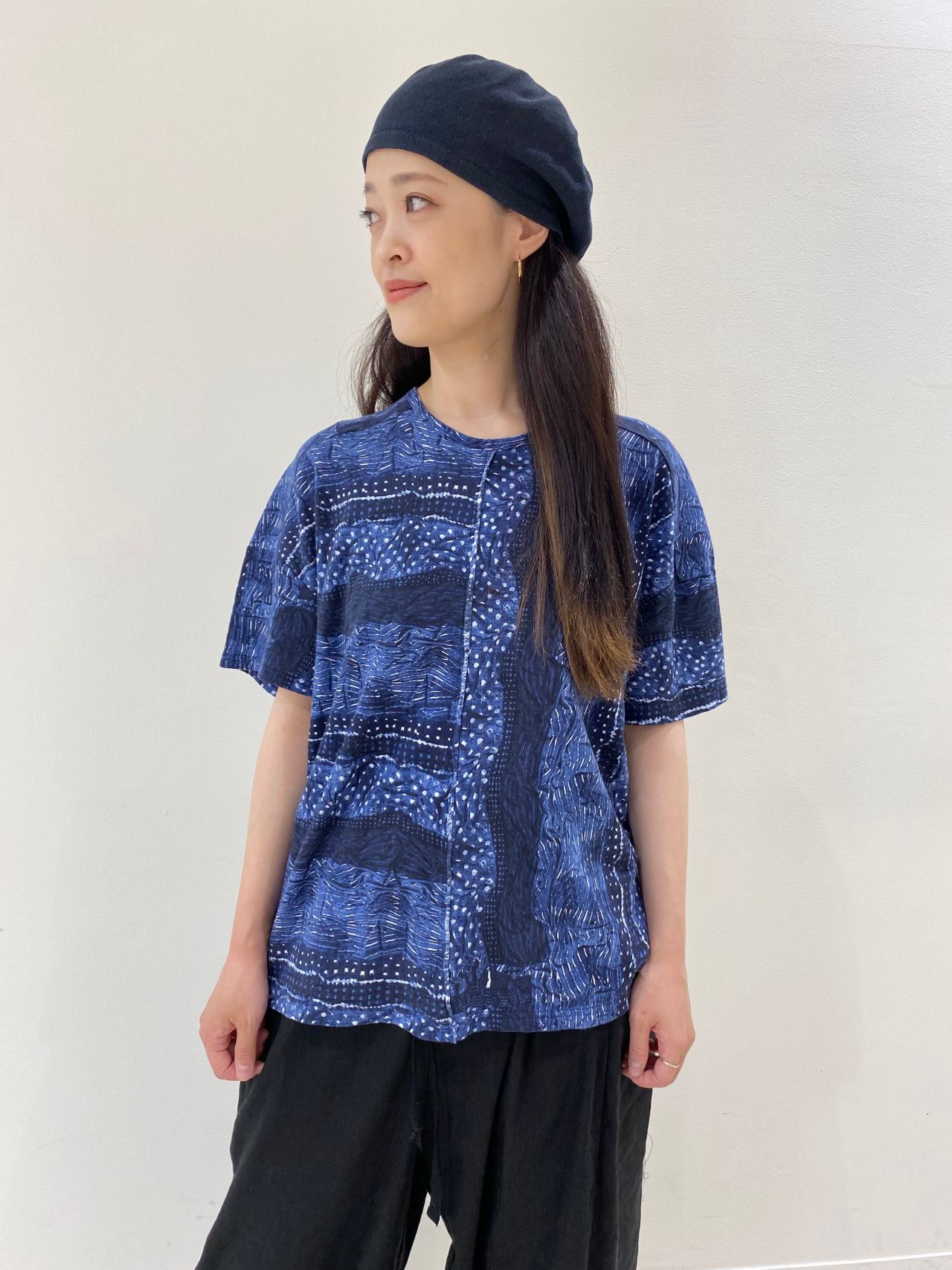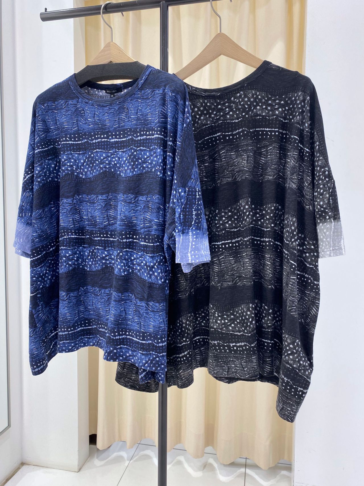 プリントを切替えてアクセントにした、クルーネックTシャツ。