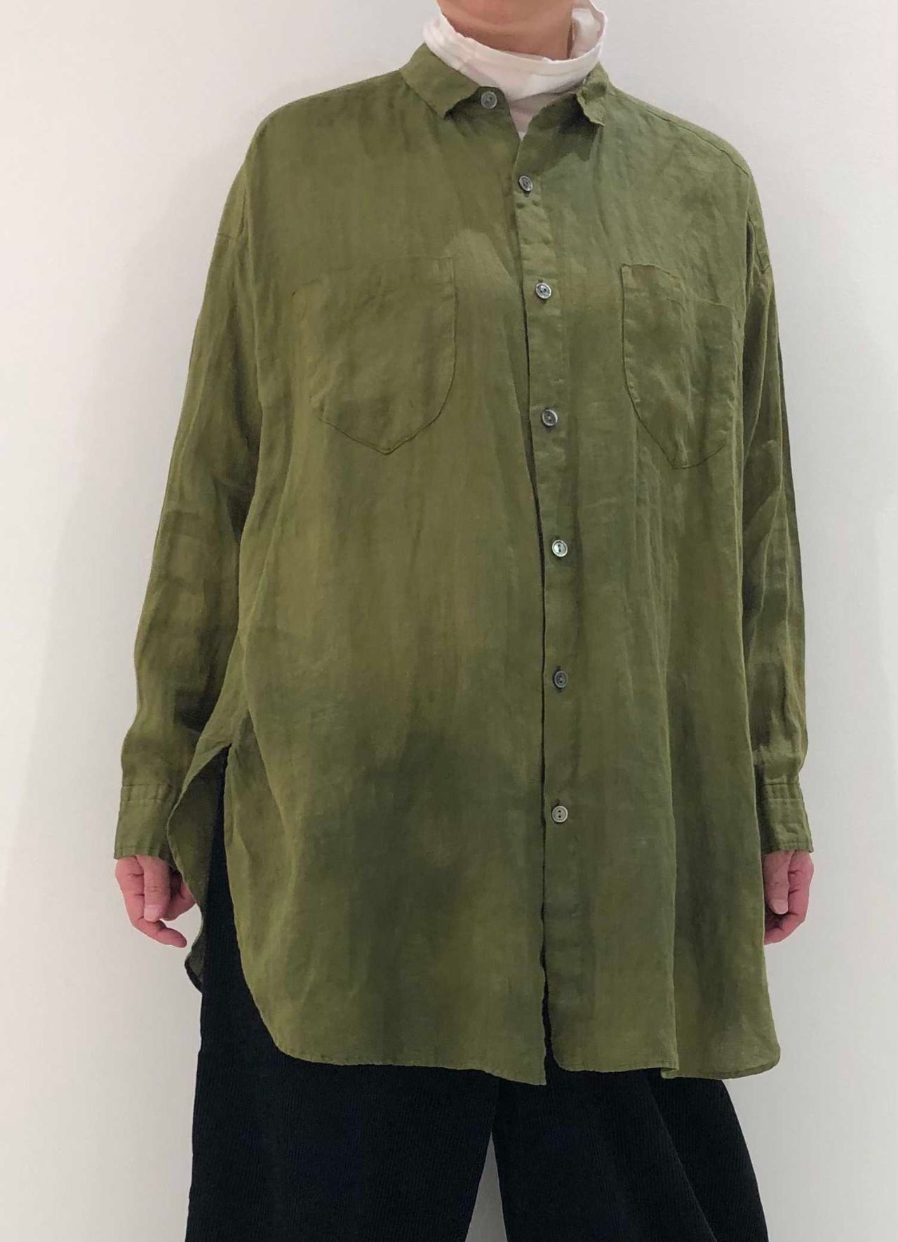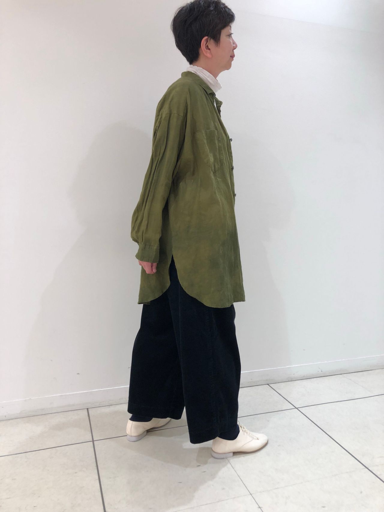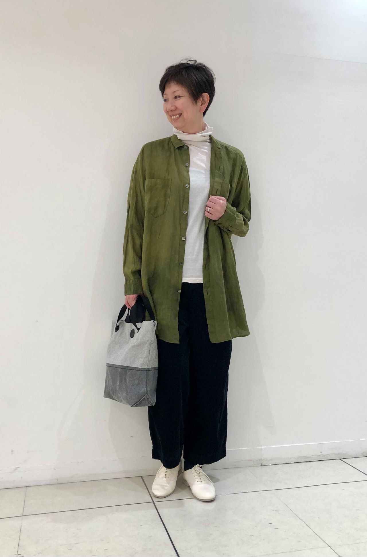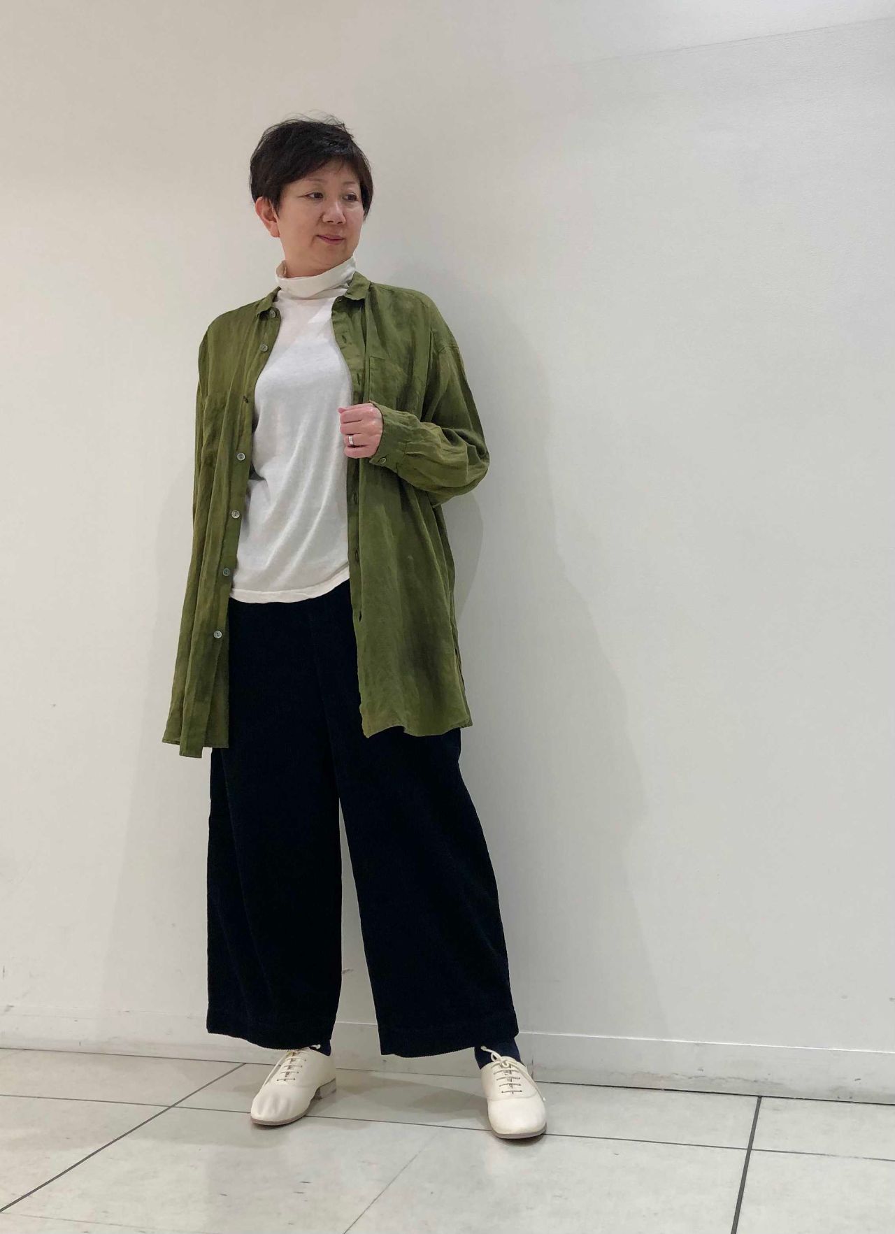 メンズのようなゆったりとしたシルエットで細身、太身、スカートと何を合わせもオシャレっぽい雰囲気です。