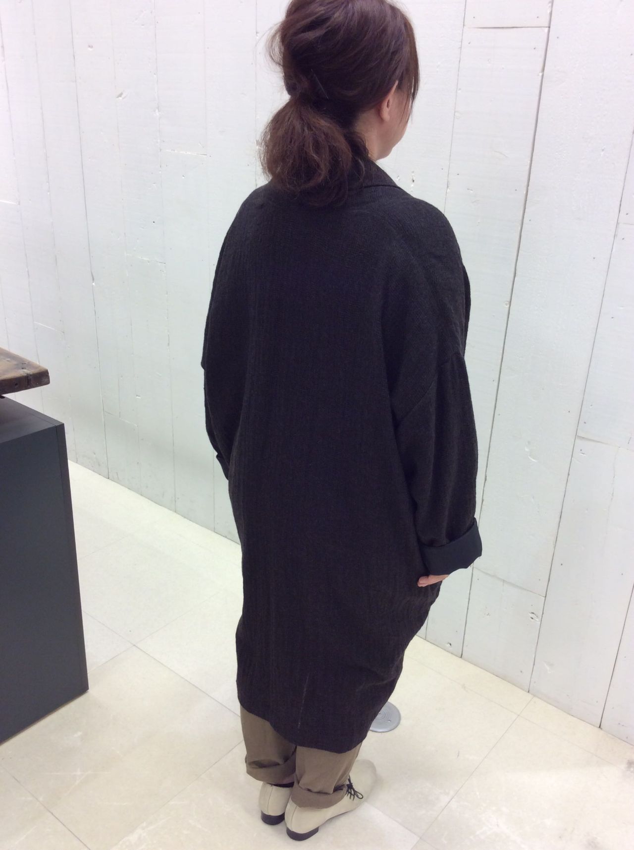ウール素材で裏地もついてますのでこれからの季節長く着ていただけます。