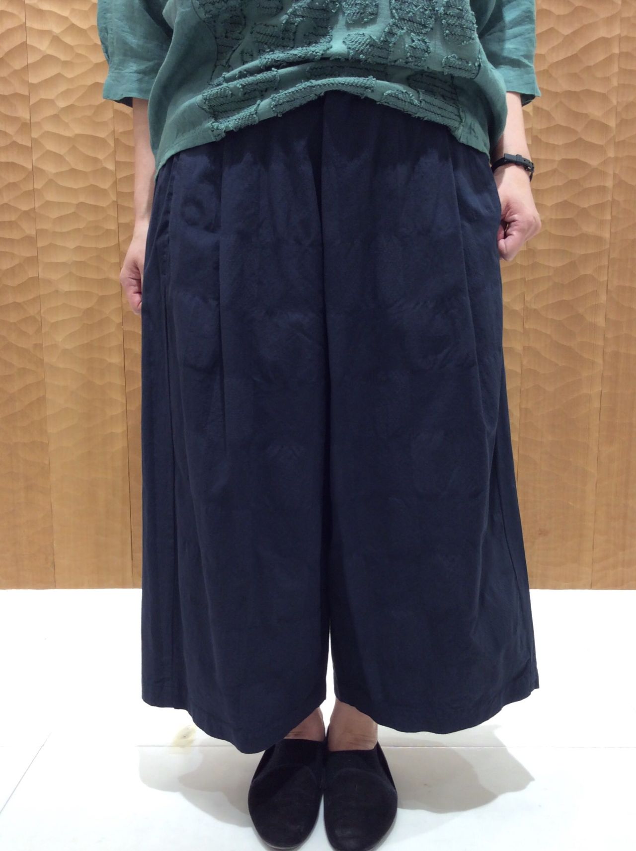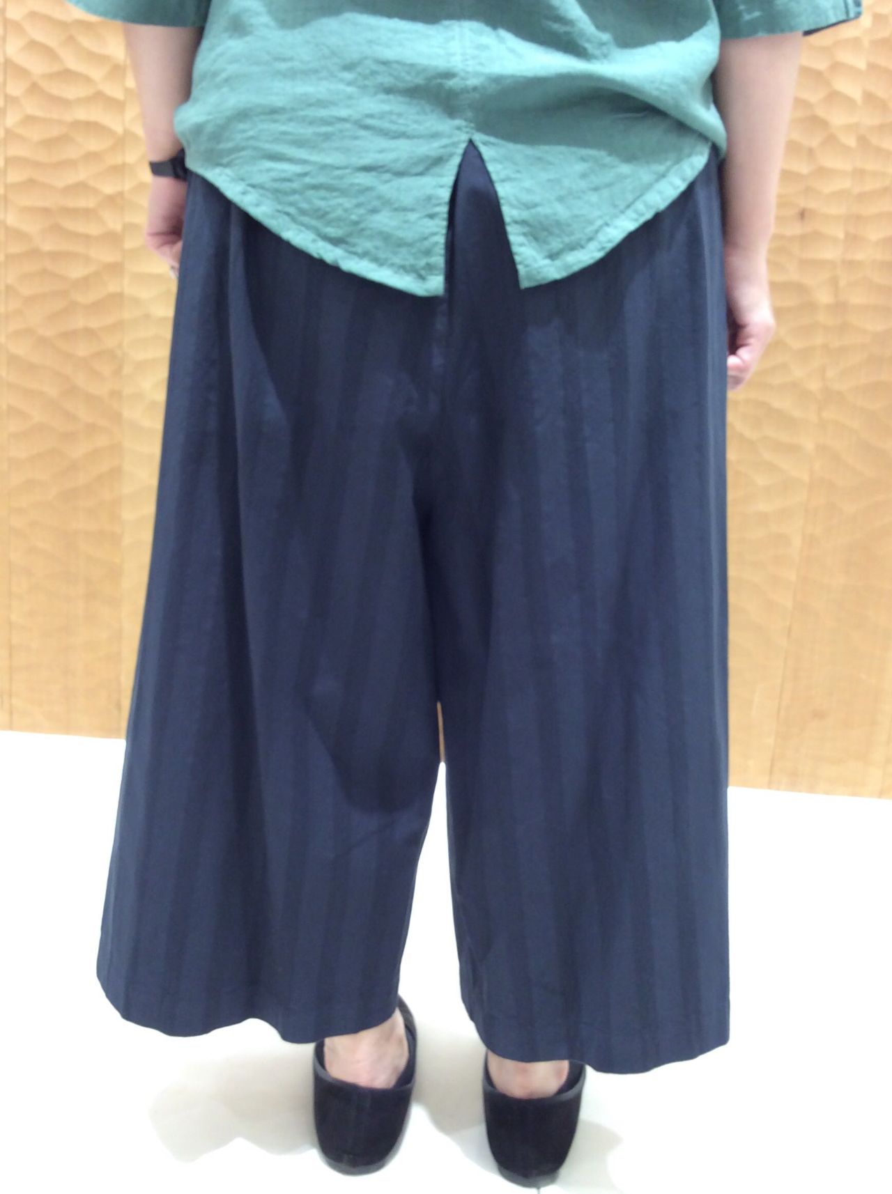 前のタックが特徴のガウチョパンツです。