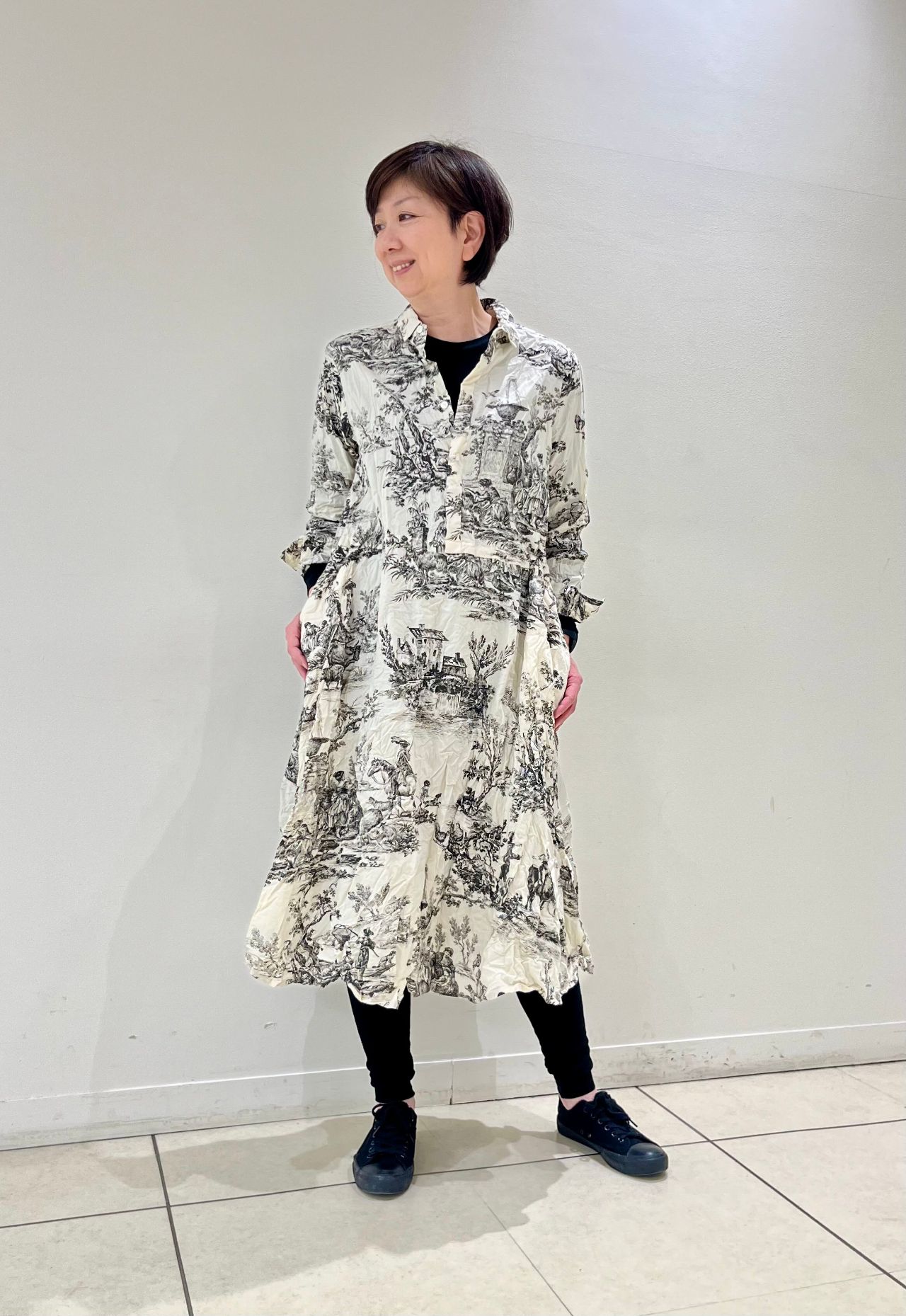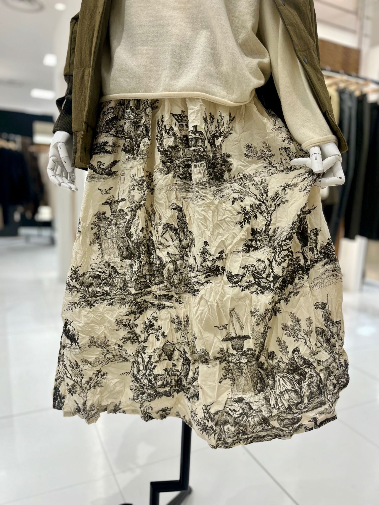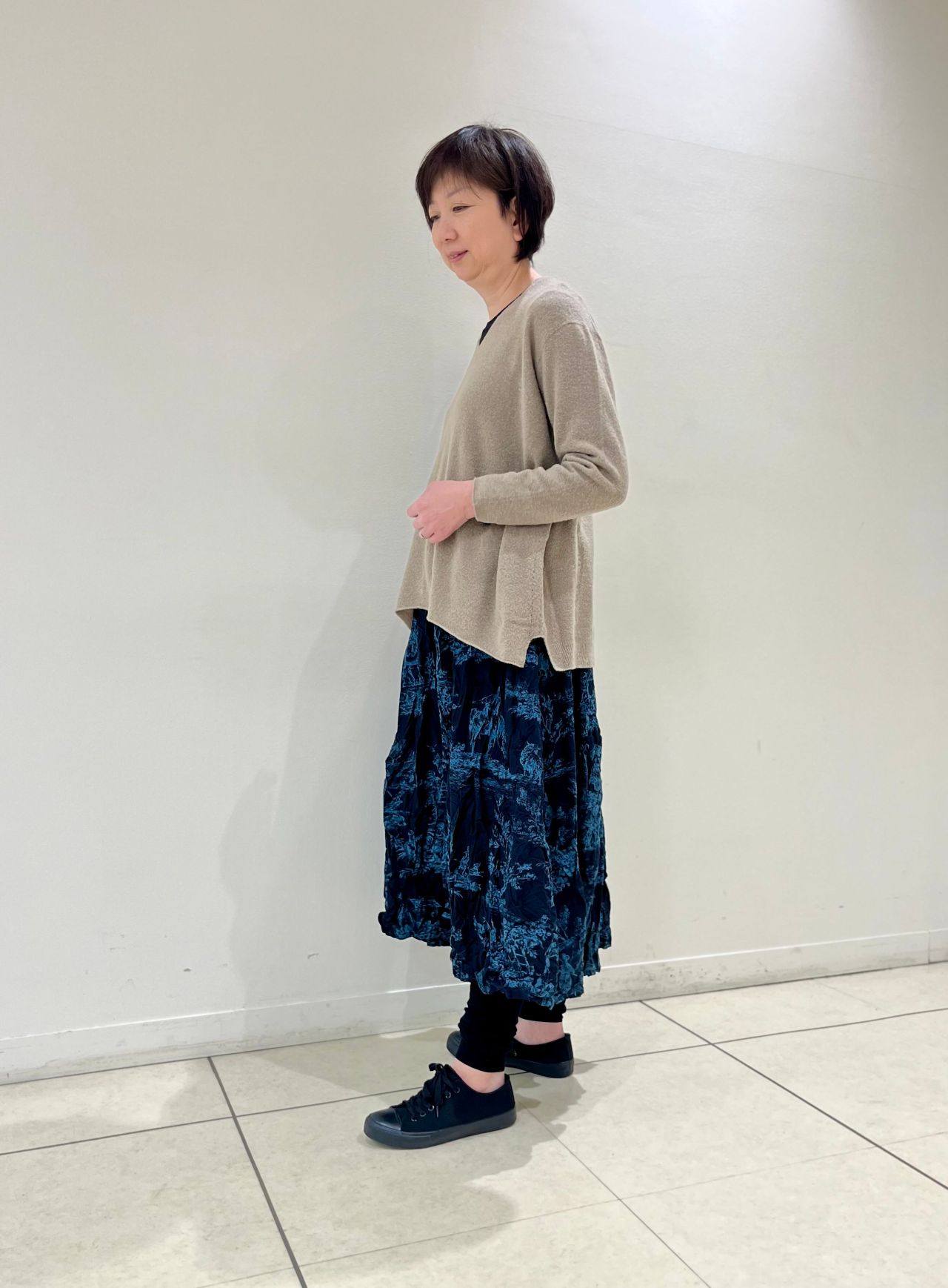 プリントの存在感がありますので、シンプルニットなどとコーディネートすると素敵です。