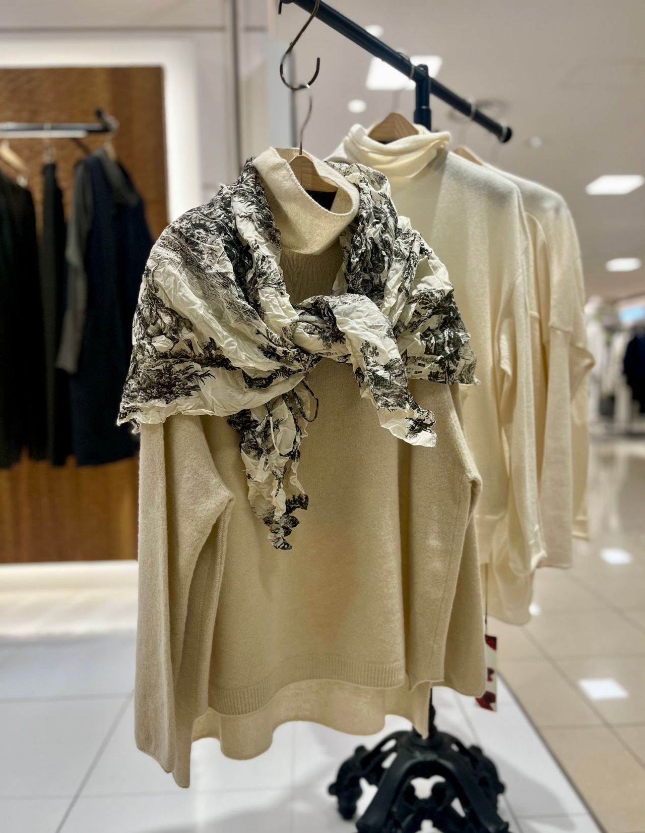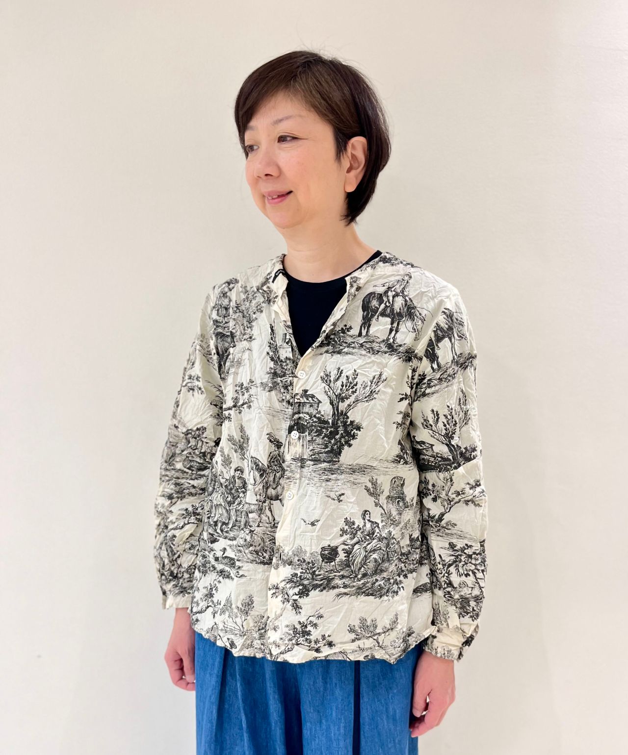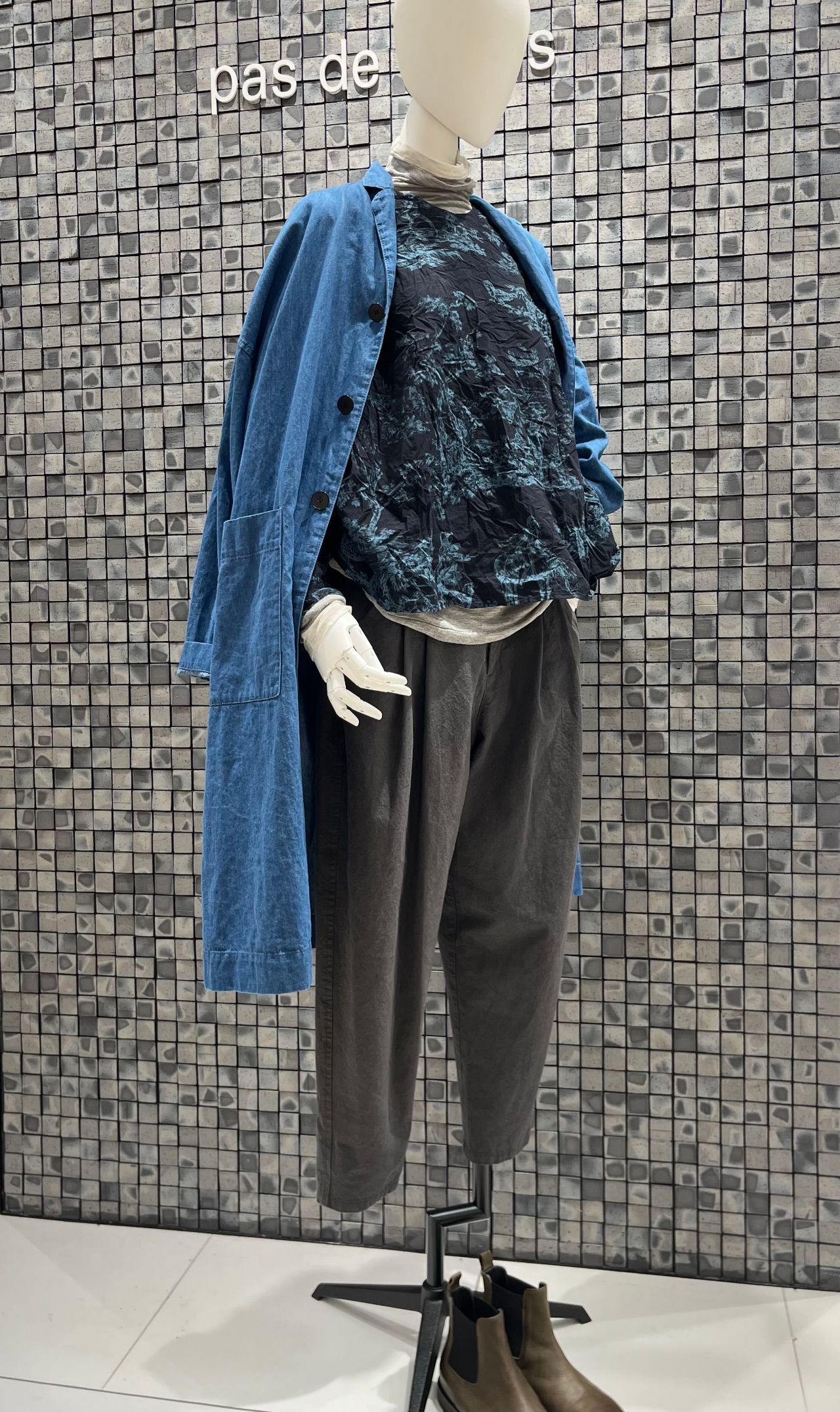 プリントの存在感がありますので、シンプルニットなどとコーディネートすると素敵です。