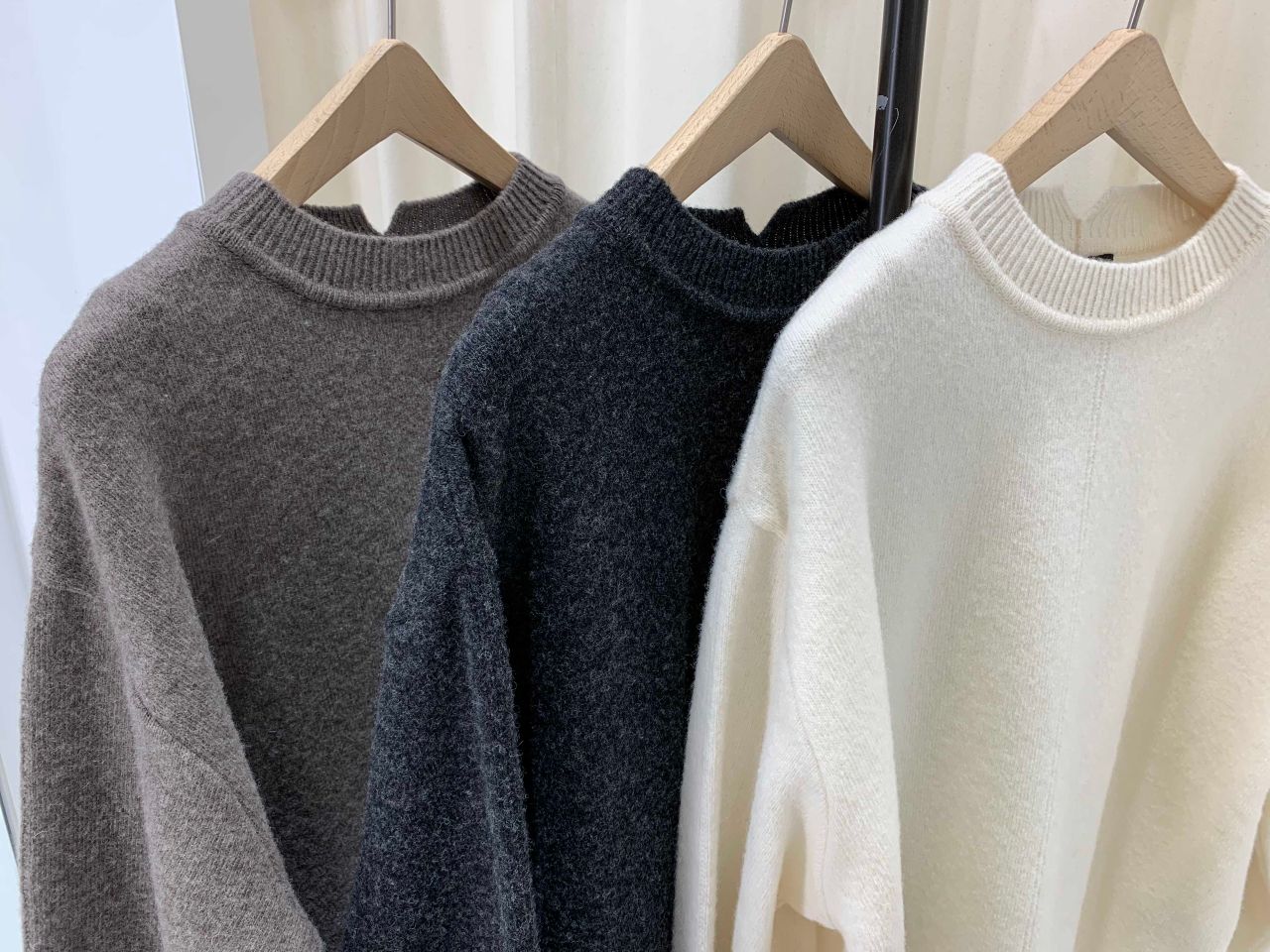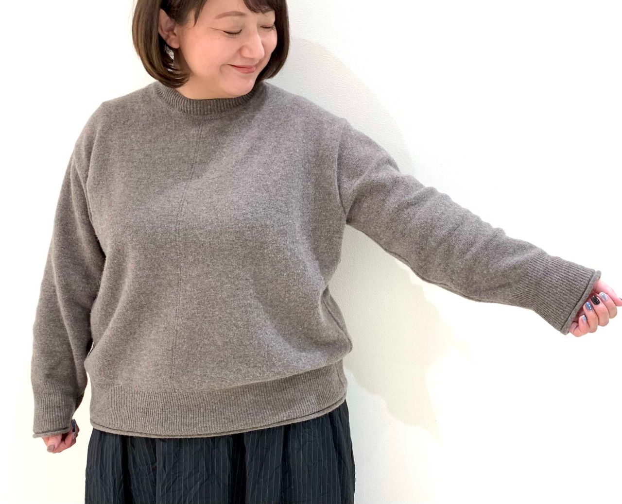 厚くも薄くもなく、アウターを羽織ってもごわつかずスッキリと着て頂けますし、透けないので重ね着の必要もなく、使い勝手のいい一枚です。