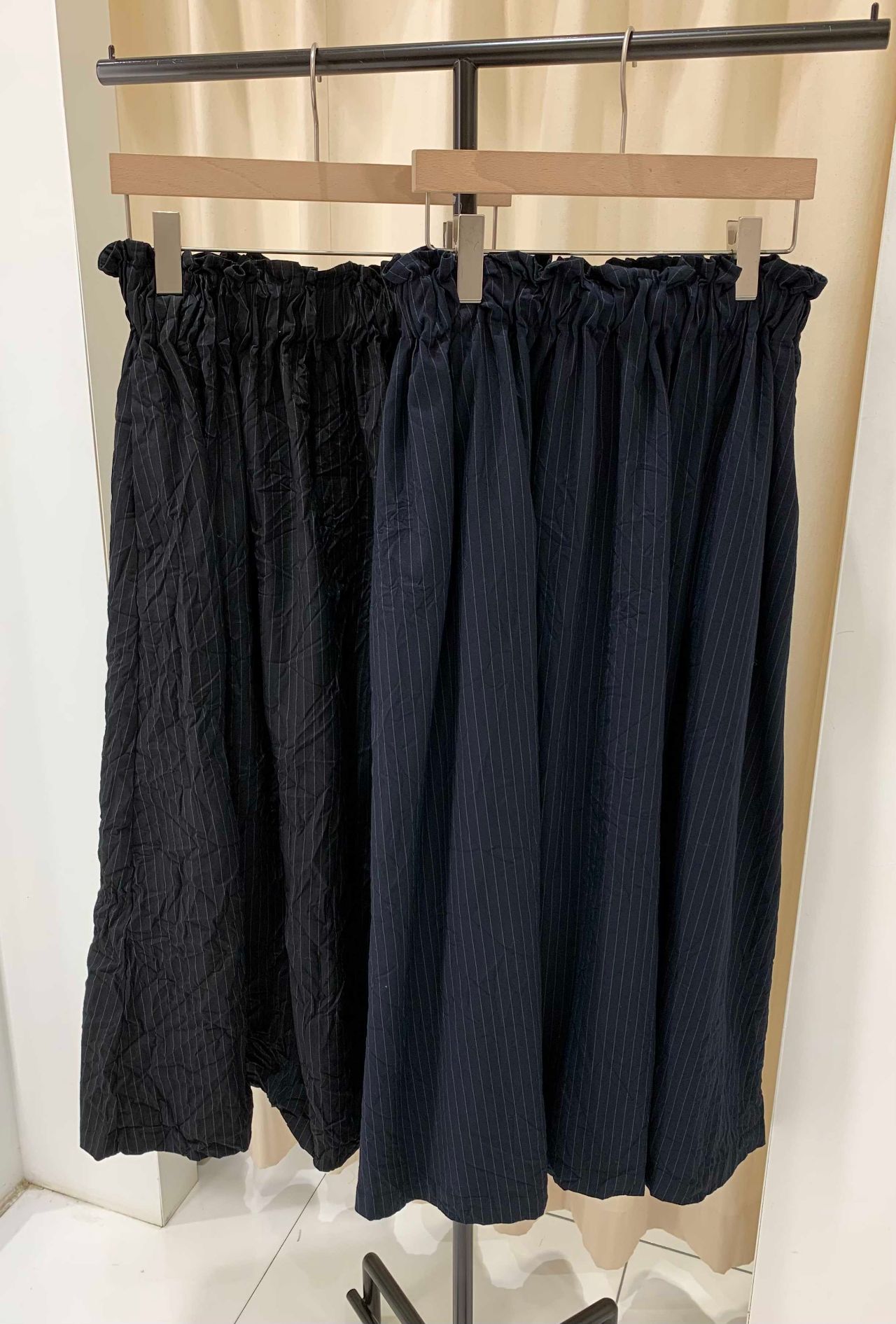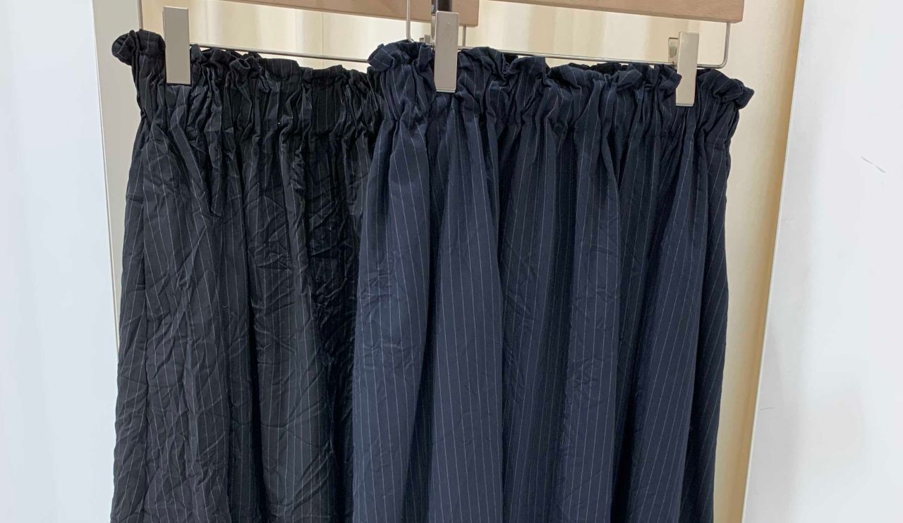 シワ加工でふんわりと程よいボリュームが出る、ロング丈のスカート。