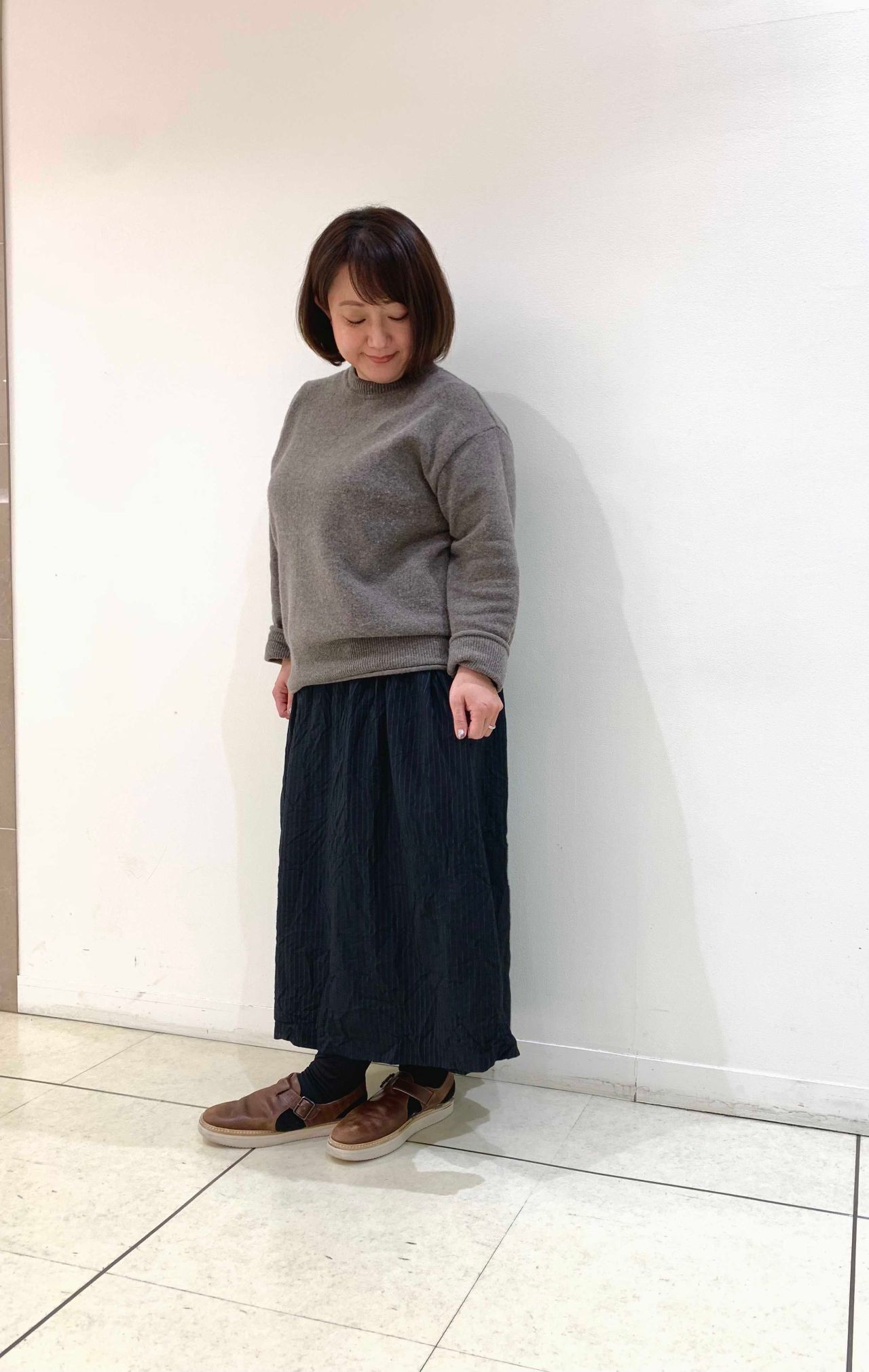 サイズ感は大きすぎず、小さくもなく、程よい大きさなので、スカートやパンツにも合わせやすいです。