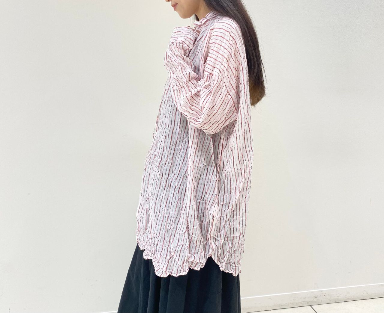 ゆったりシルエットのシャツブラウス。