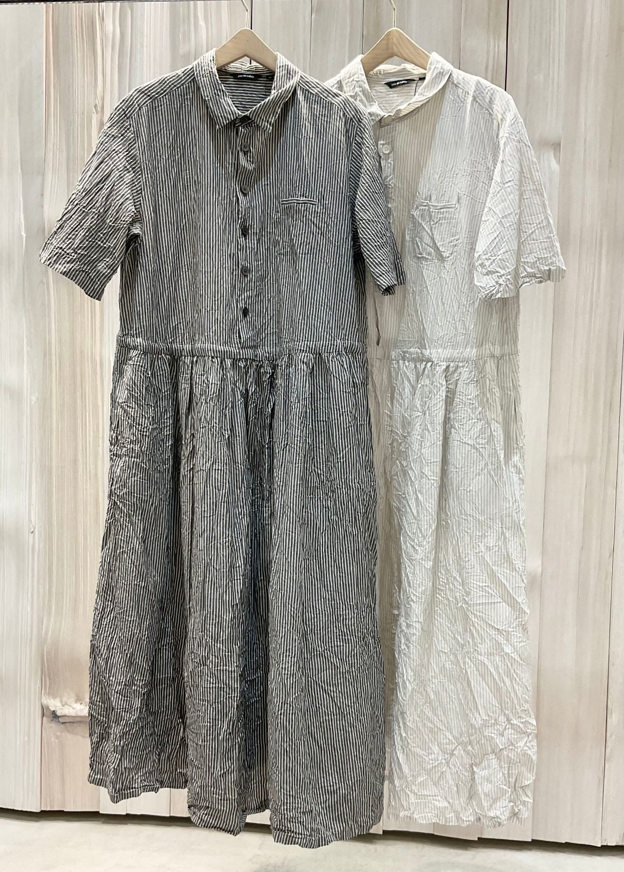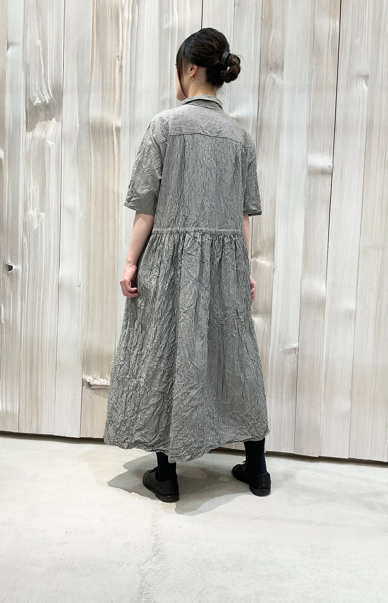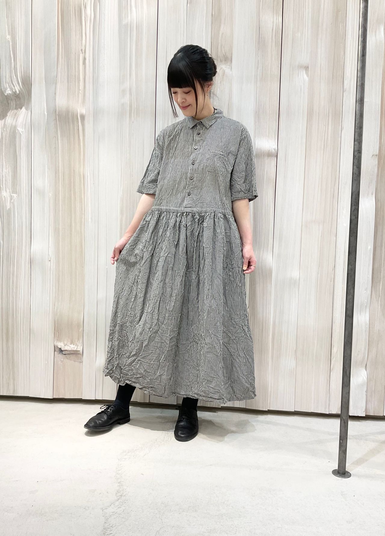 シャツカラーの半袖ドレスワンピースです。