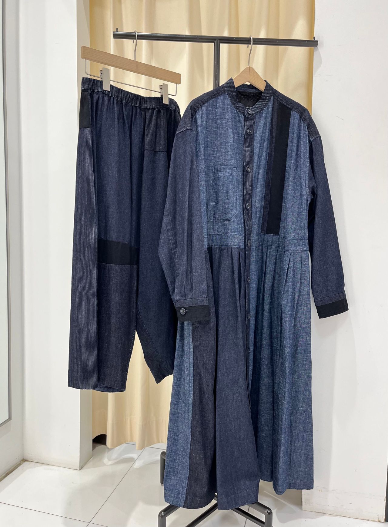本日はデニムパッチワークワンピースとパンツのご紹介致します。