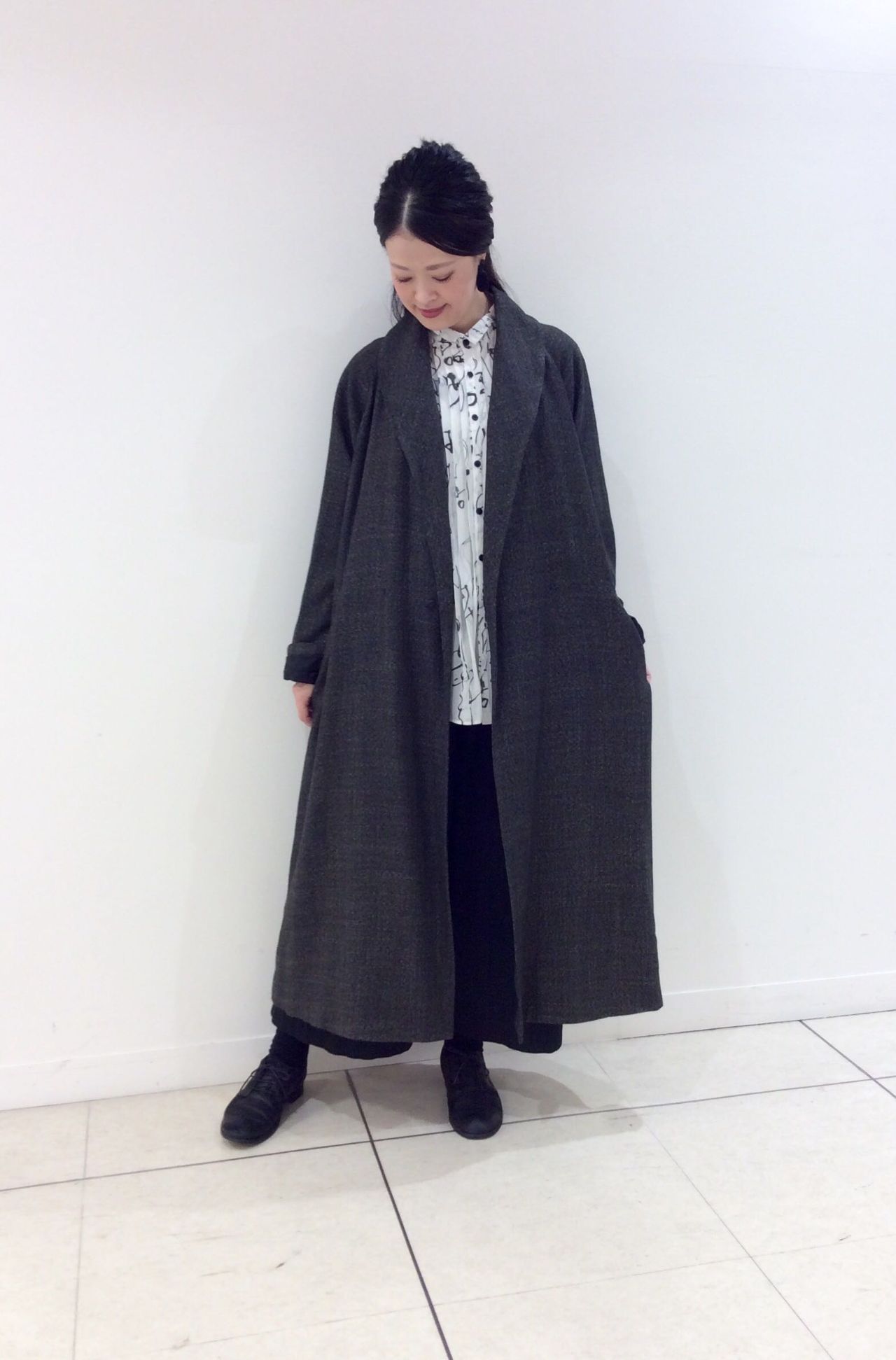 スラブツイート素材を使用した品良くサラリと羽織れるベルト付きコート。