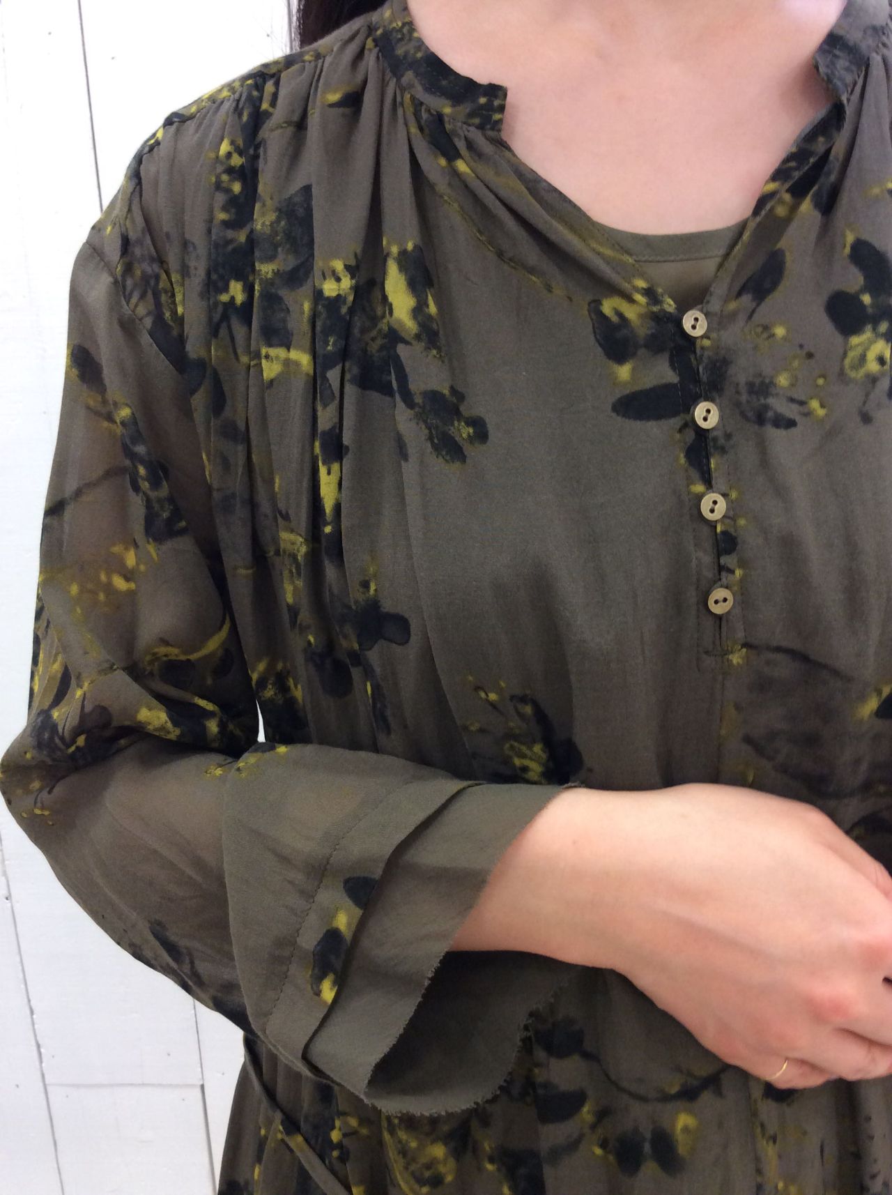 キュプラコットンボイルフラージュプリント ワンピース