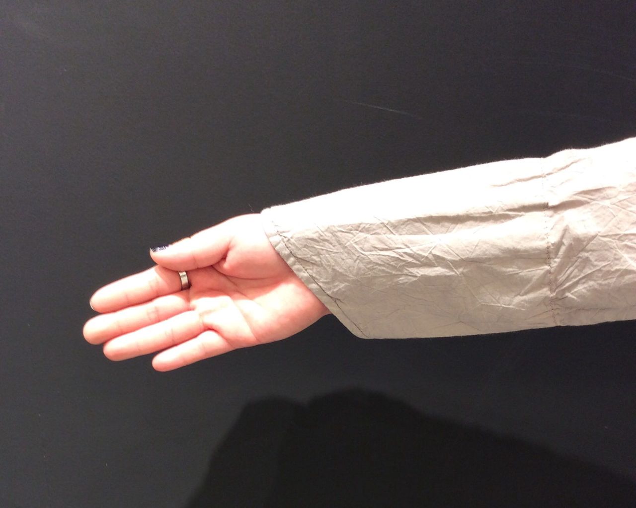 スクエアーの布による、程良いドレープ感があるシルエットです。