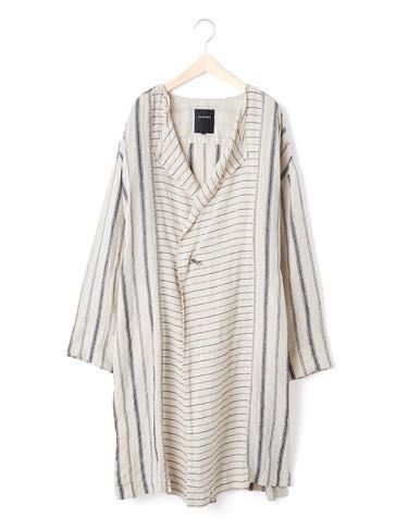 1/60フレンチリネンを原料に使用したストライプ素材。2つのストライプを組み合わせて柄の違いを際立たせた。