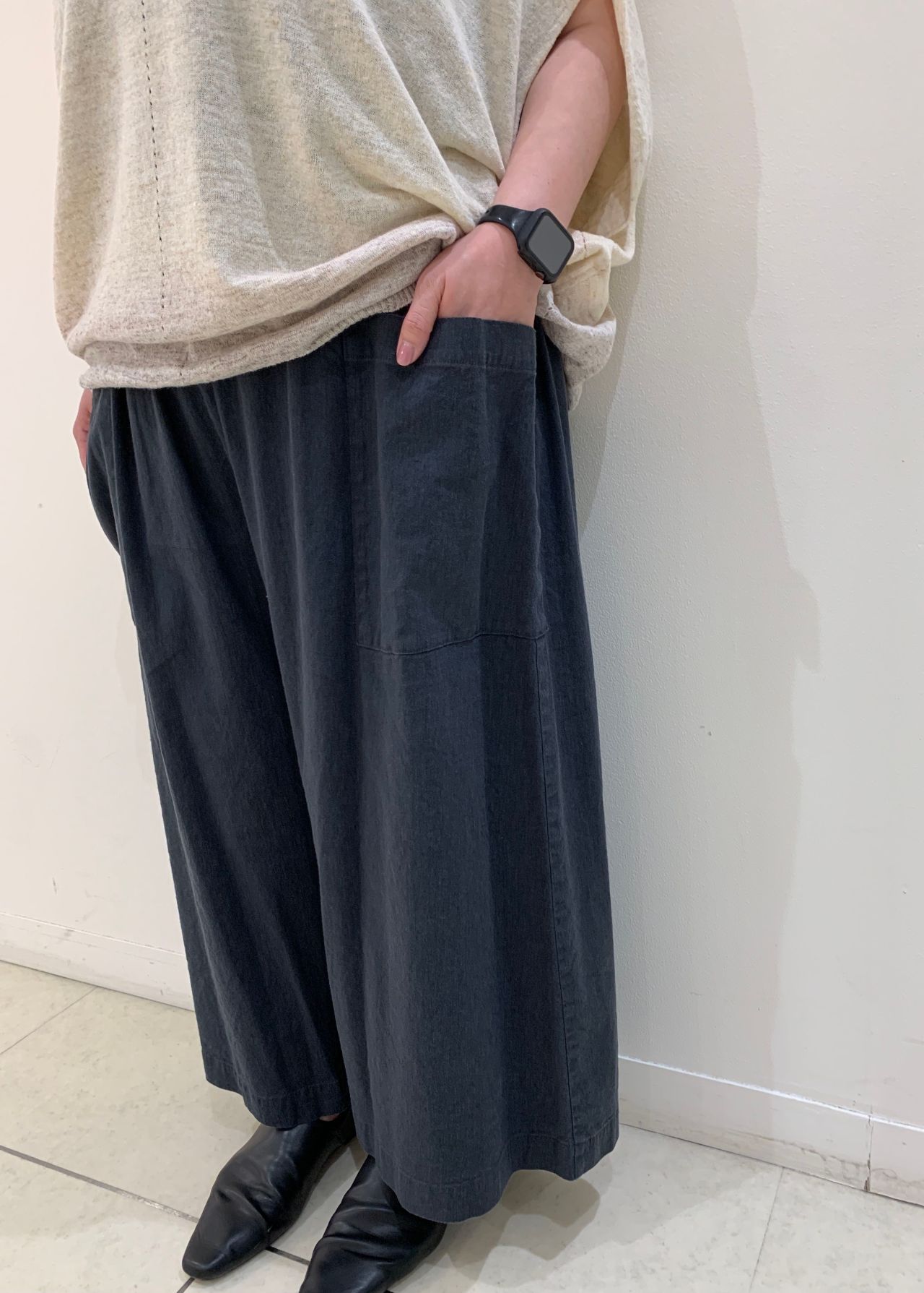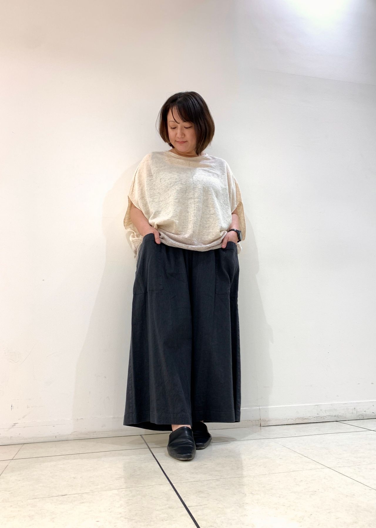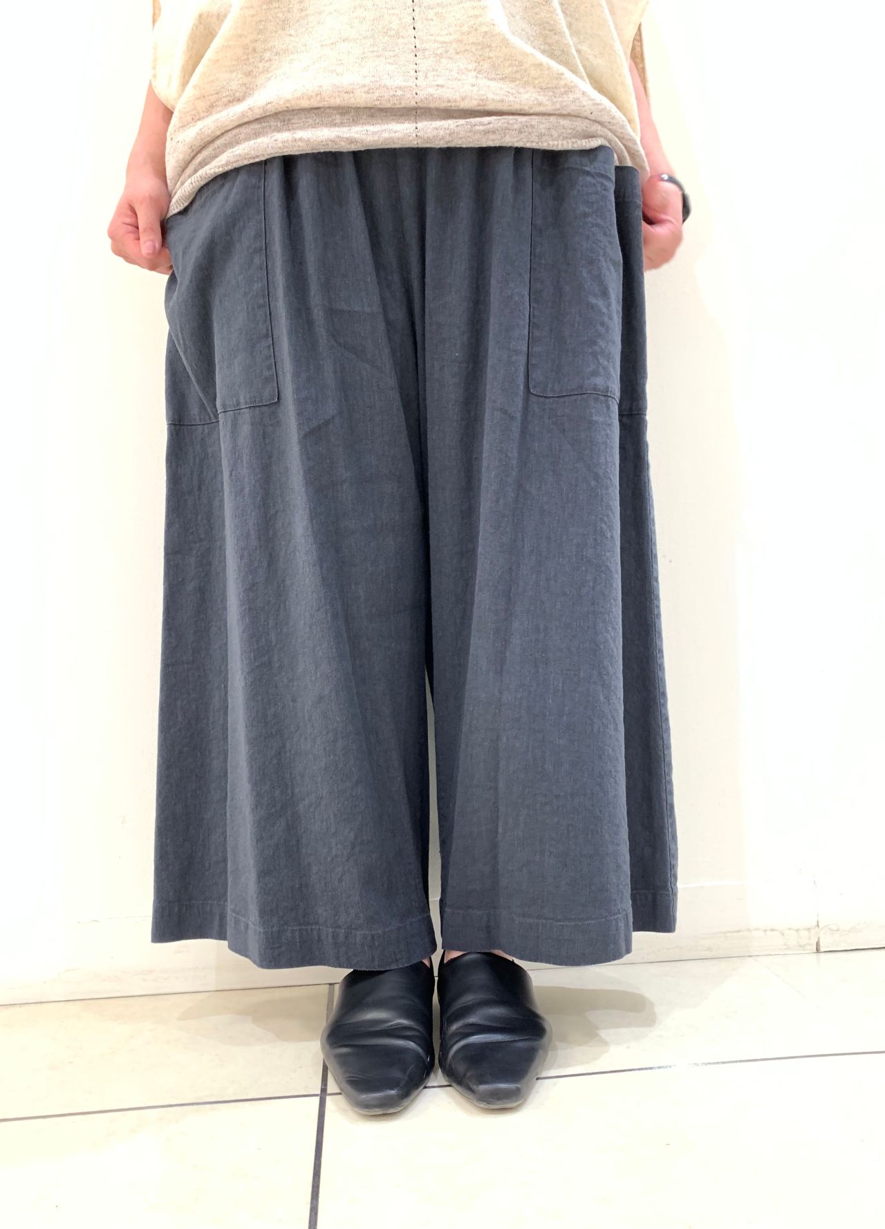麻のサラサラ感とレーヨンのつるっと感がうまく融合された、履き心地ばつぐんのルーミーパンツです。