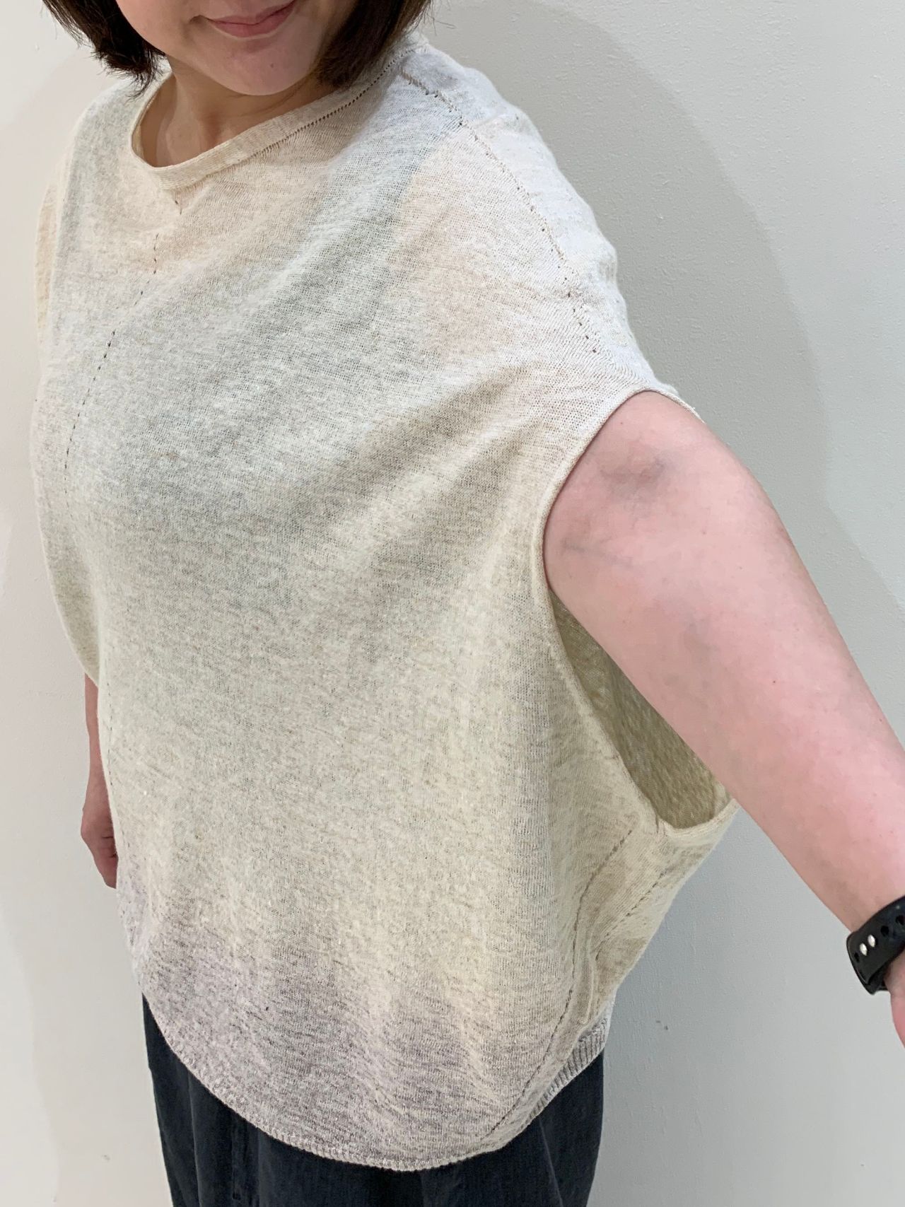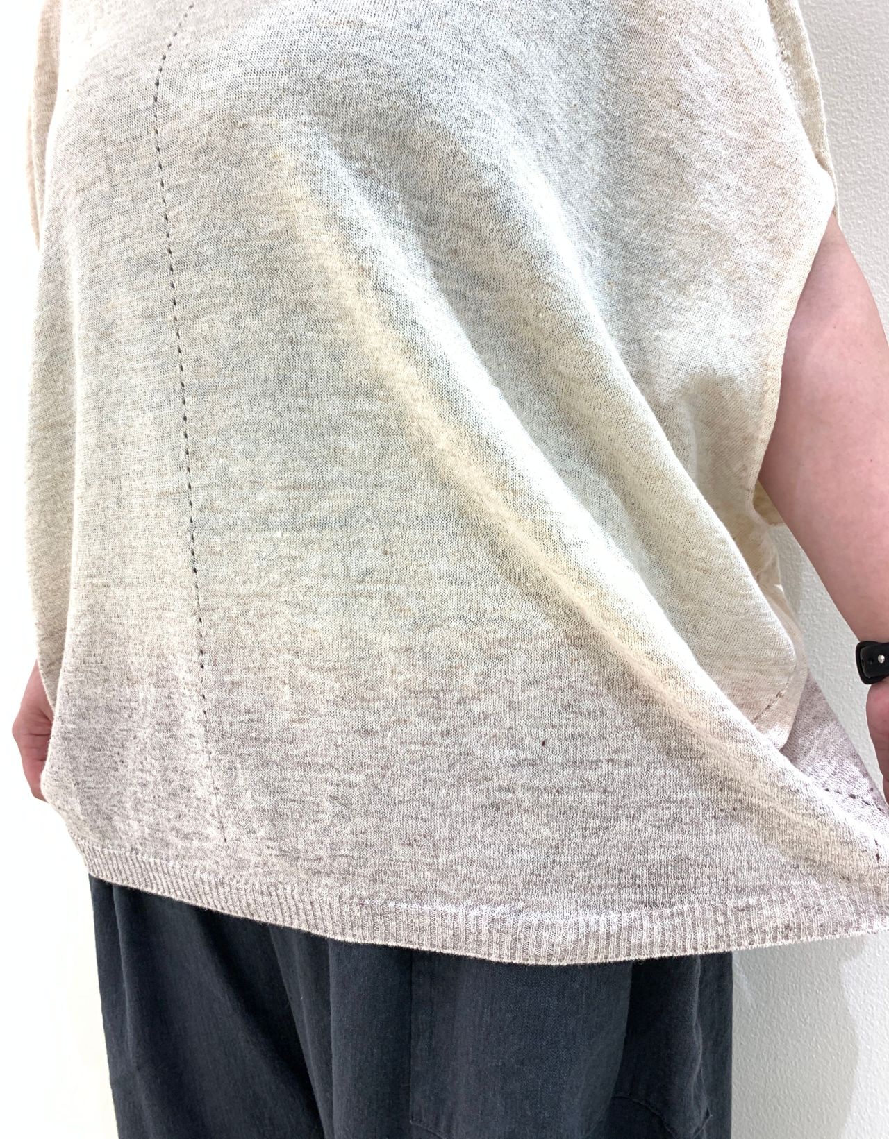 サラッと軽い質感で、夏にぴったりのニットです。