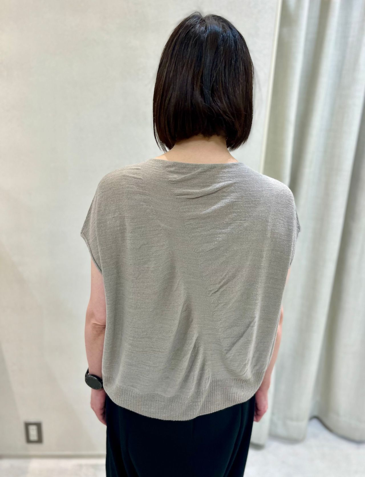 前・後どちらでも着こなせる2WAYタイプで、下のカーディガンとアンサンプルとしてもお勧めです。