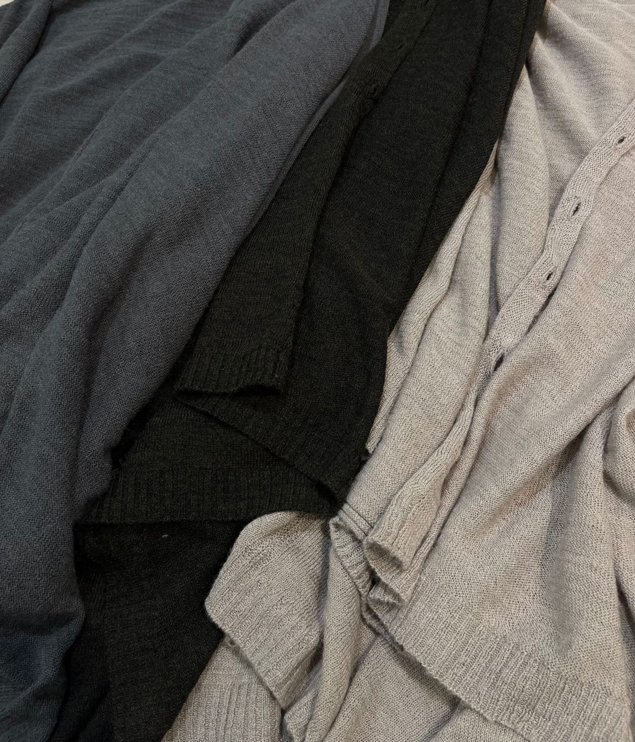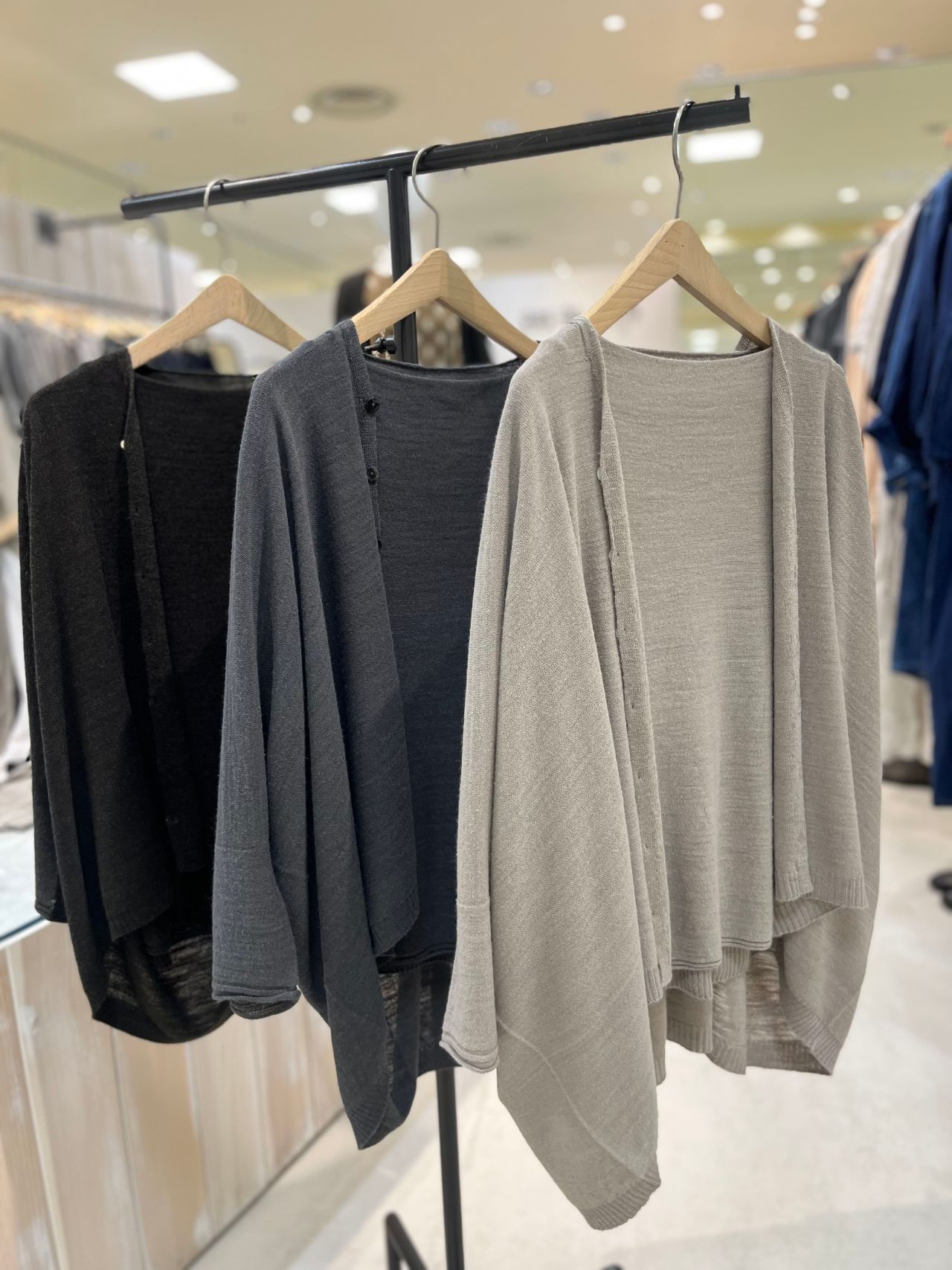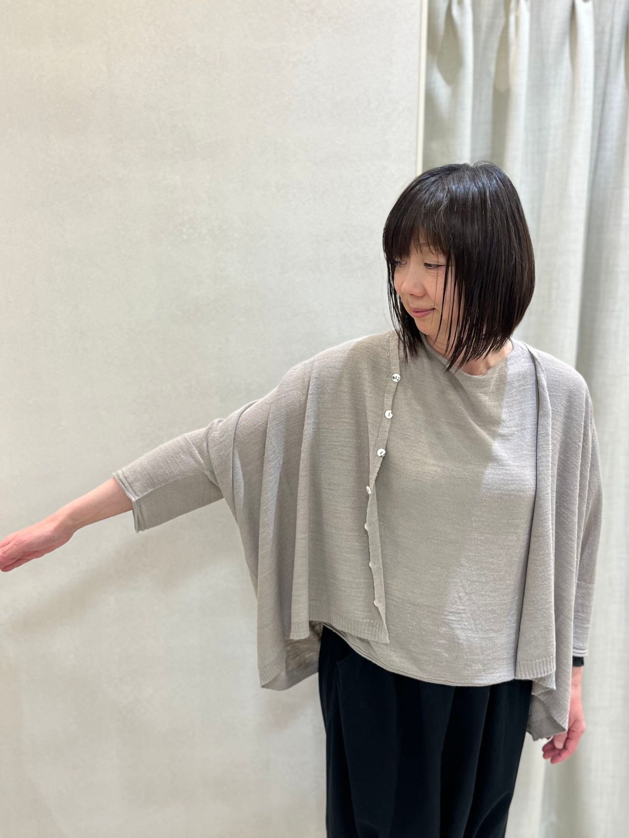 たっぷりとした分量感と、とろみのある素材です。美しいドレープが生まれるスクエア型カーディガンです。