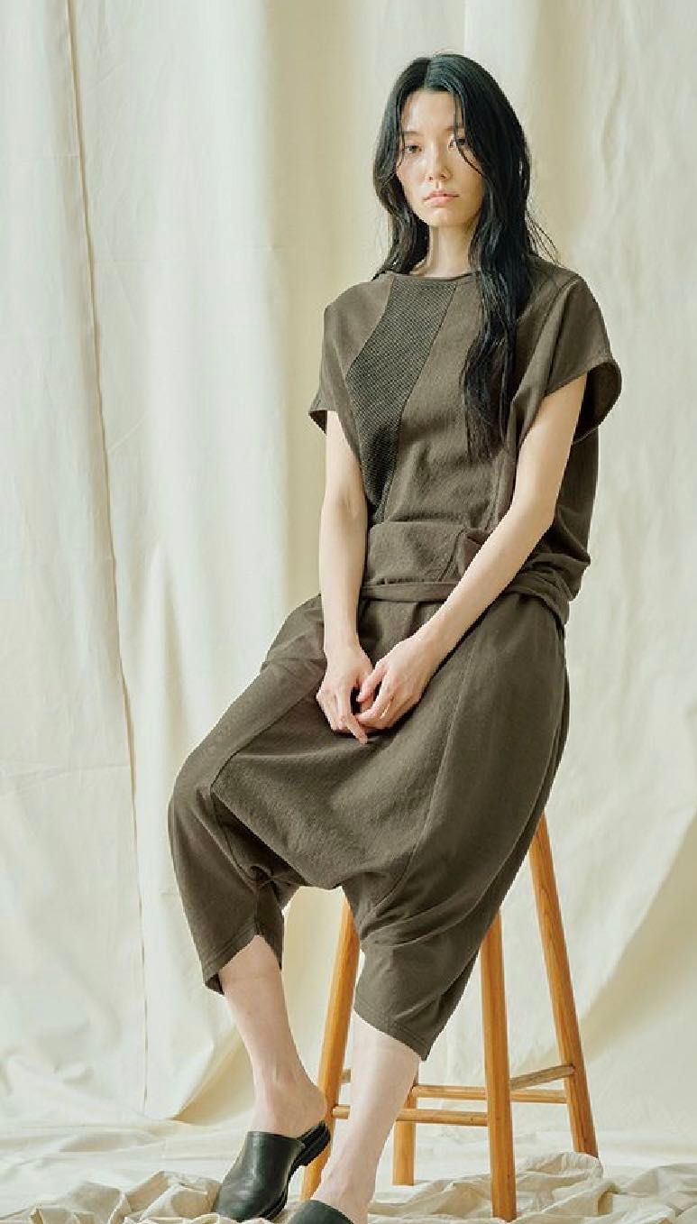 コットン天竺&和紙混先染めヨーリューのサルエル・パンツです。