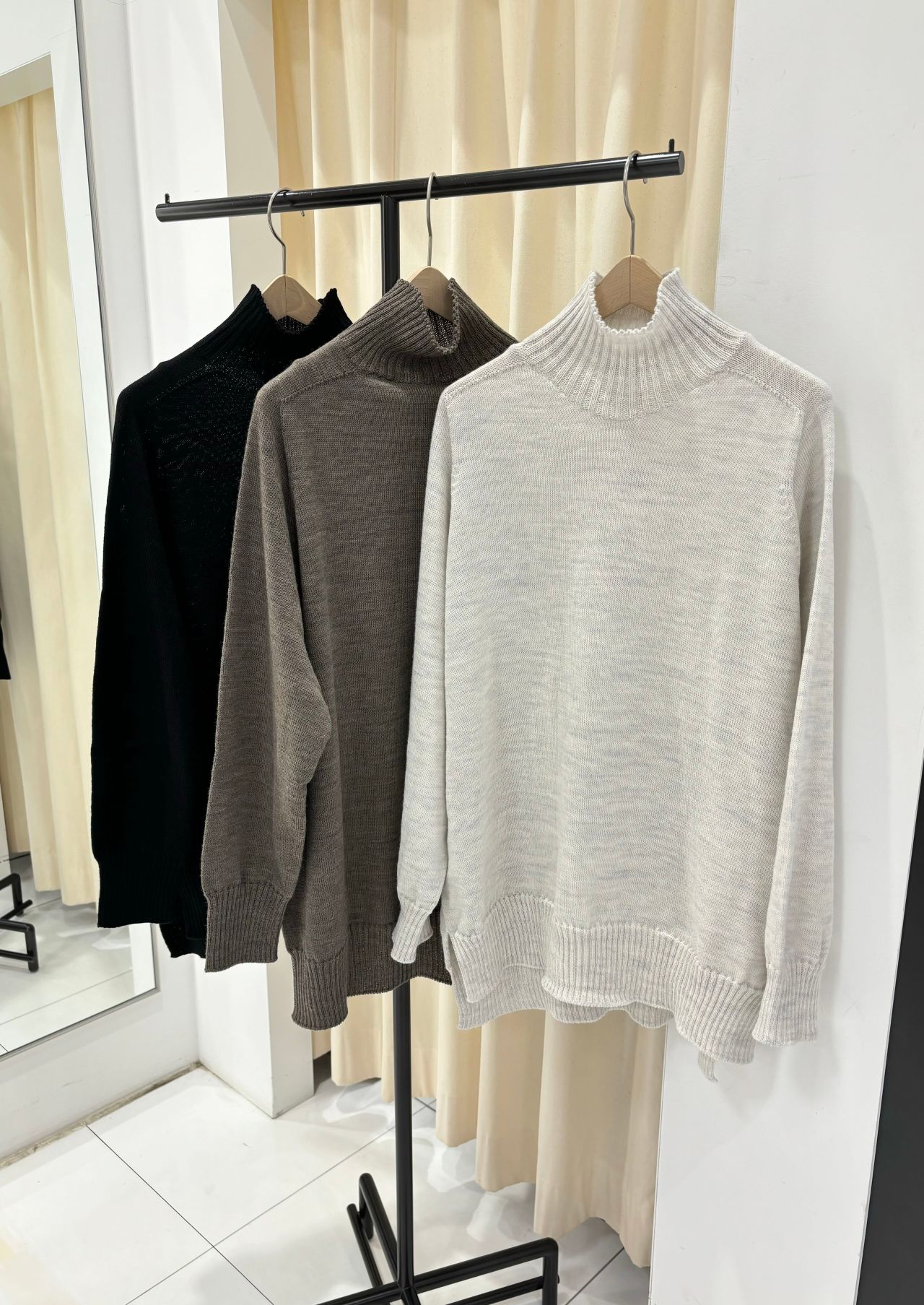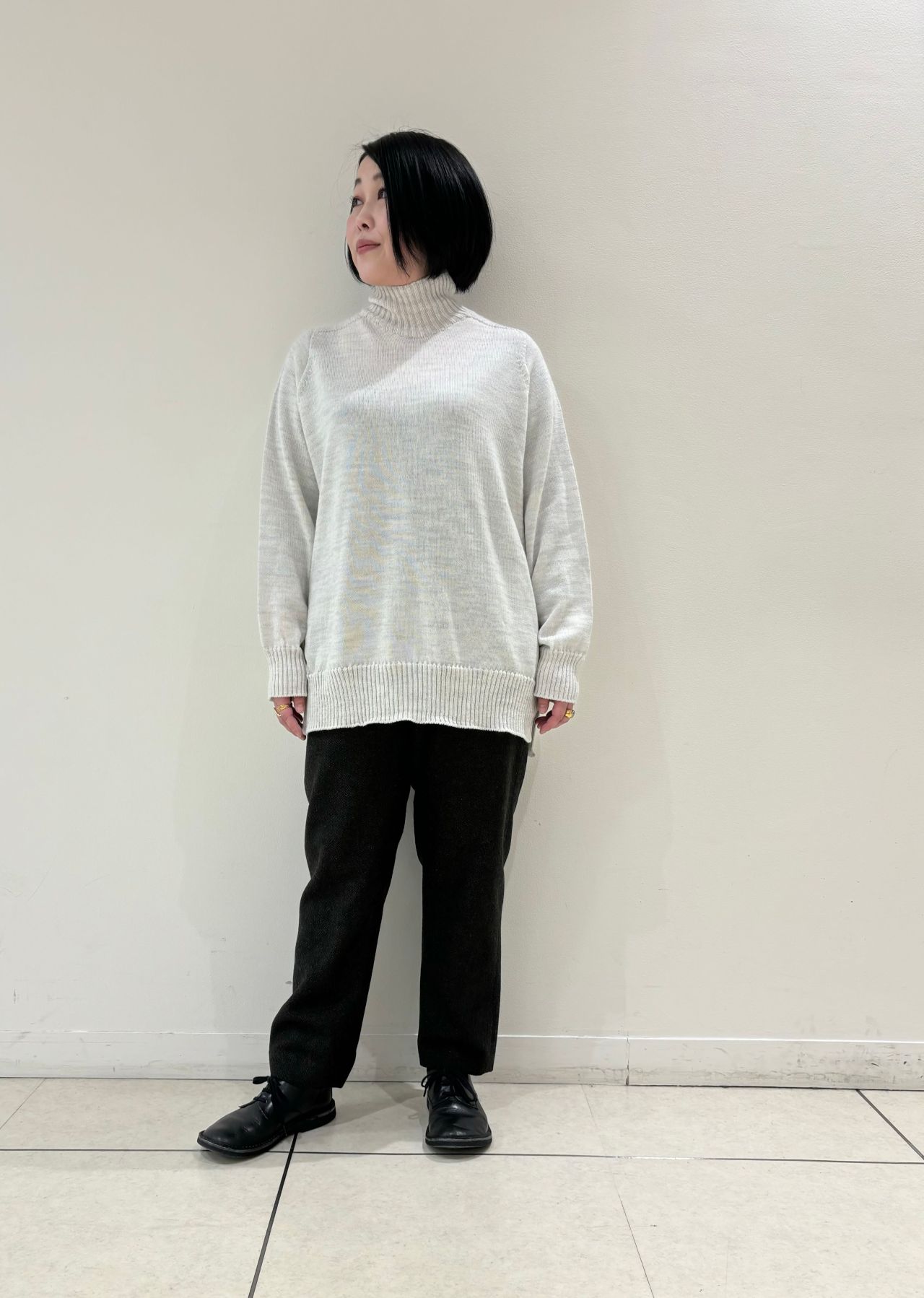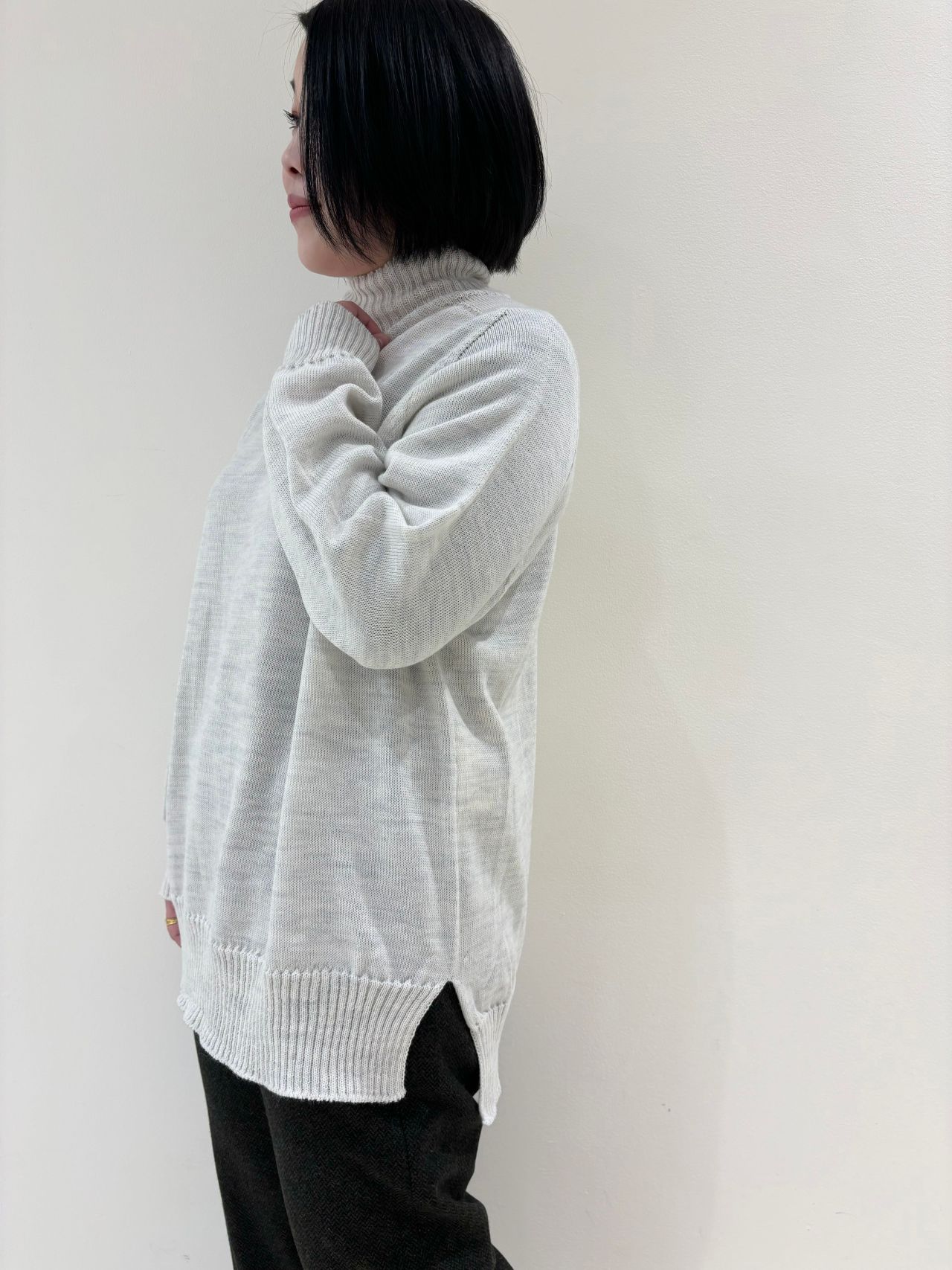 毛羽立ちの少ないメリノウールは、リブハイネックでもゴロつかず、コート・インにも最適。