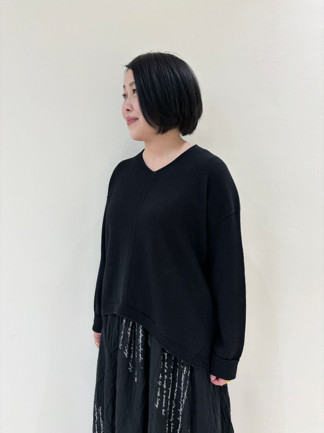 ヘムラインが特徴的な、VP/O。ゆったりした身幅で、シャツ合わせにも◎。