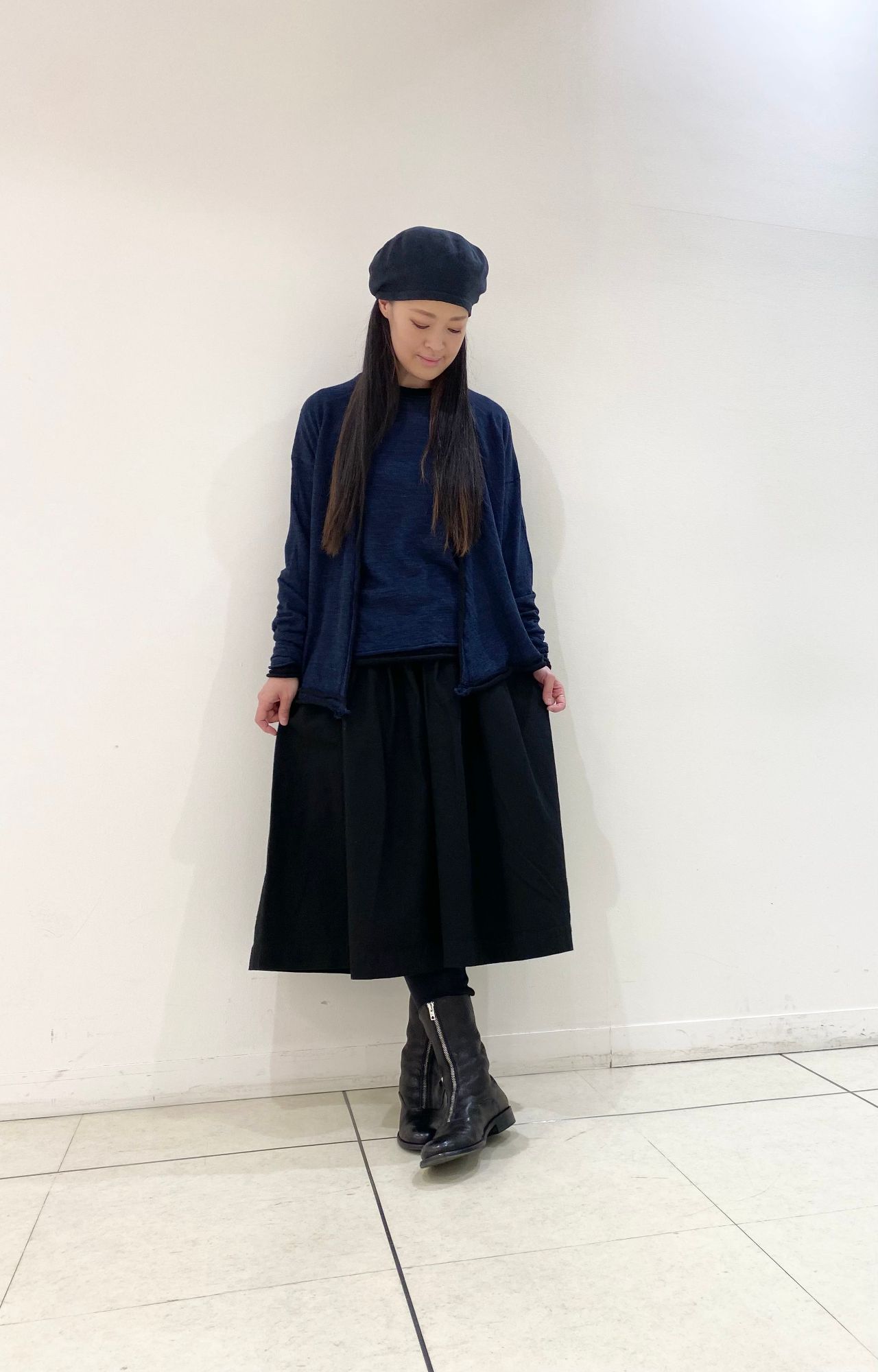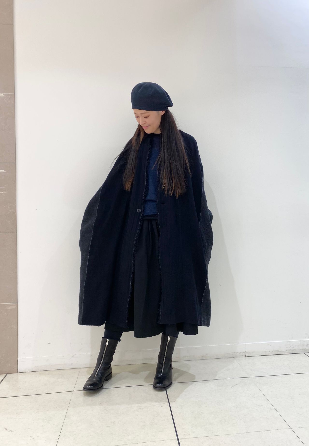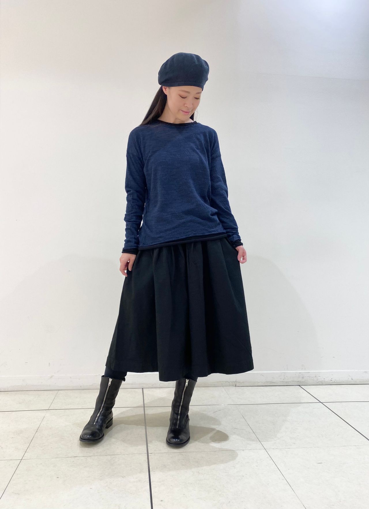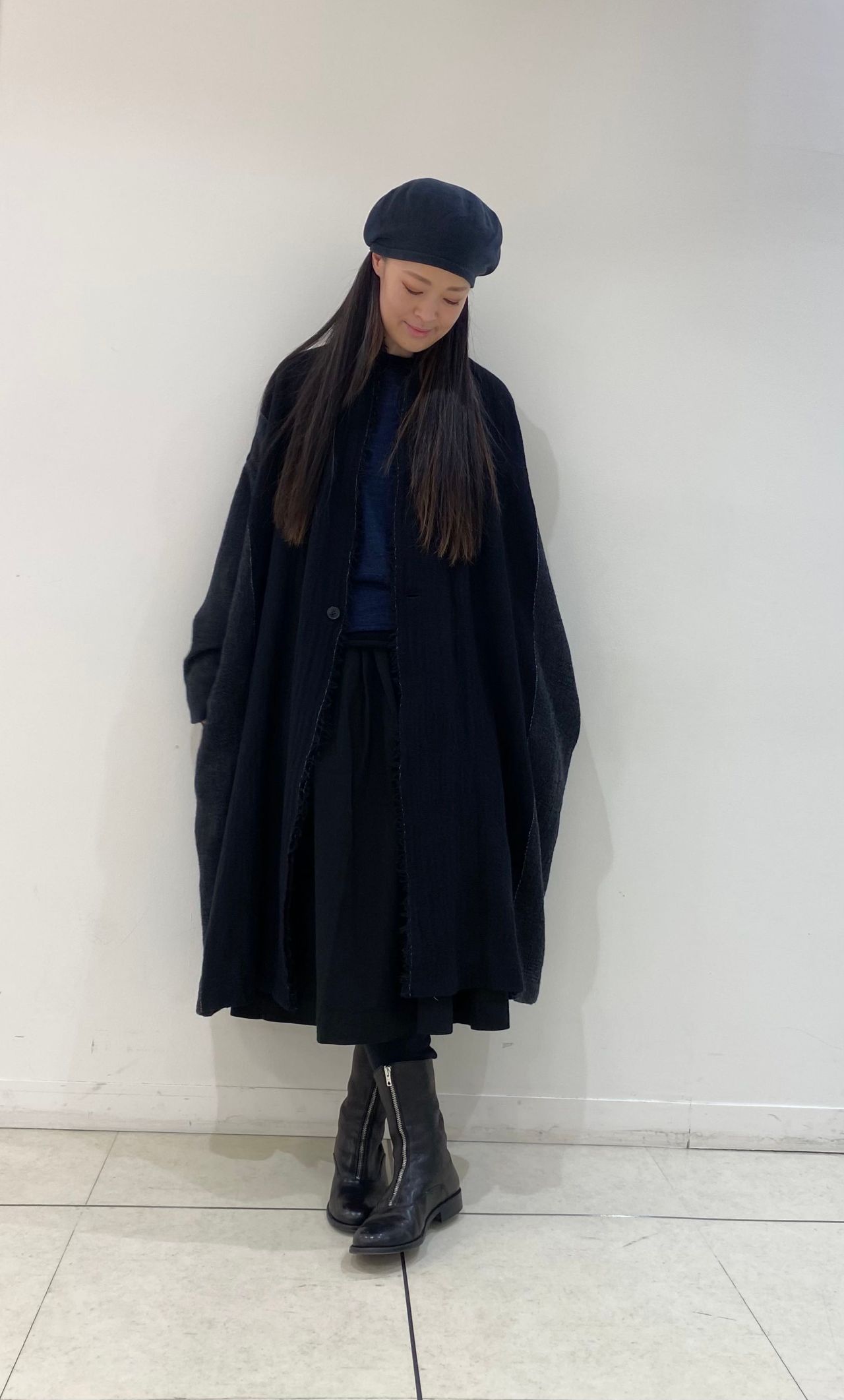 薄手のウール素材は柔らかく重ね着もしやすい素材感になります。