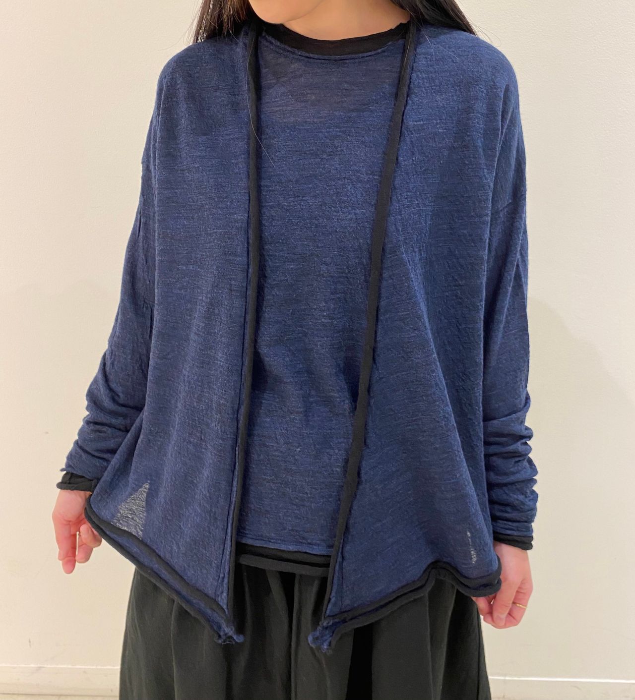 カシュクールにもカーディガンにもできるウールガーゼの羽織りです。