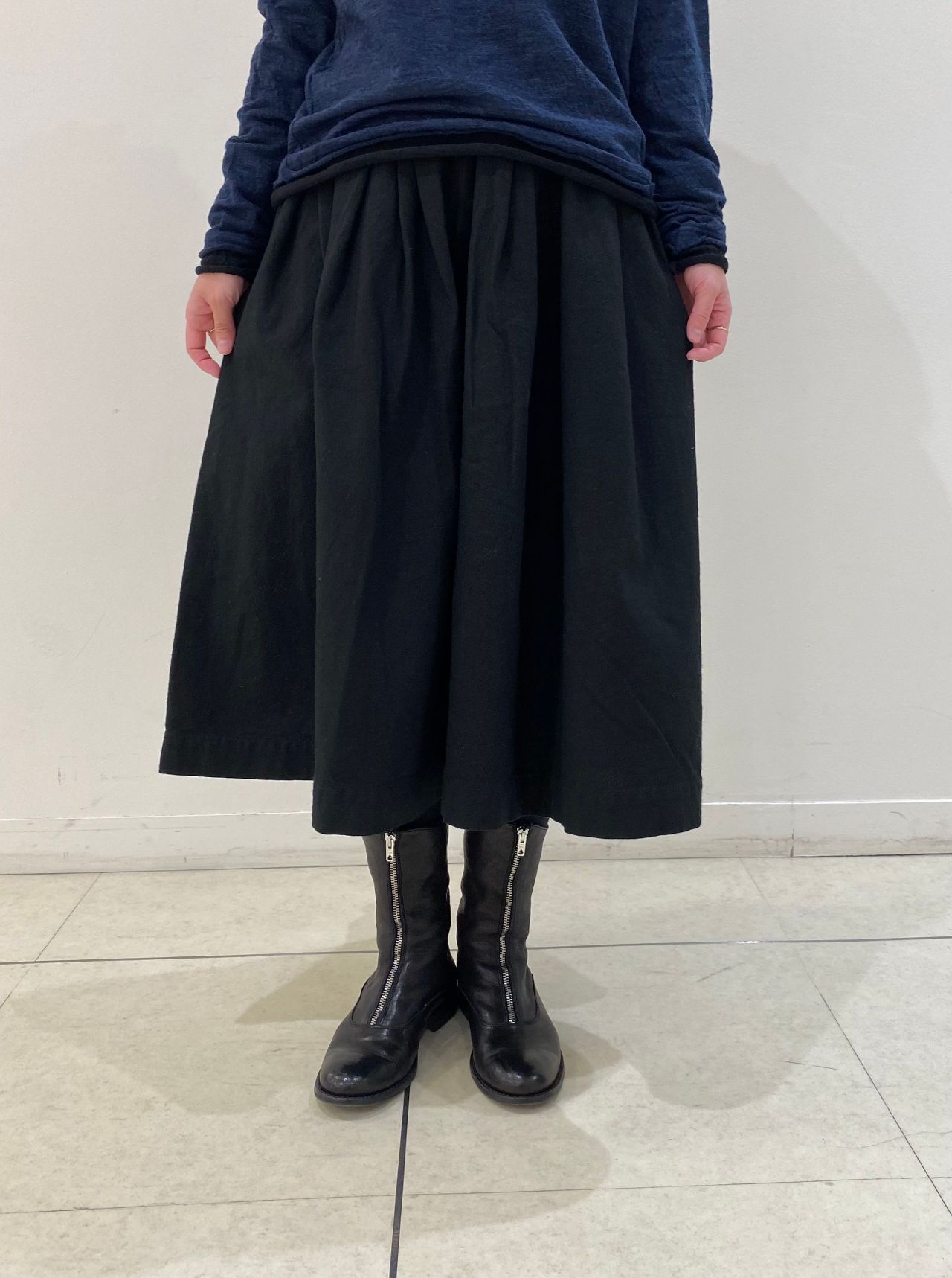 ボリューム感あるインバーテッドタックスカートです。