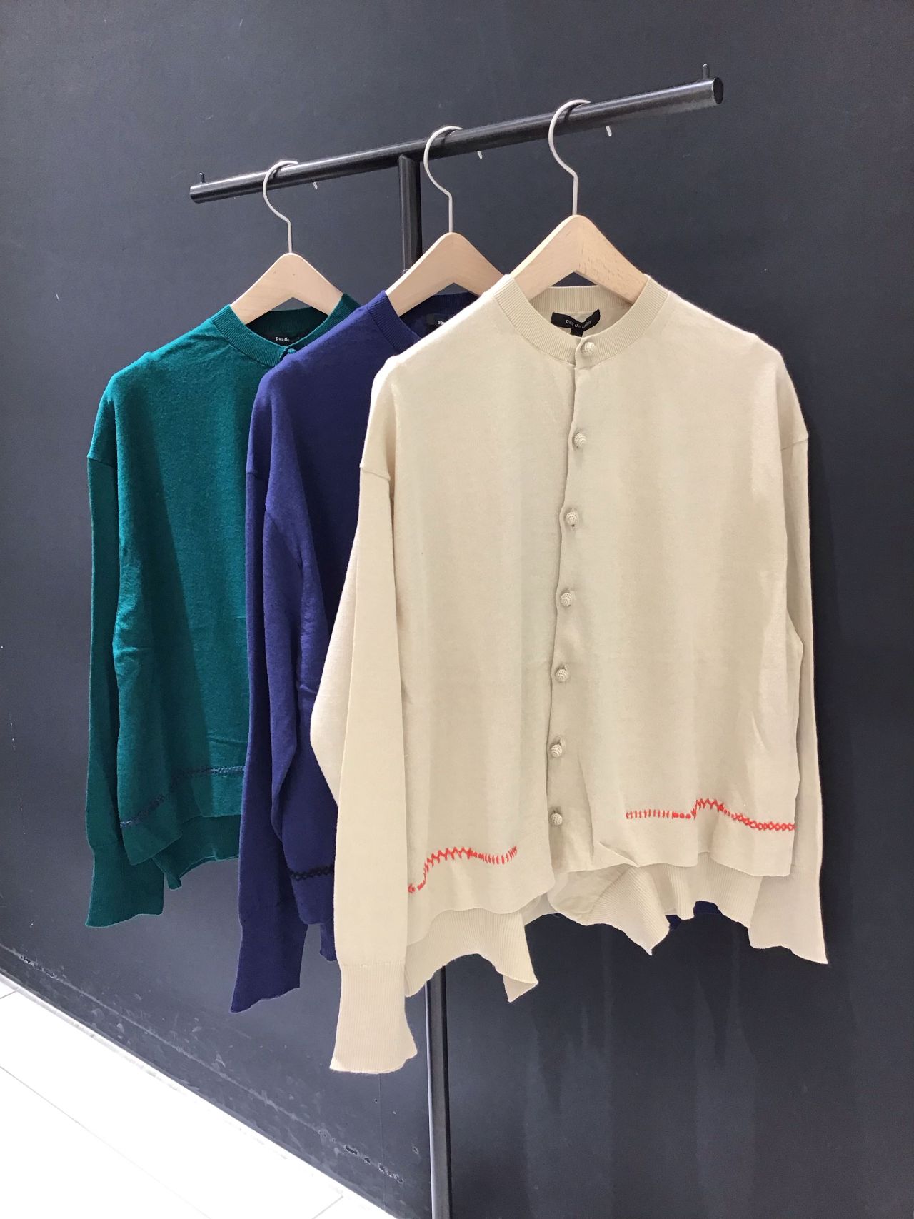 タック&ハンドステッチクルーカーディガン