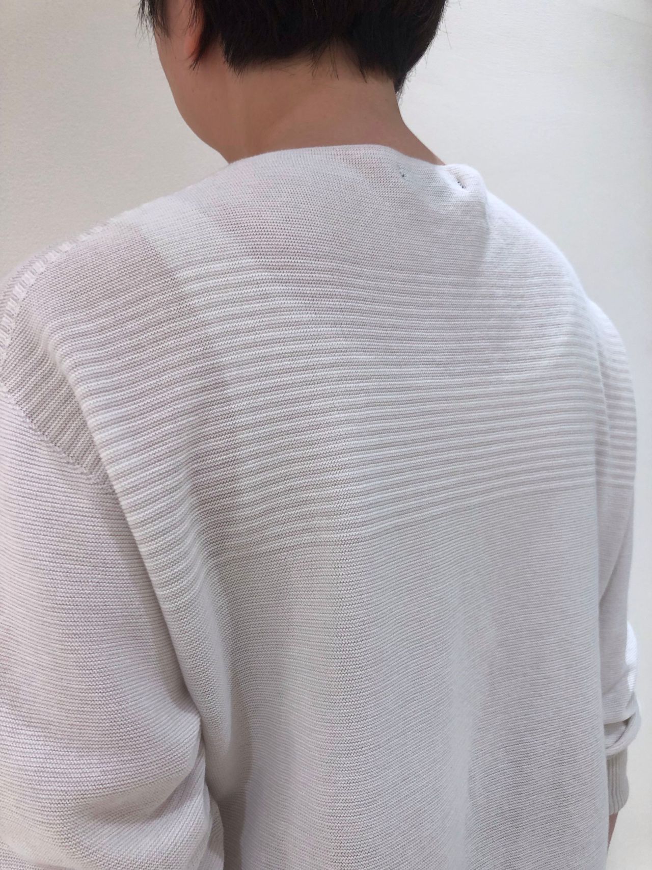 後ろ身頃をボーダーに切り替えたガーター編みです。