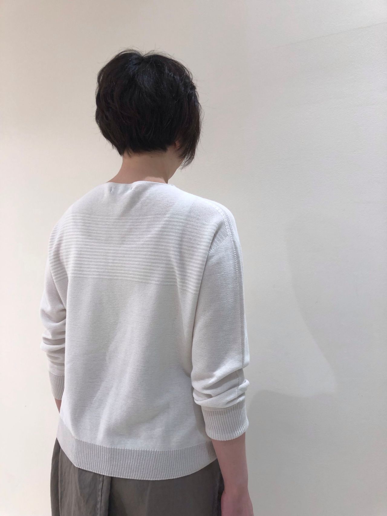 オールガーメントなので切り替え部分も編み続きでストレスフリーな着心地。