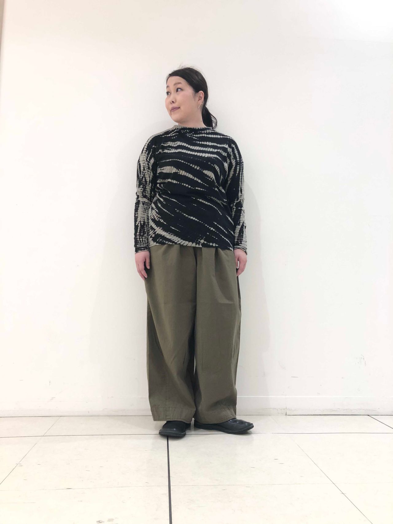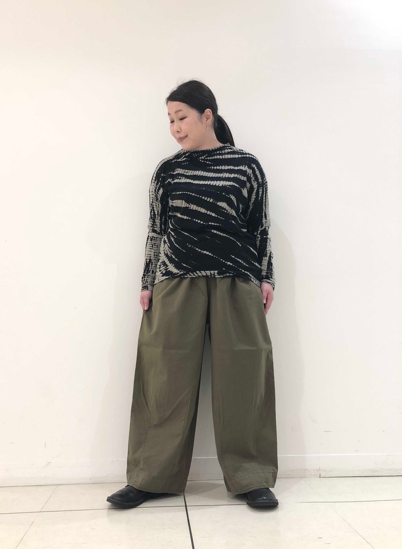 ゆったりとした身巾感、腰に引っかかるシルエットに仕上げております。