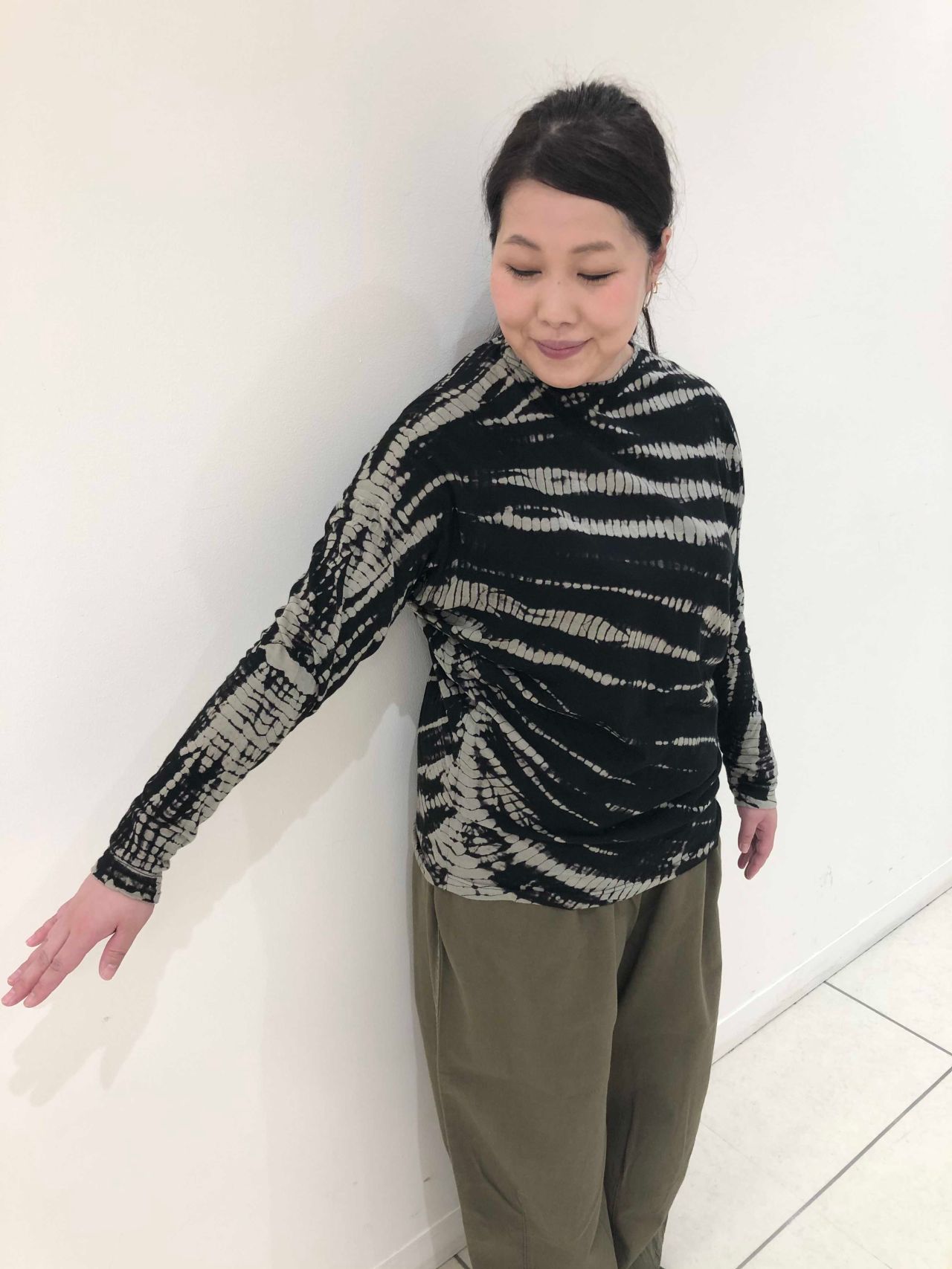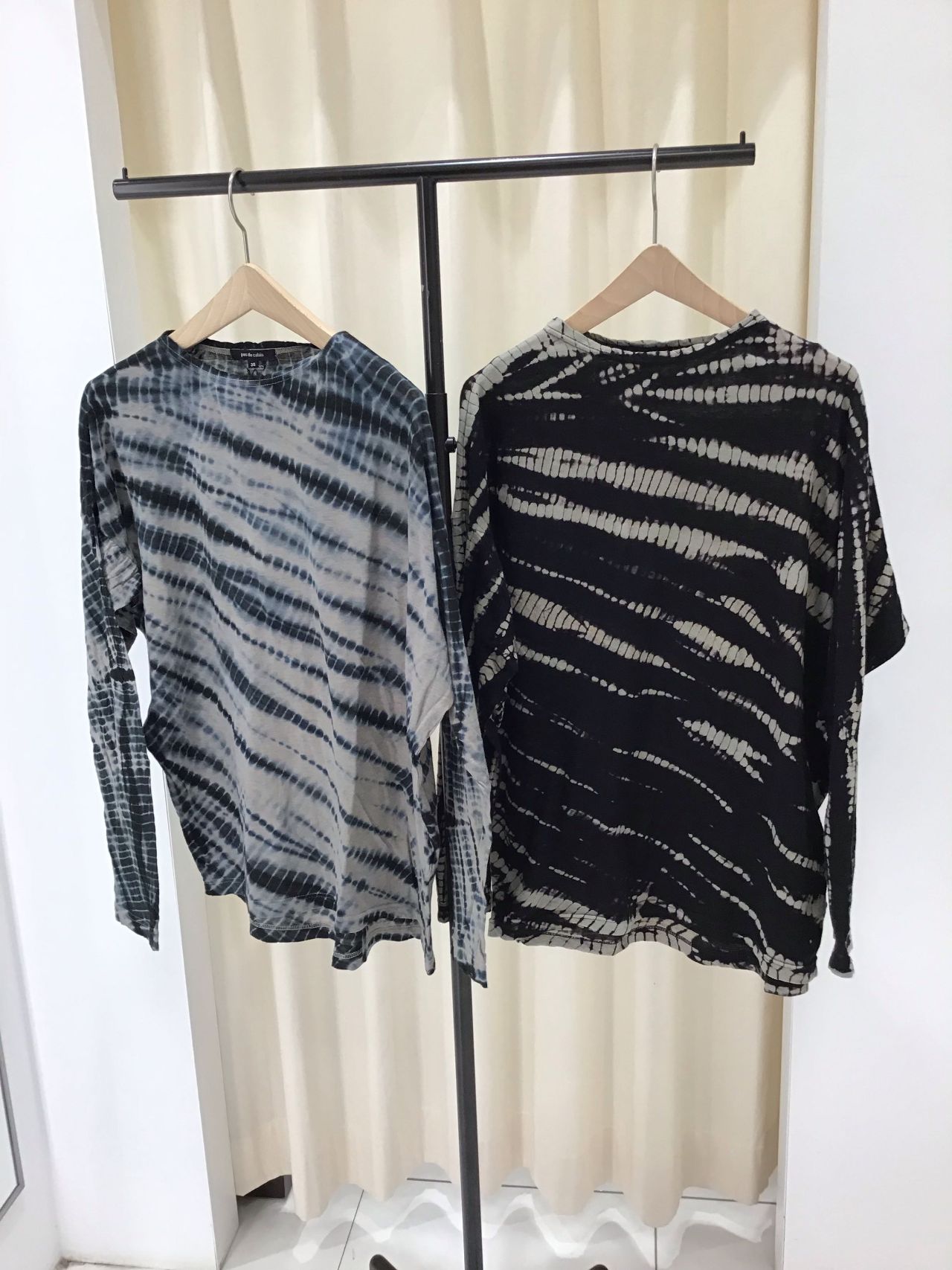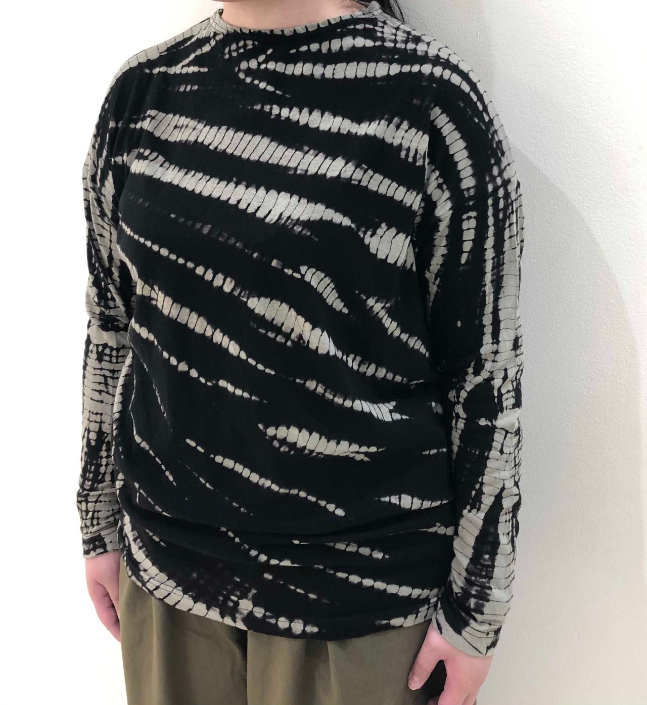 カットソー生地に伝統的な有松絞り加工でデザインを施しました。