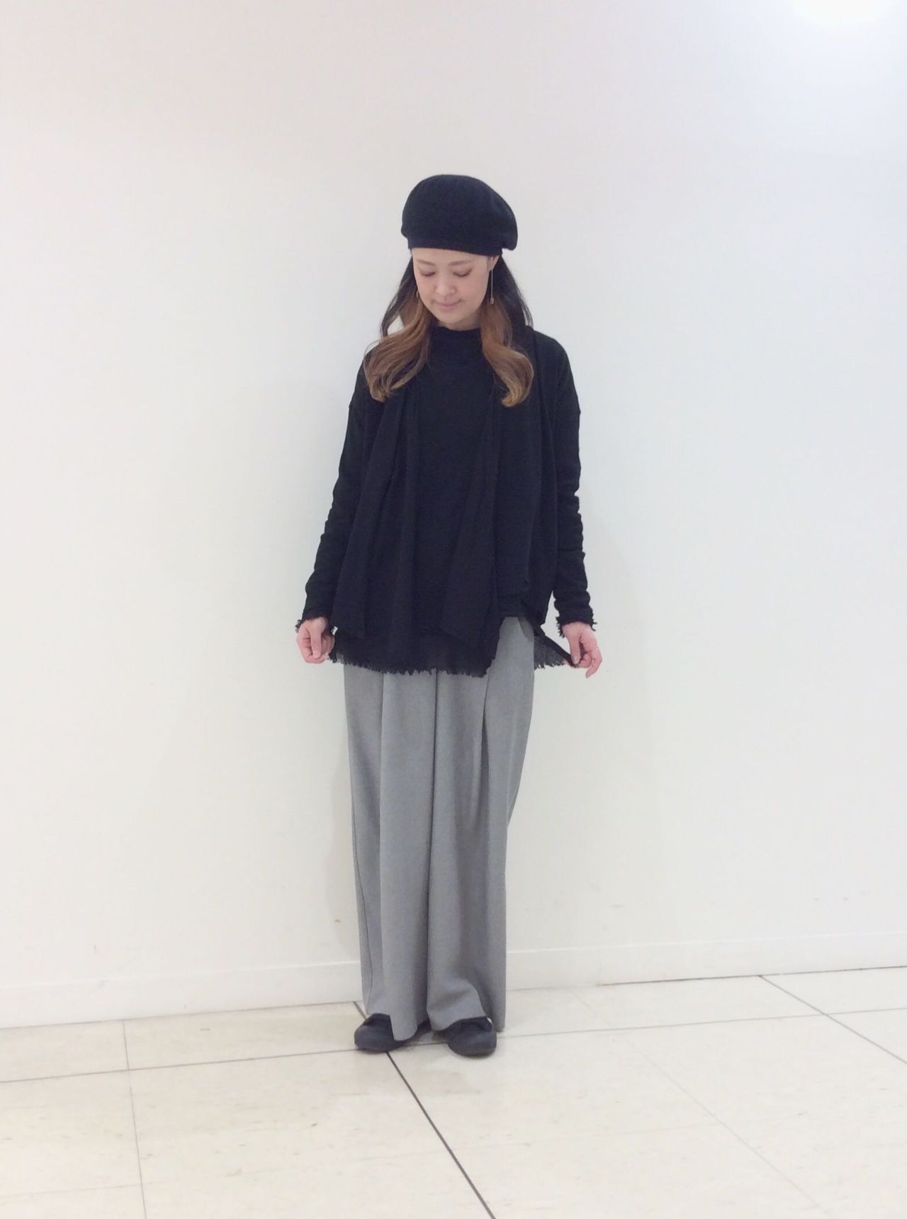 ロングスカートのようにも見えるワイドシルエットは、冬のニットコーディネートにも◎。