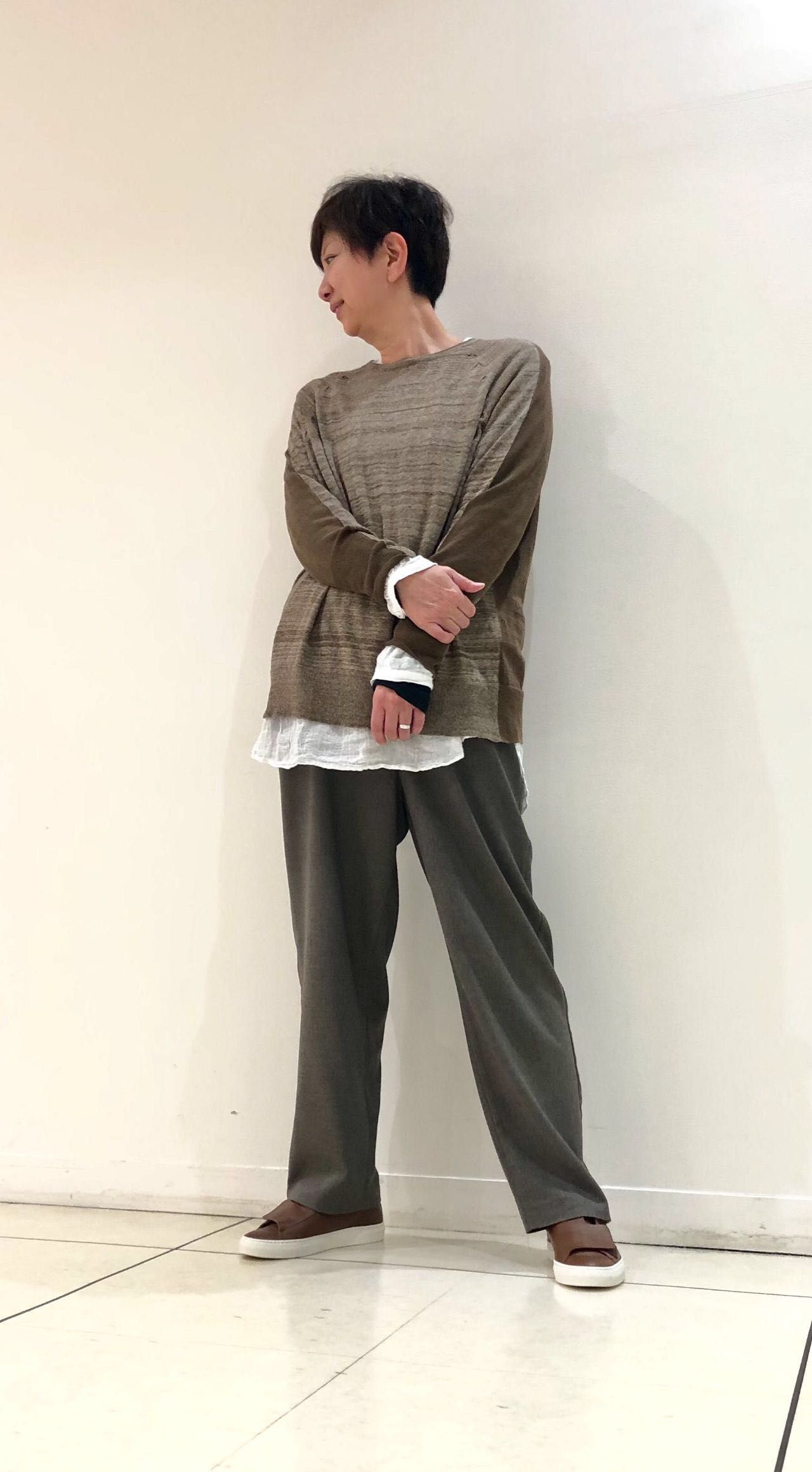 中にニットやトレーナーなど厚手のものを着れる余裕があり、冬間近まで着て頂けます。