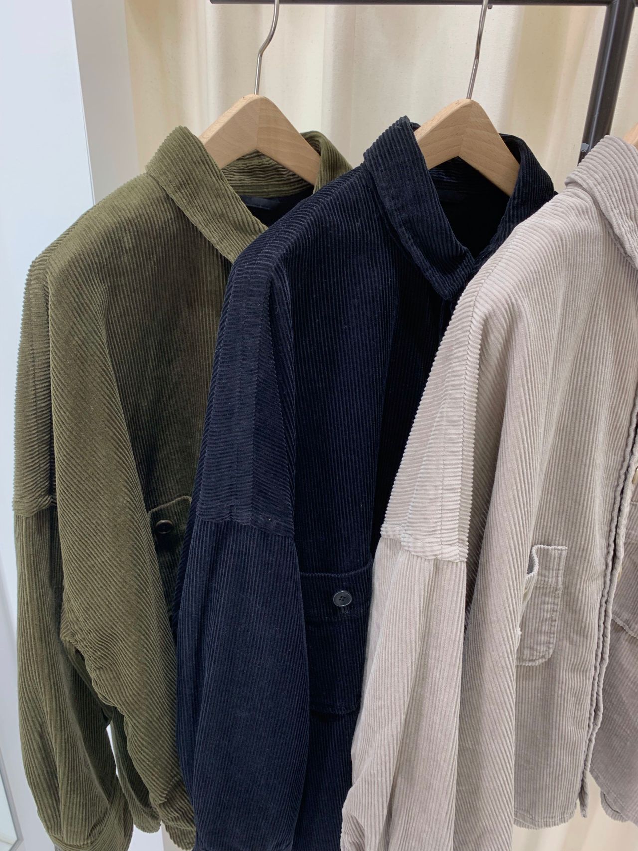 ゆったりとした身幅のコーデュロイ素材のジャケットです。