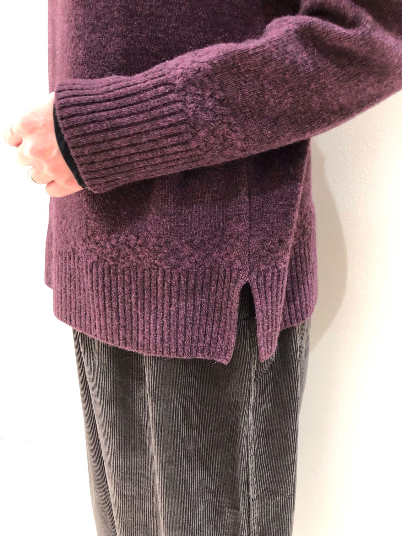 しっかり目を詰めて編んであり、暖かいし引っ掛けにくそうなそんなニットです。