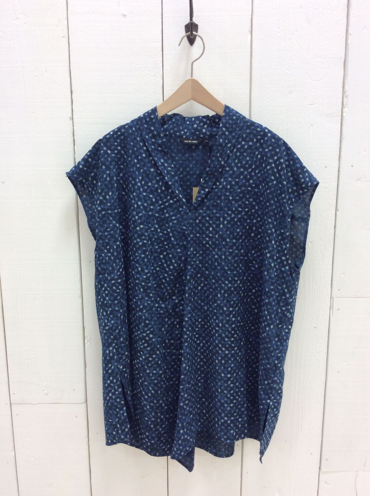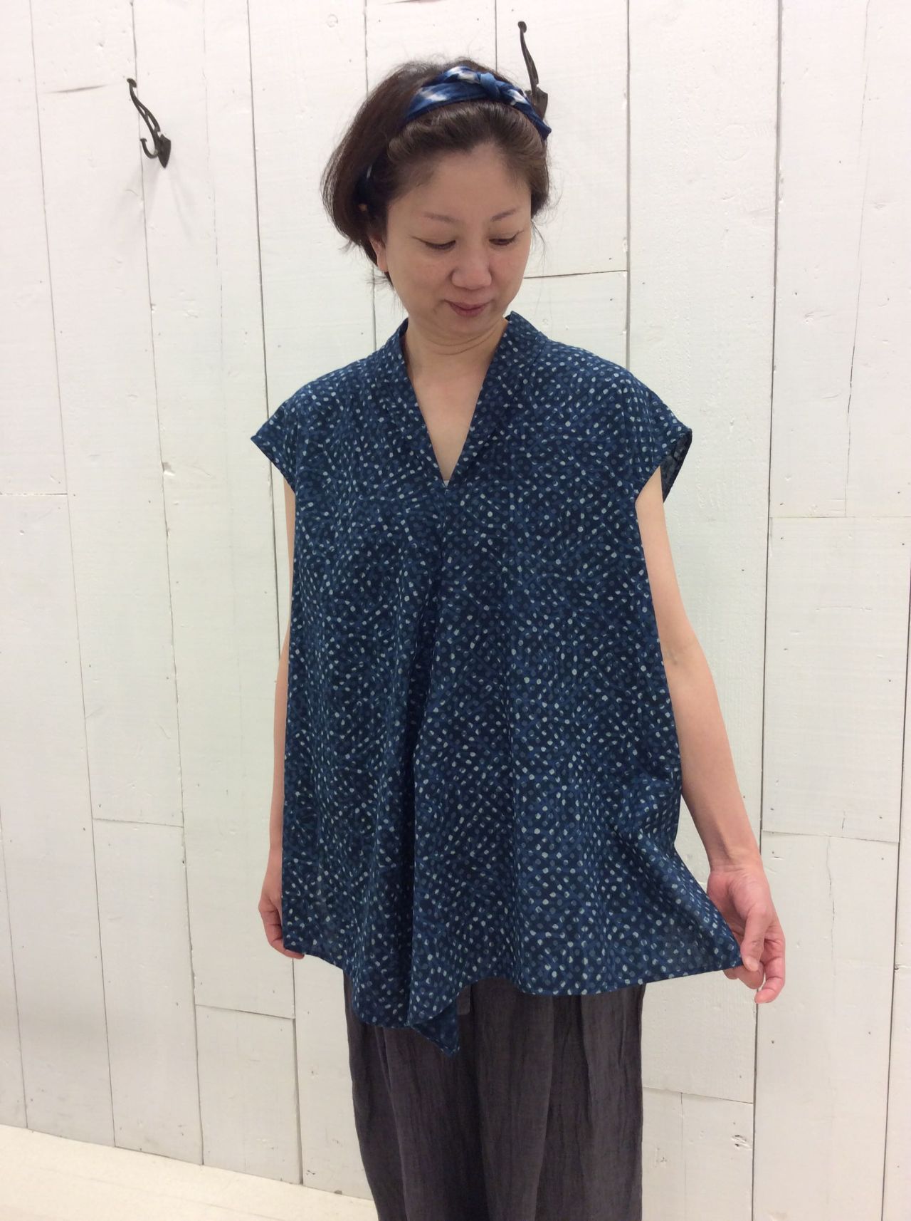 ブロックプリントブラウス no.6895 col.ネイビー(着用)/オレンジ/グリーンsize36 ¥19,440