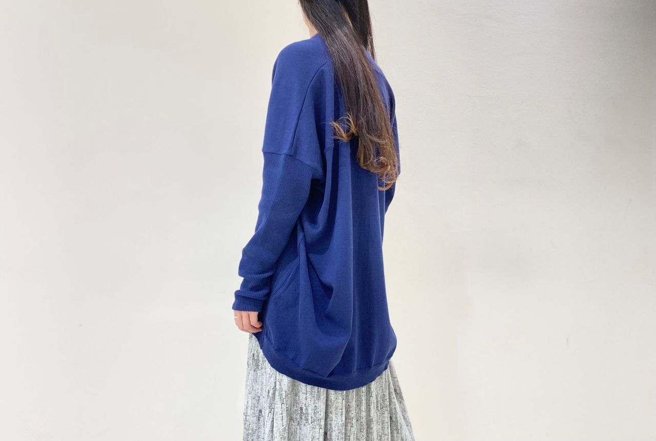 ゆったりとした分量感と袖のフィットしたリブが特徴になります。
